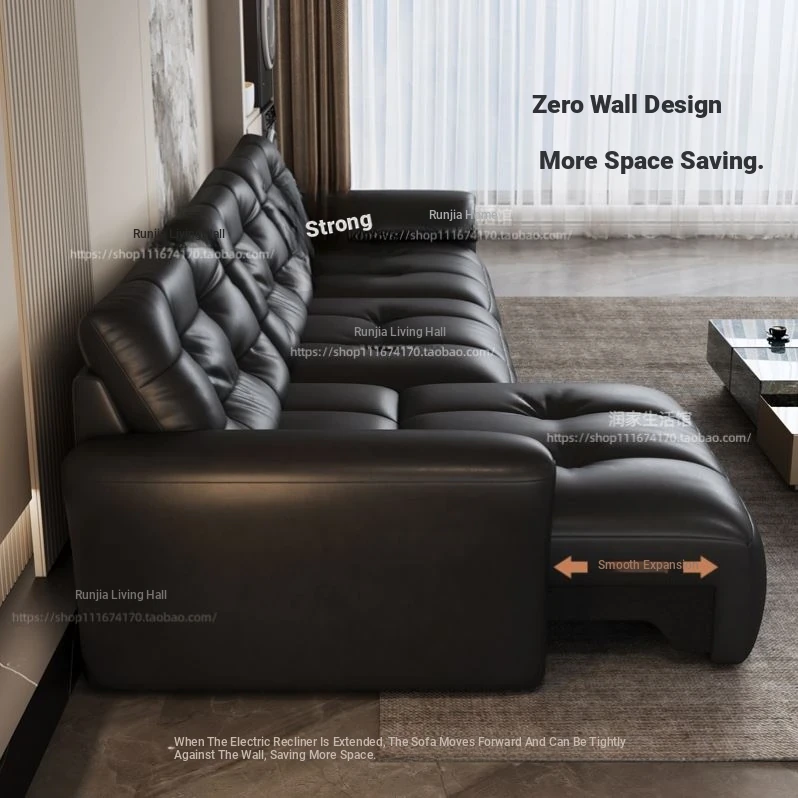 Electric Sofa Bed - Stylish Real Leather Living Room Double Reclining 3-Seater, Versatile for Sitting and Sleeping, Adjustable and Expandable, Perfect for Modern Homes!