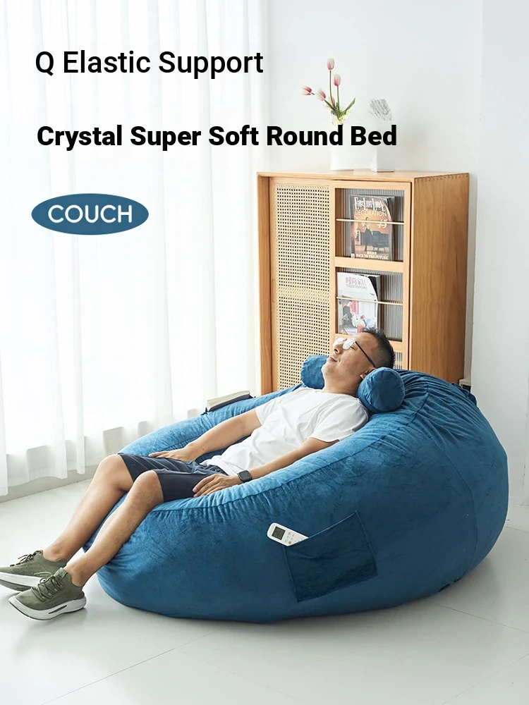 Minimalist Crystal Ultra-Soft Round Bed Lazy Sofa - Family Tatami Floor Mat Lounge Chair for Living Room Relaxation