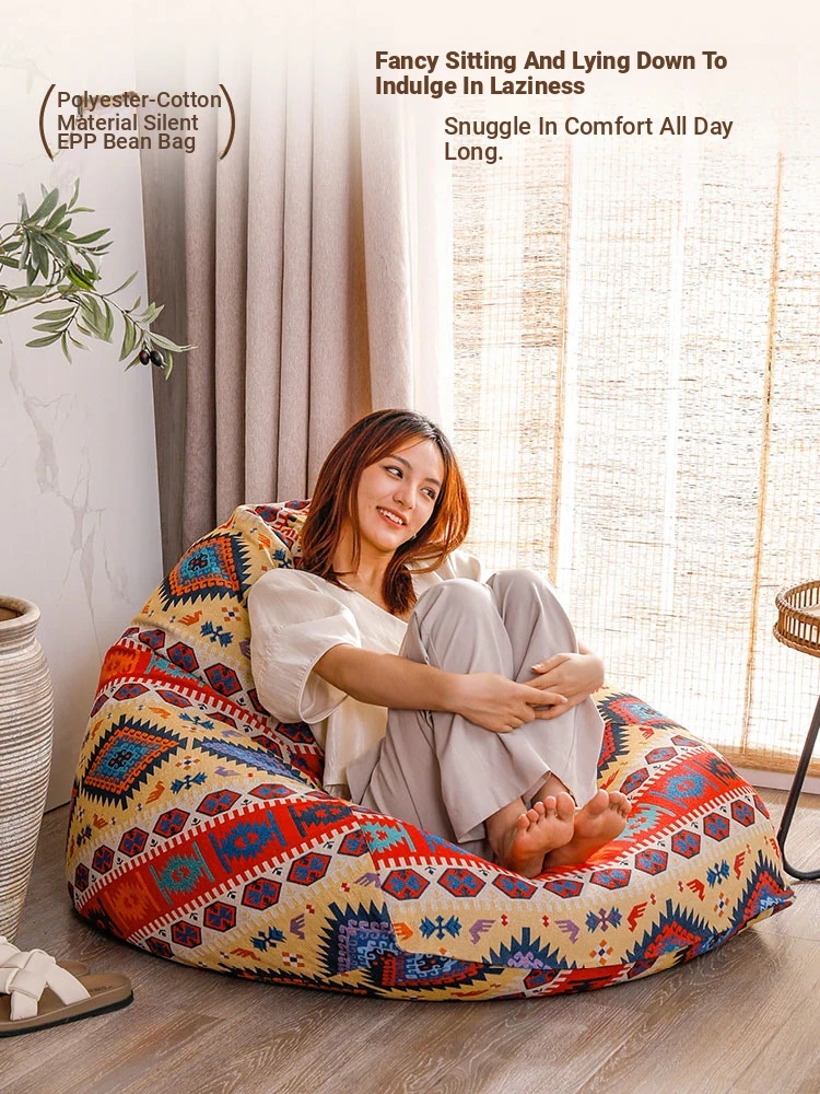 Ethnic Style Lazy Bean Bag Sofa - Versatile Lounger for Relaxation and Sleep, Perfect for Single Use on Tatami or Floor, Ideal for Guesthouses and Cozy Nooks