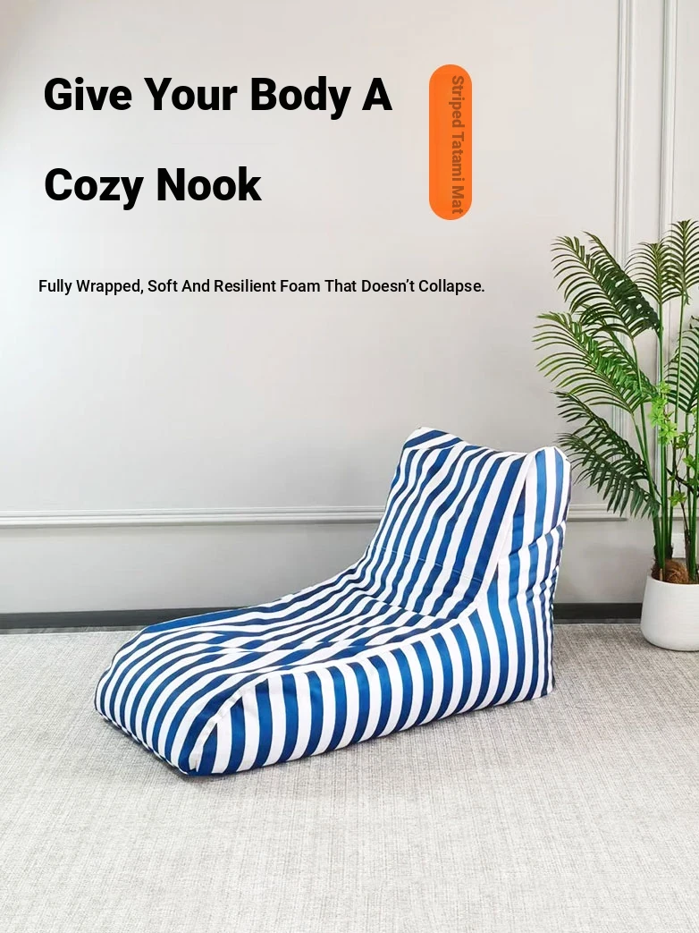 Outdoor Waterproof Sun-Proof Lazy Sofa - Striped Bean Bag Chair for Courtyard, Beach, and Camping Relaxation