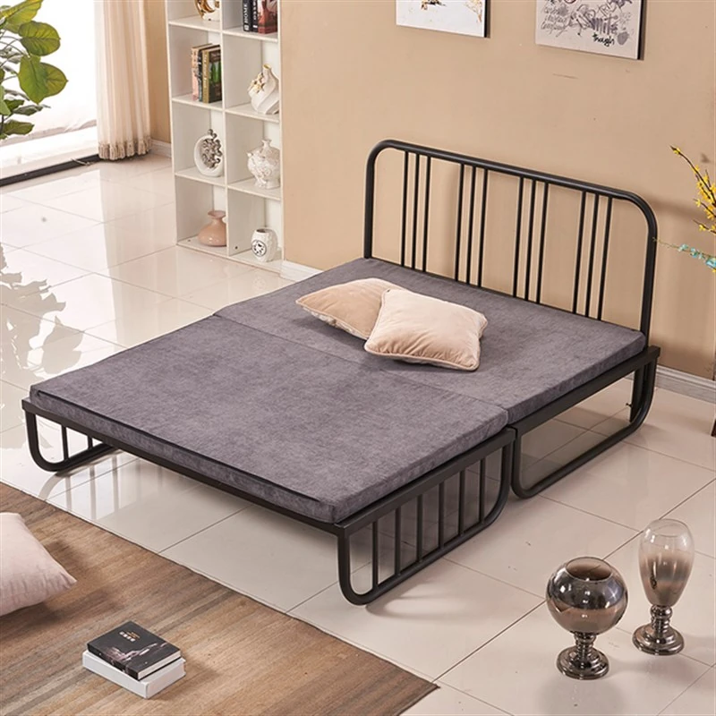 Modern Minimalist Multifunctional Metal Sofa Bed - Space-Saving Iron Folding Couch for Small Homes, Perfect for Living Rooms and Guest Rooms!