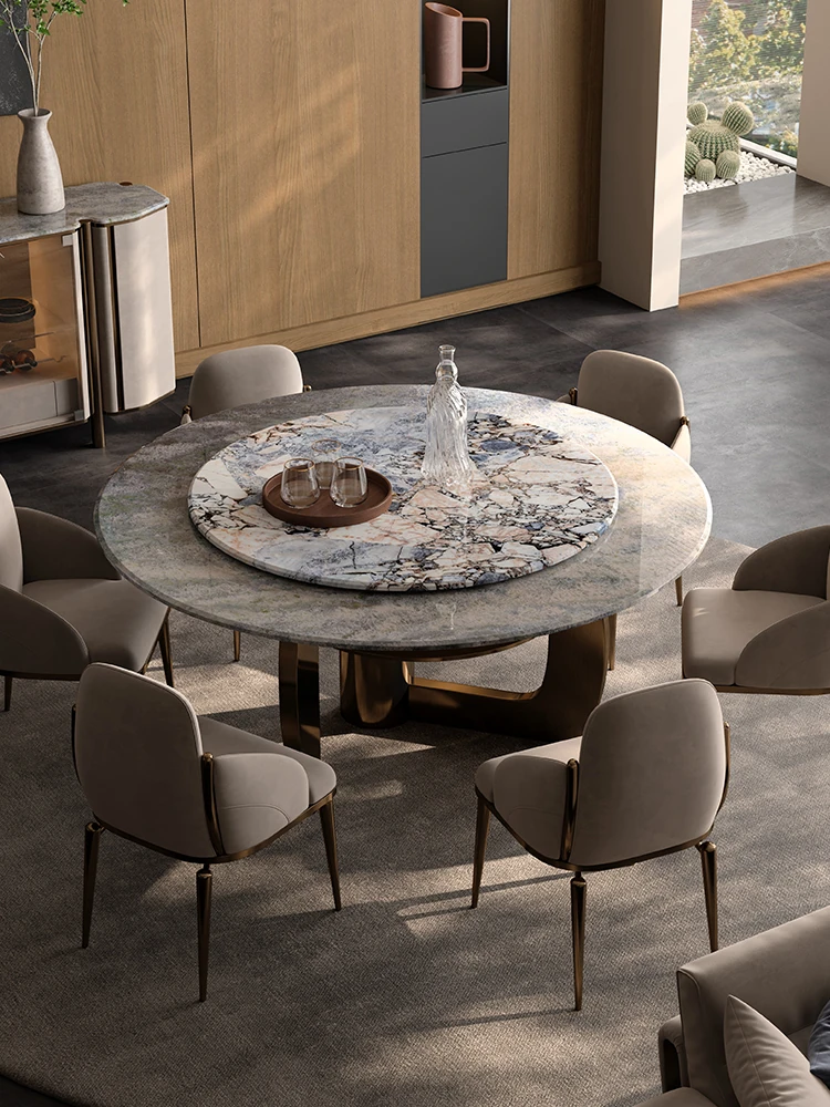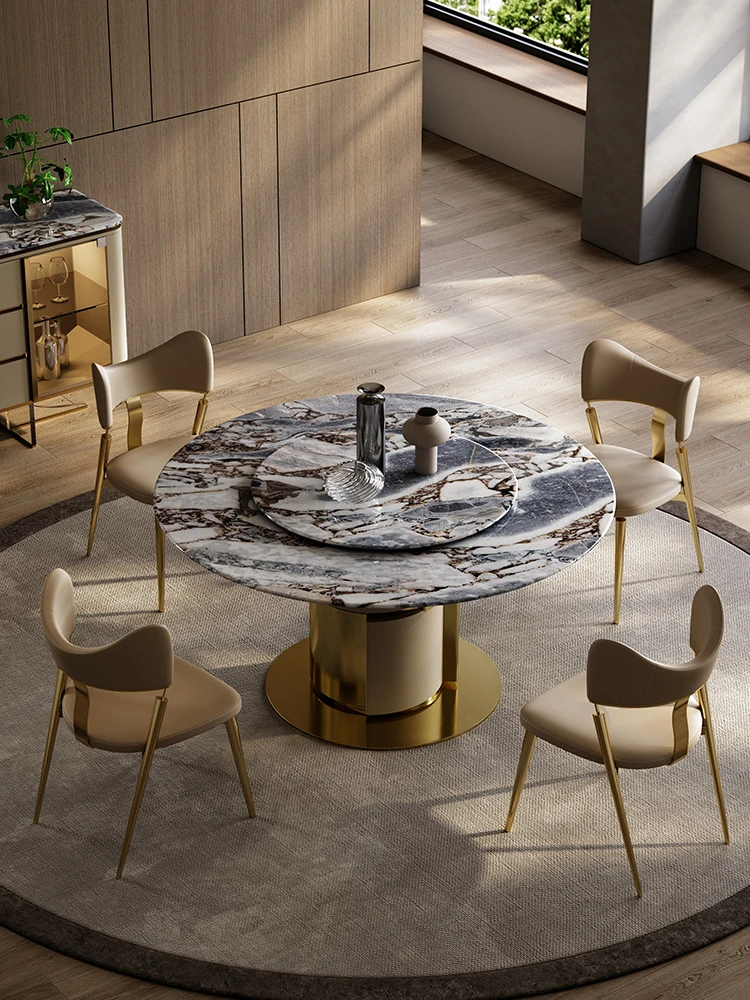 天然石のラグジュアリーな円形ダイニングテーブル - 回転式大理石デザイン、2023年新作!高級感あふれる円卓で特別なひとときを演出します。