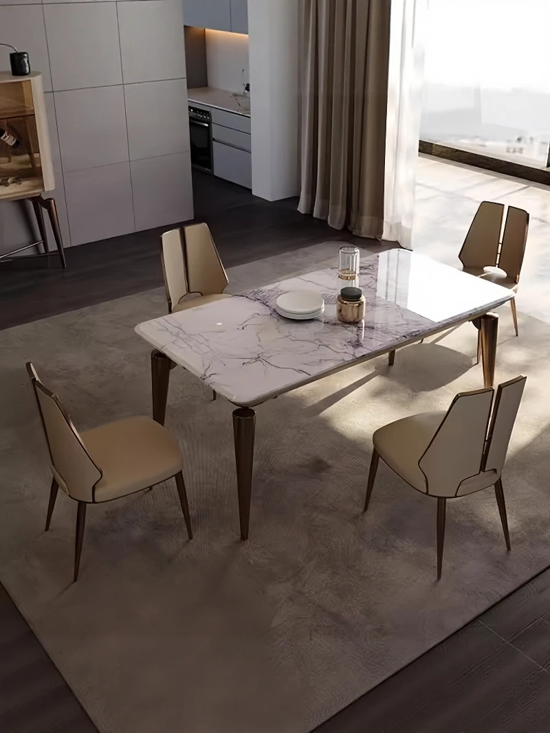 イタリアンラグジュアリー ダイニングテーブル 大理石天板 長方形 デザイナーチェア セット モダンレストラン家具 天然石使用 ヴィラスタイルで特別なひとときをお楽しみください!