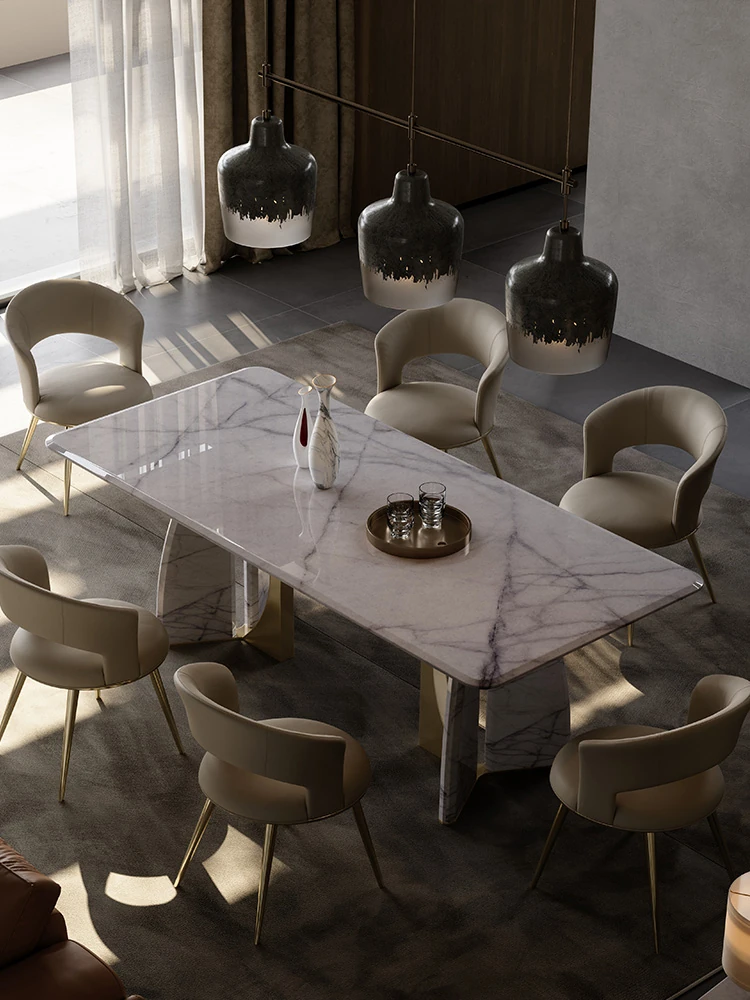 Italian Minimalist Luxury Modern Natural Marble Dining Table - Designer's New Rectangular Table for Villas and Spacious Living Areas