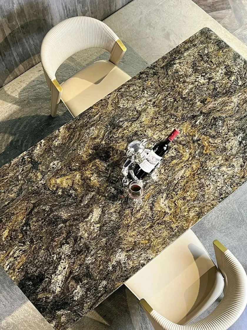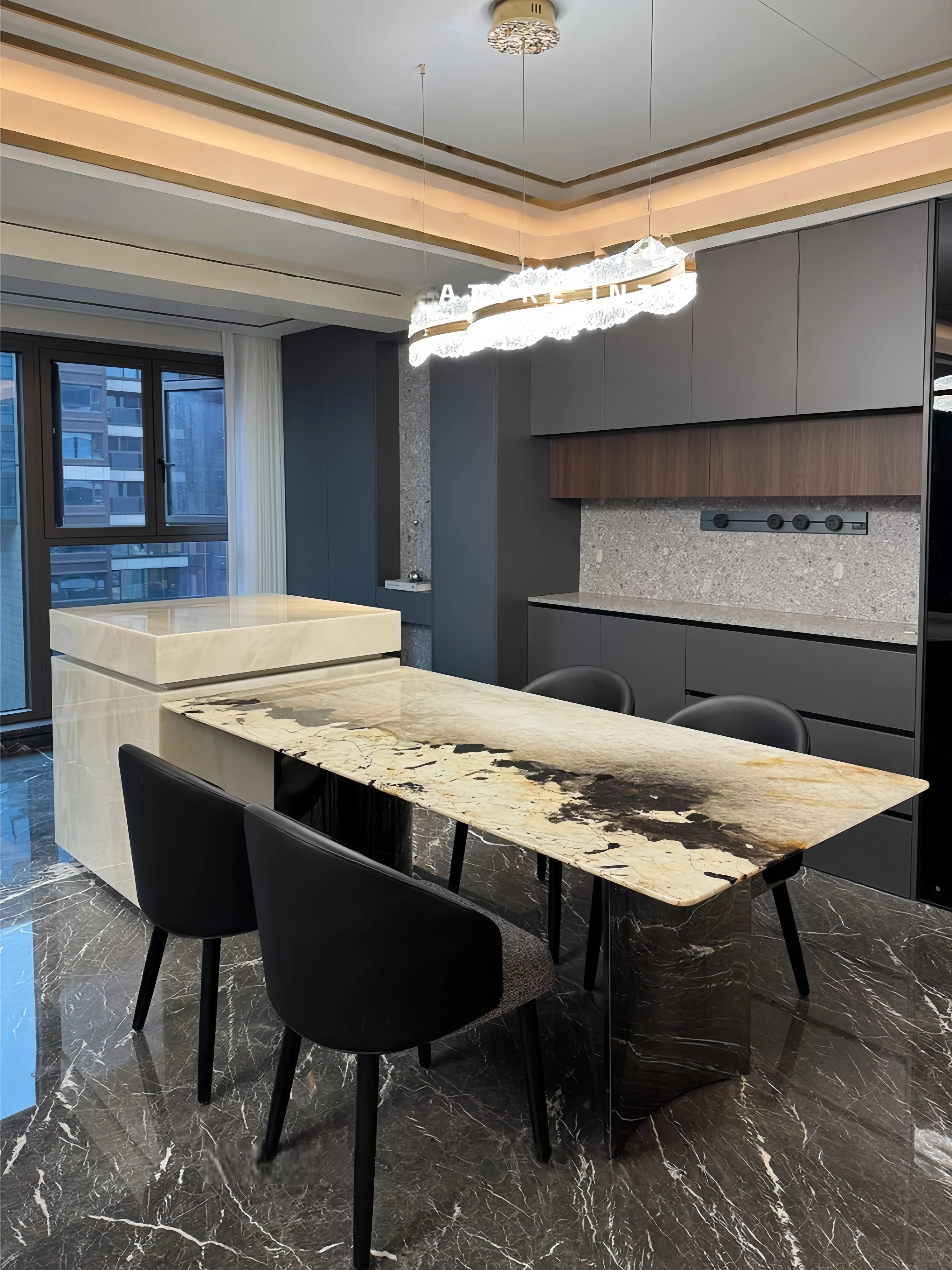 Luxurious Italian Villa-Style Natural Marble Dining Table - Old Mine Pandora Collection, Elegant Rectangular Design for High-End Living Spaces, Imported Premium Quality Stone, Perfect for Sophisticated Interiors.