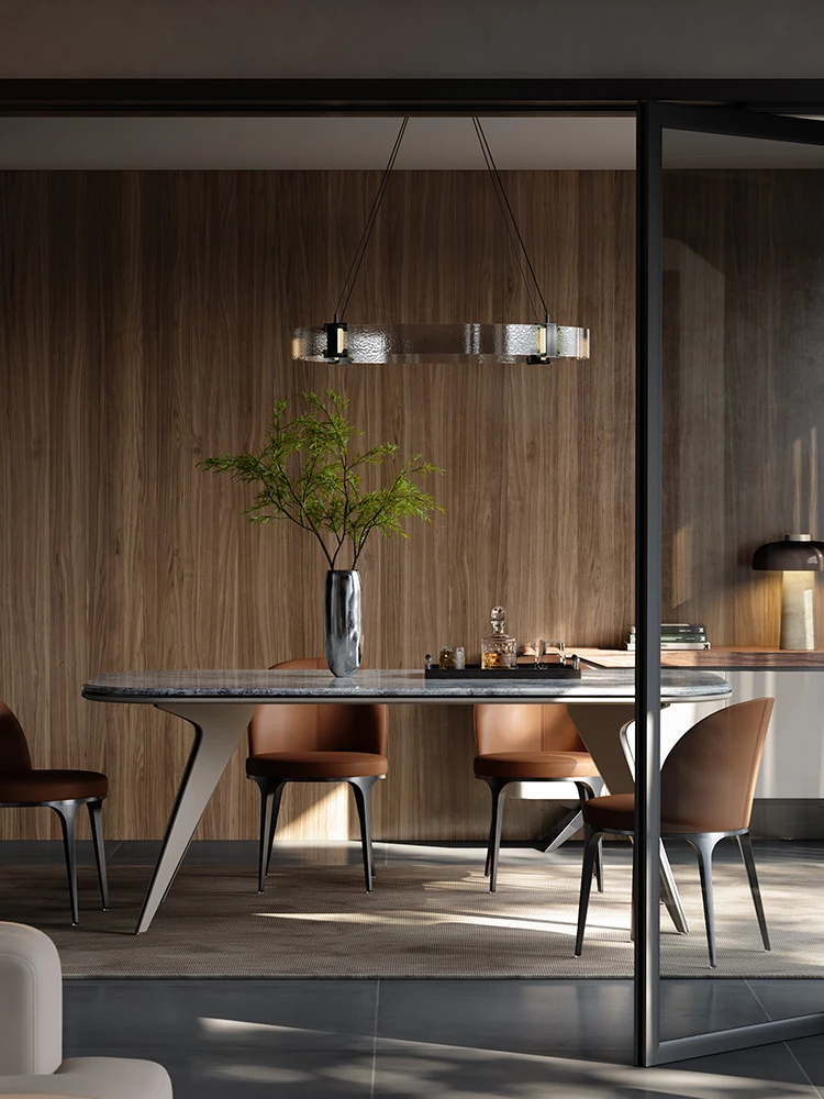 Italian Minimalist Natural Marble Dining Table - Rectangular Creative Design for Modern Open-Plan Dining Spaces - New Designer Collection