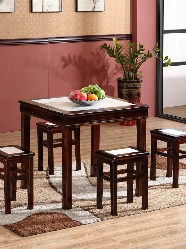 Vintage Chinese Style Square Table Set with Marble and Solid Wood for Dessert and Tea Shops - 4-Person Dining Table and Chair Combination