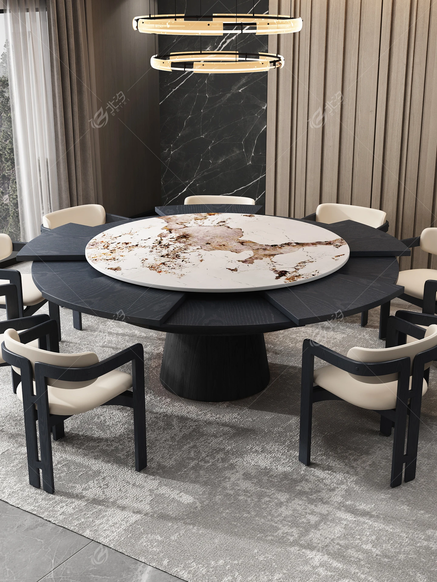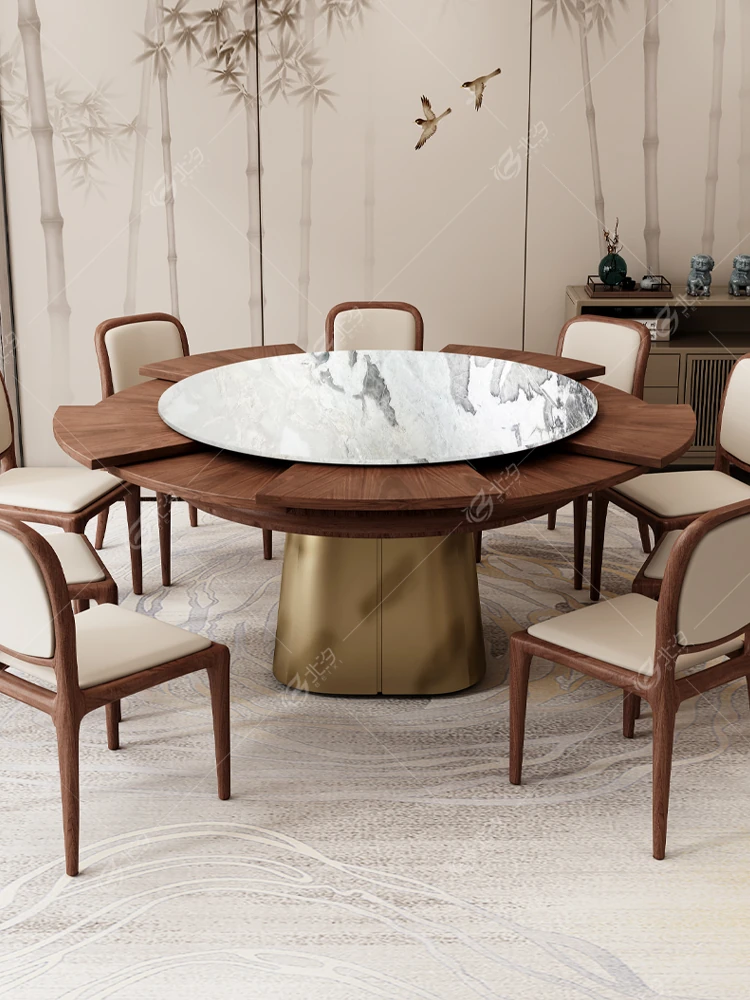 Elegant Solid Wood Round Dining Table with Built-in Rotating Marble Top for Luxury Villas - High-End Design with Lazy Susan for Easy Serving