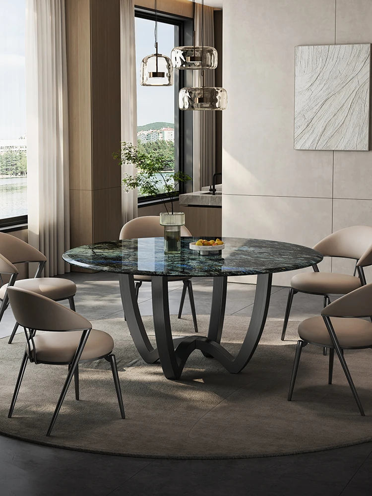 Elegant Marble Round Dining Table Set for Home - High-End Villa Blue Jade Natural Stone Six-Person Table and Chair Combination