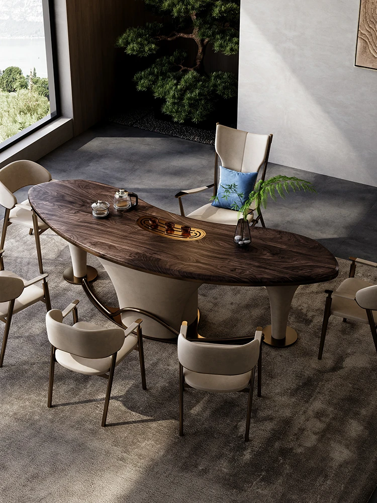 Italian Minimalist Natural Luxury Stone Dining Table - Unique Shaped Villa Dining Table in Premium Walnut Wood - Elevate Your Dining Experience