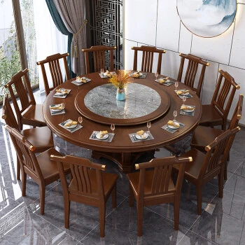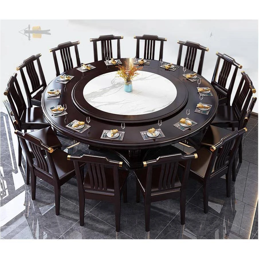 Elegant Round Solid Wood Dining Table with Induction Cooker - New Chinese Style Hotel Hot Pot Restaurant Furniture Set with Lazy Susan for Convenient Dining