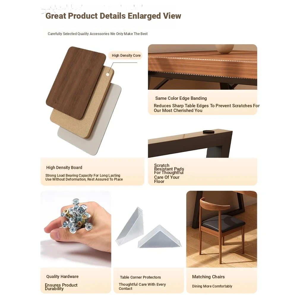 A table of six chairs 62.99in*23.62in spruce walnut color table