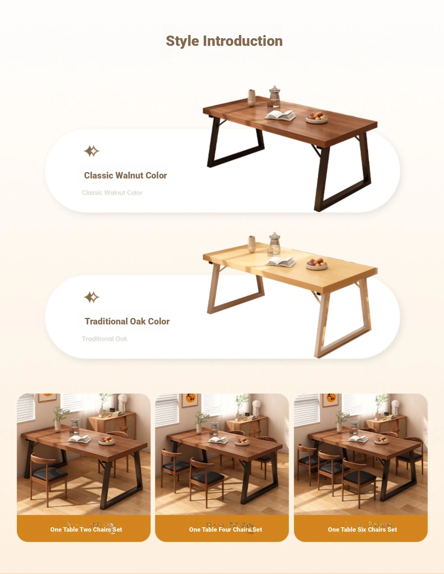 A table of four chairs 62.99in*23.62in spruce walnut color table