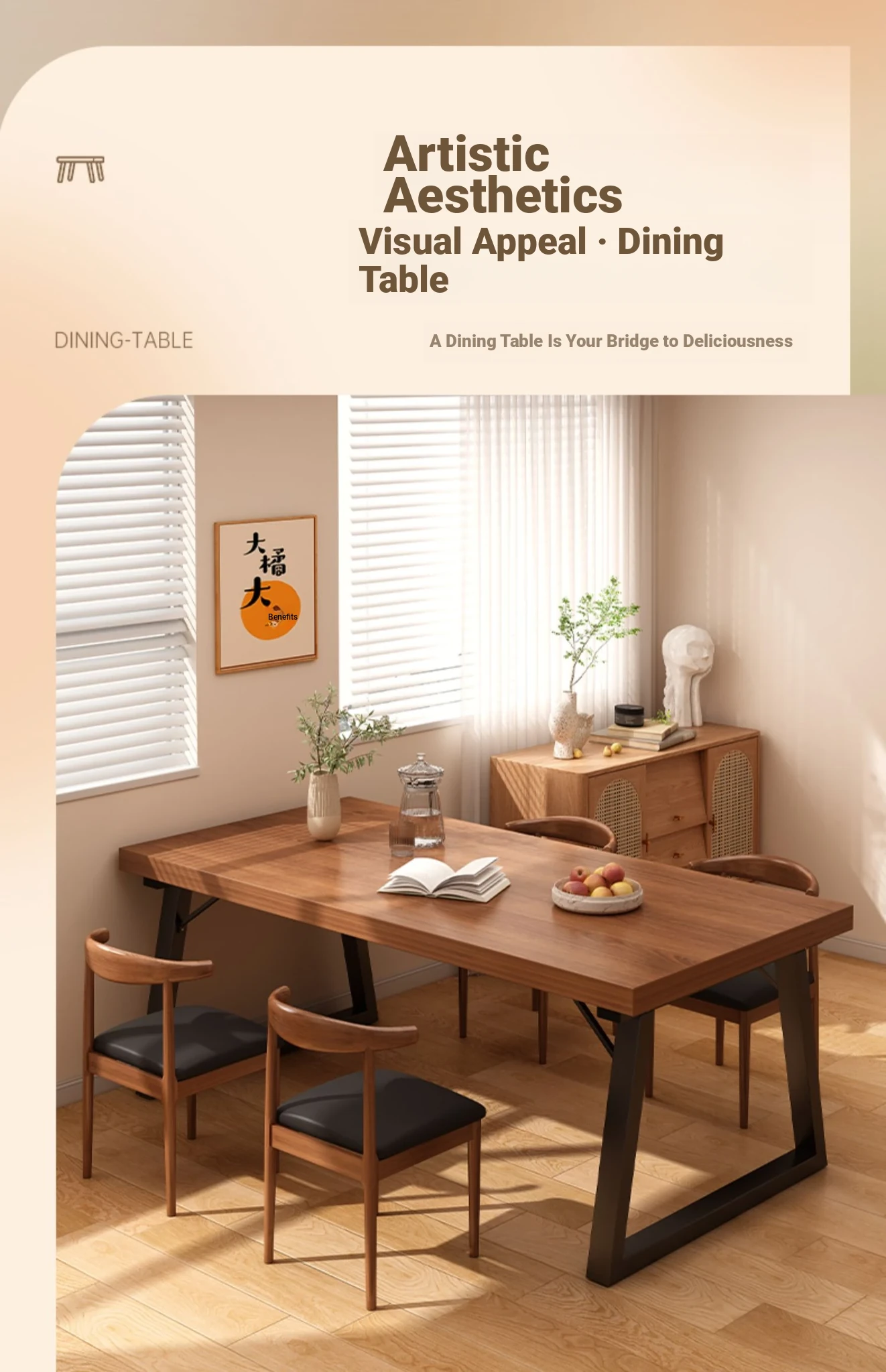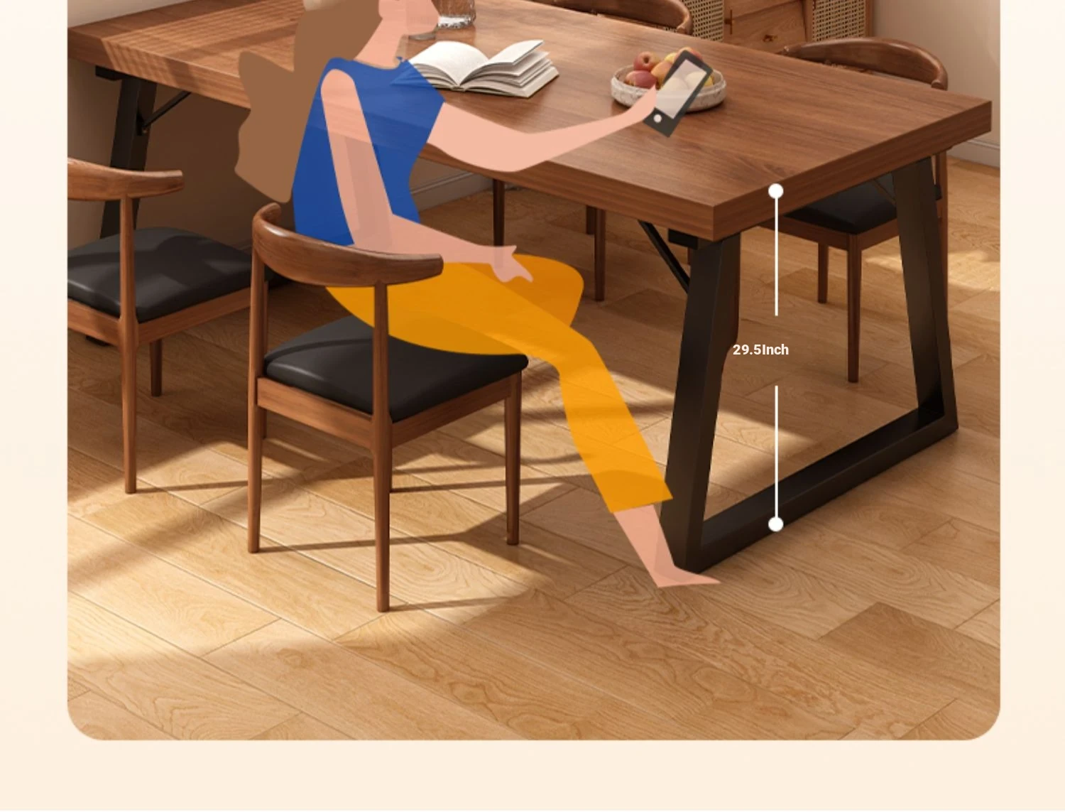 A table of four chairs 70.87in*27.56in spruce walnut color table