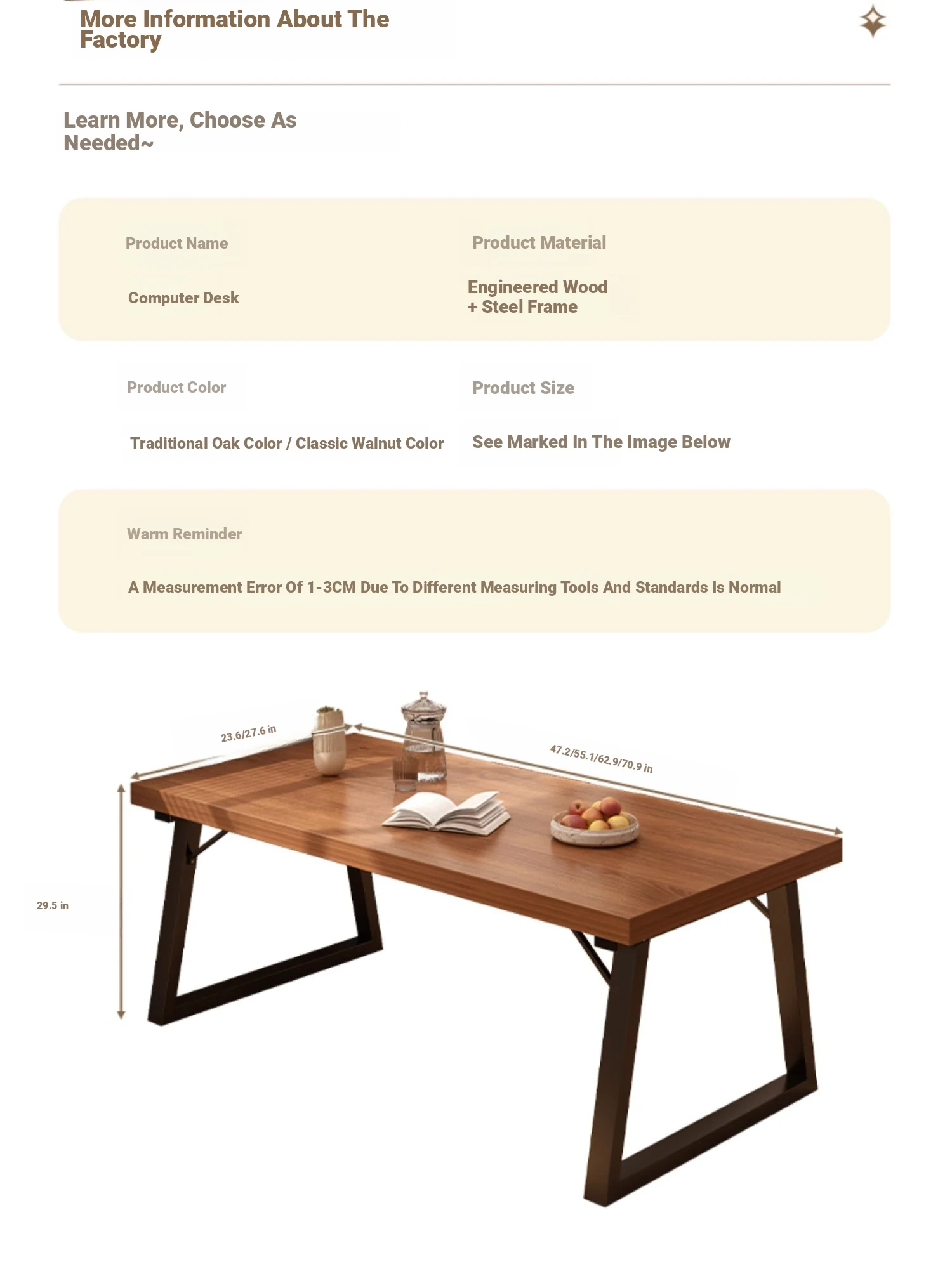 Single table 62.99in*23.62in spruce walnut color