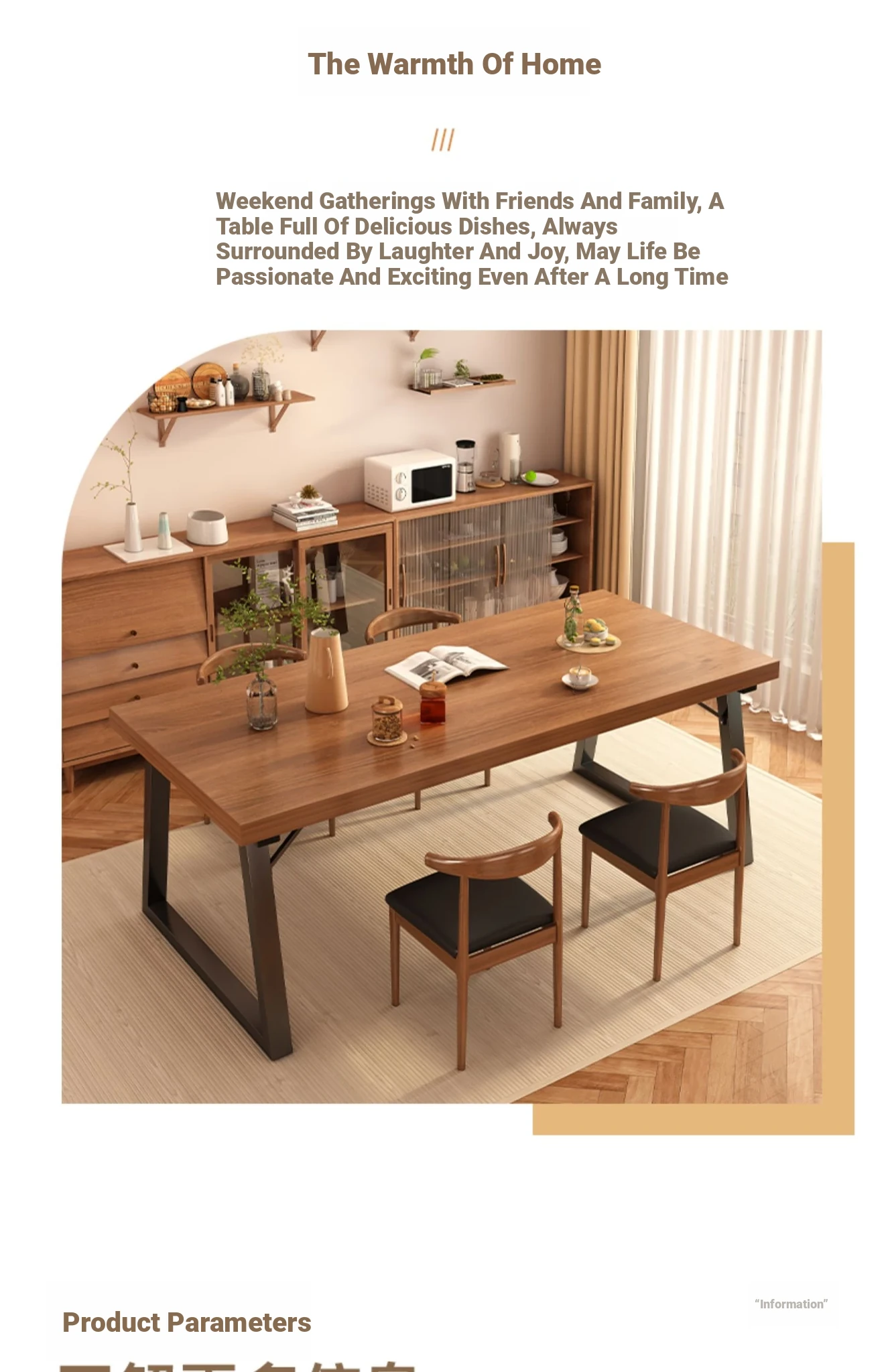 A table of four chairs 55.12in*23.62in spruce walnut color table