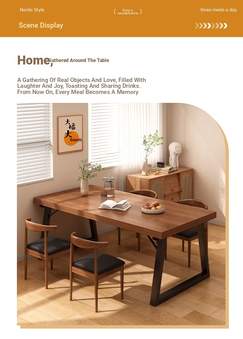 A table of six chairs 55.12in*23.62in spruce walnut color table