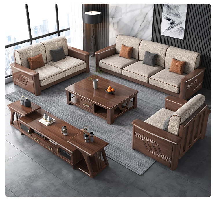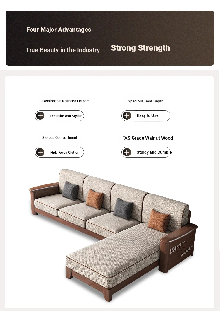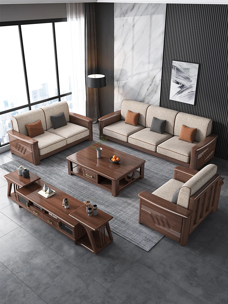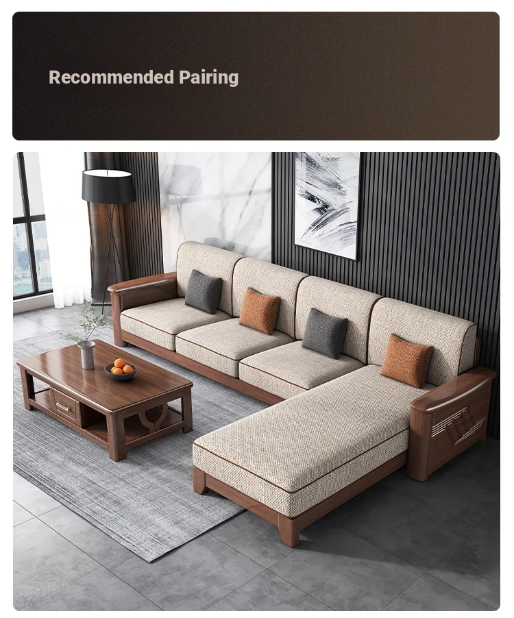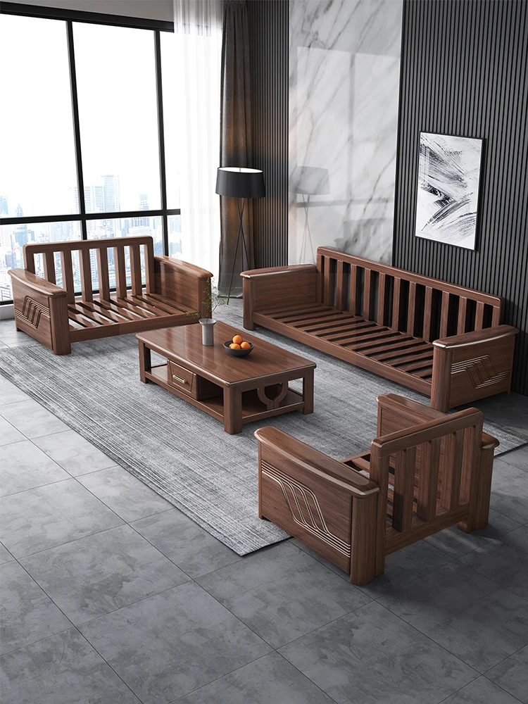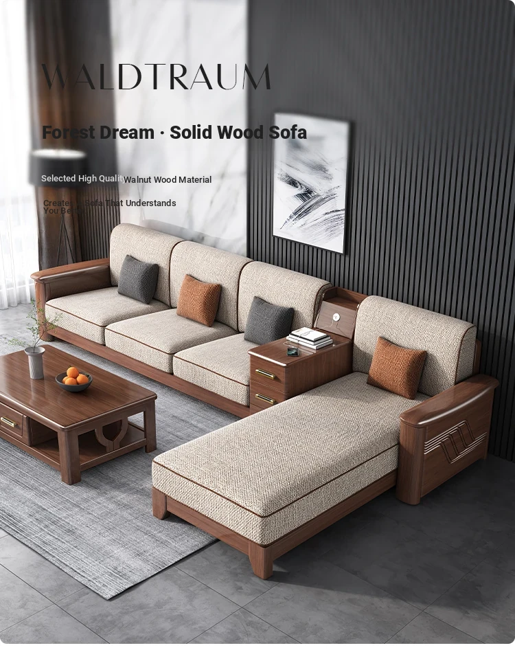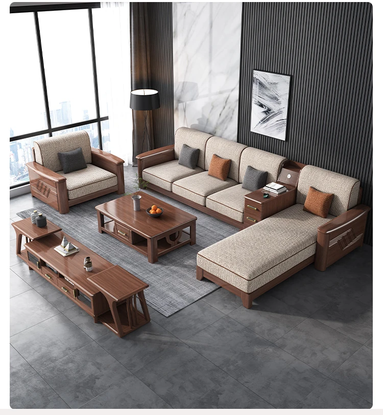 Modern Chinese Walnut Solid Wood Sofa - Versatile Living Room Furniture for Large and Small Spaces, Elegant Modular Corner Chaise Lounge Sofa