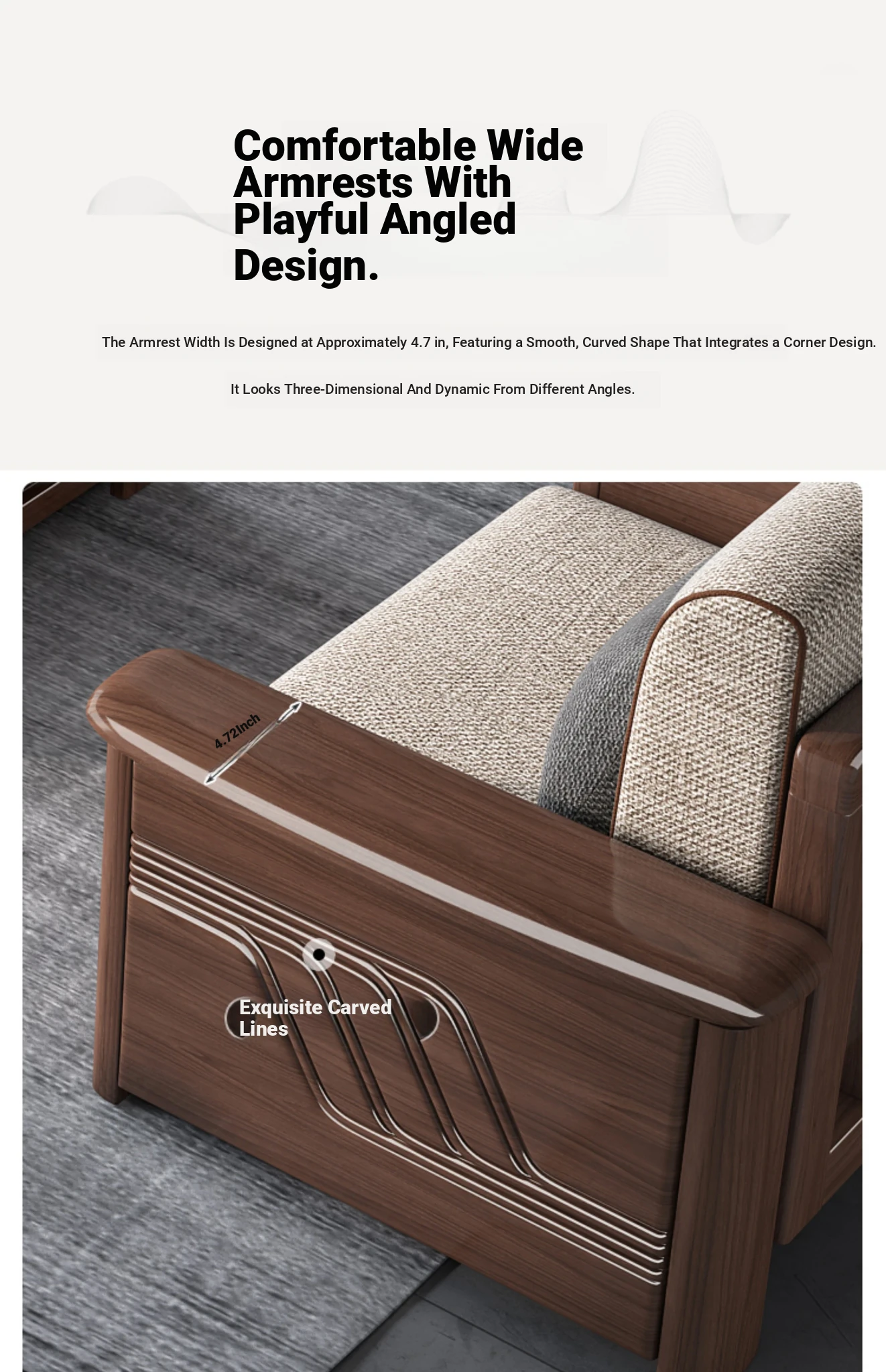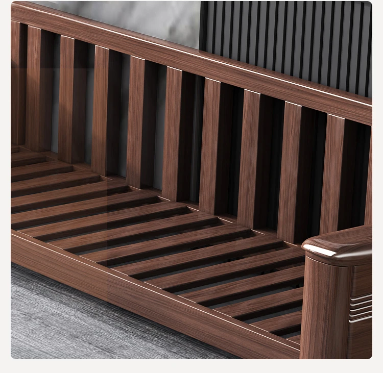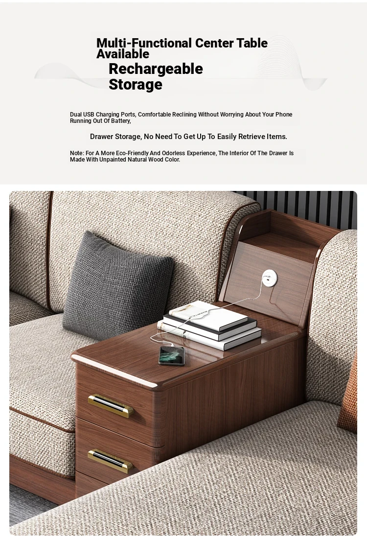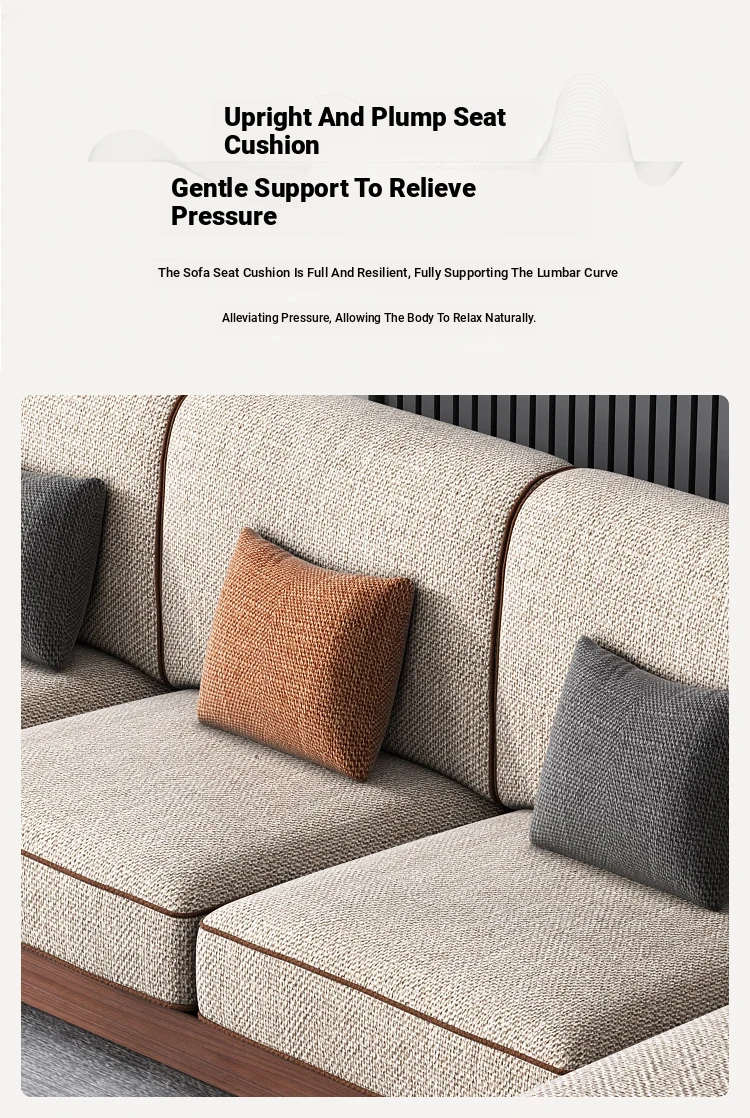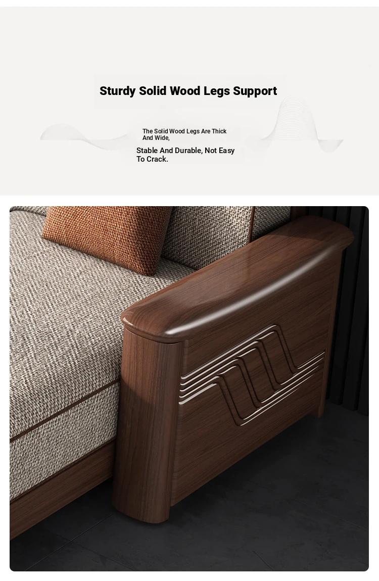 Modern Chinese Walnut Solid Wood Sofa - Versatile Living Room Furniture for Large and Small Spaces, Elegant Modular Corner Chaise Lounge Sofa