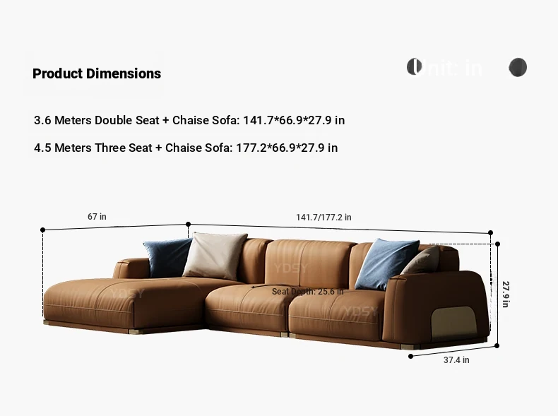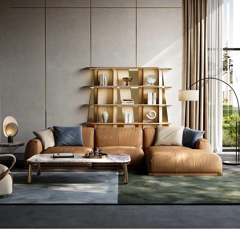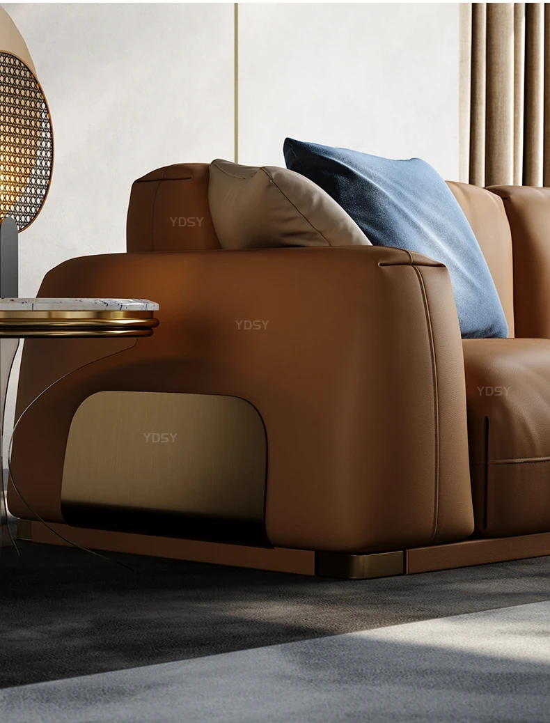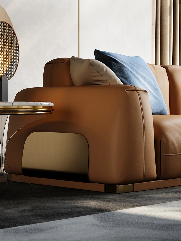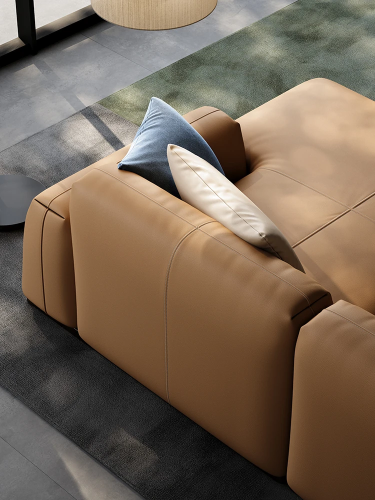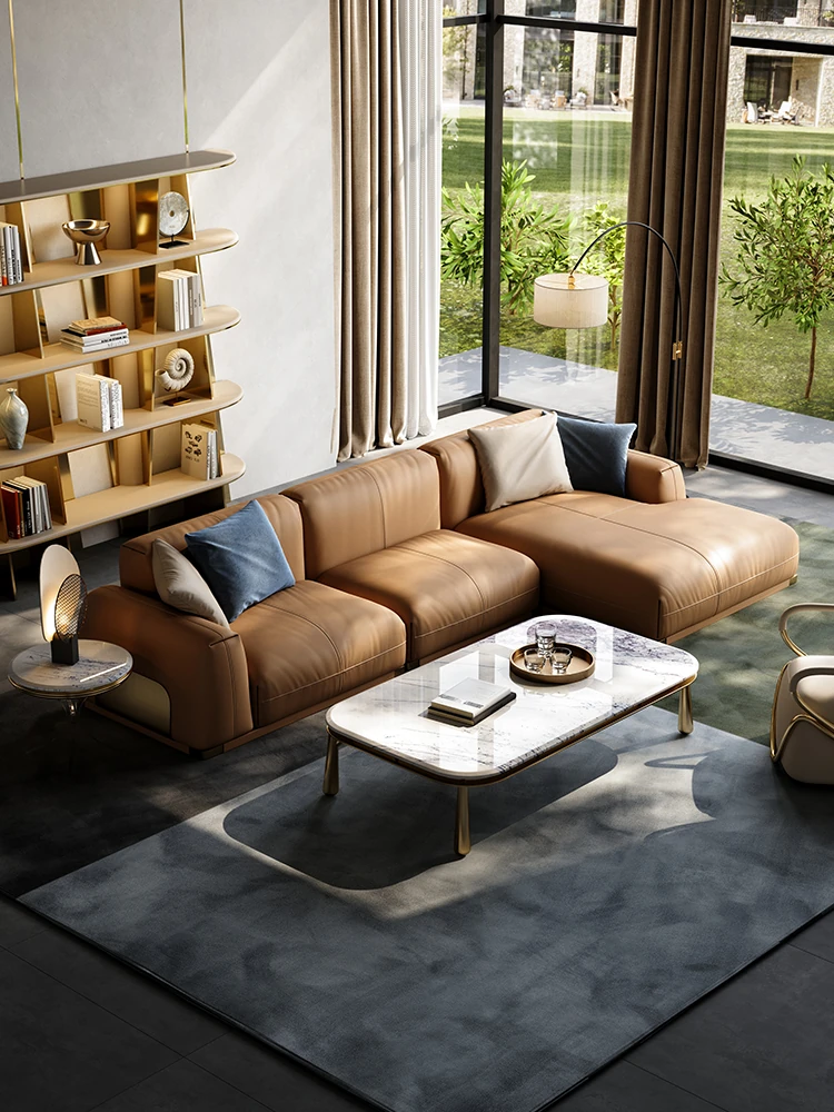 Modern Luxury Full Genuine Leather Sofa - Designer Corner Sofa with Chaise Lounge, Featuring Premium Top-Grain Cowhide for a Chic and Comfortable Living Space
