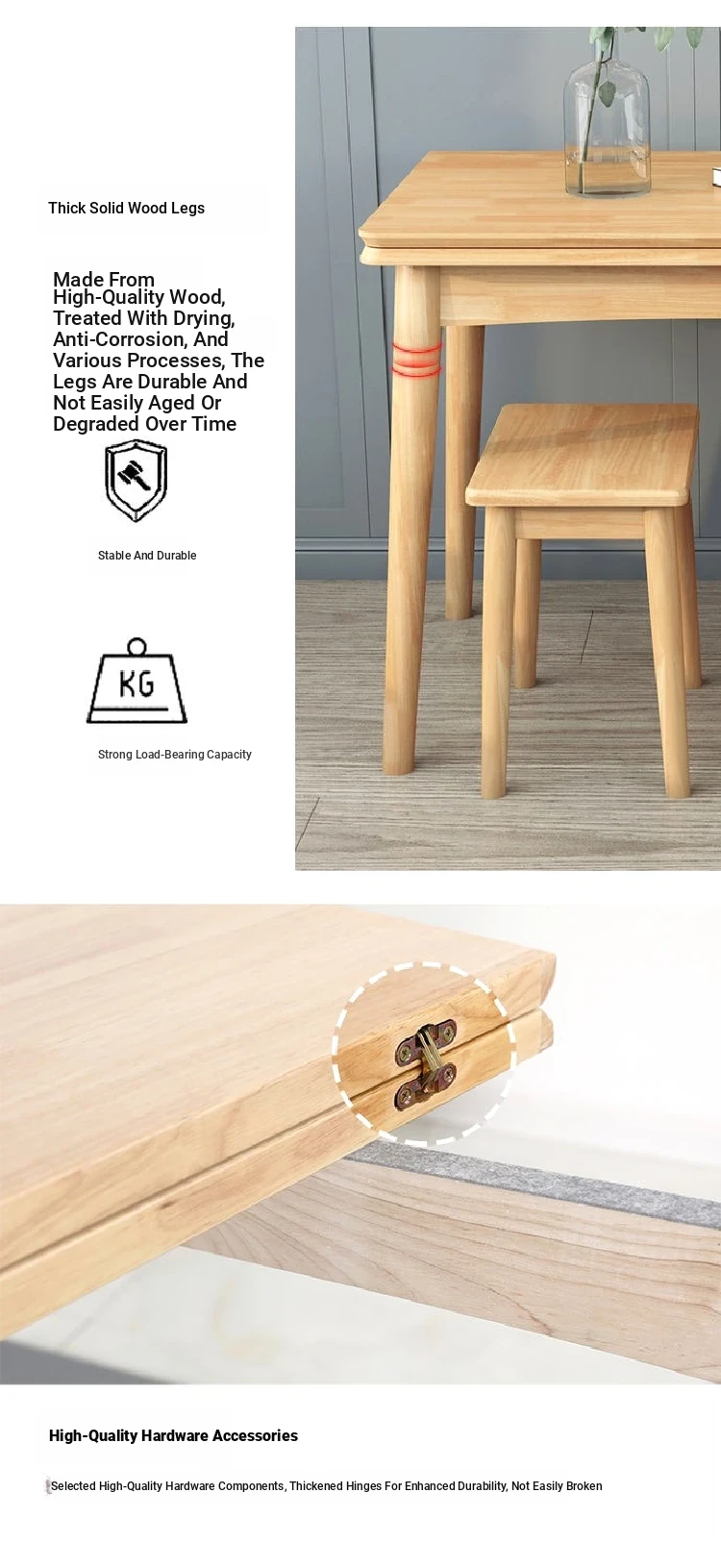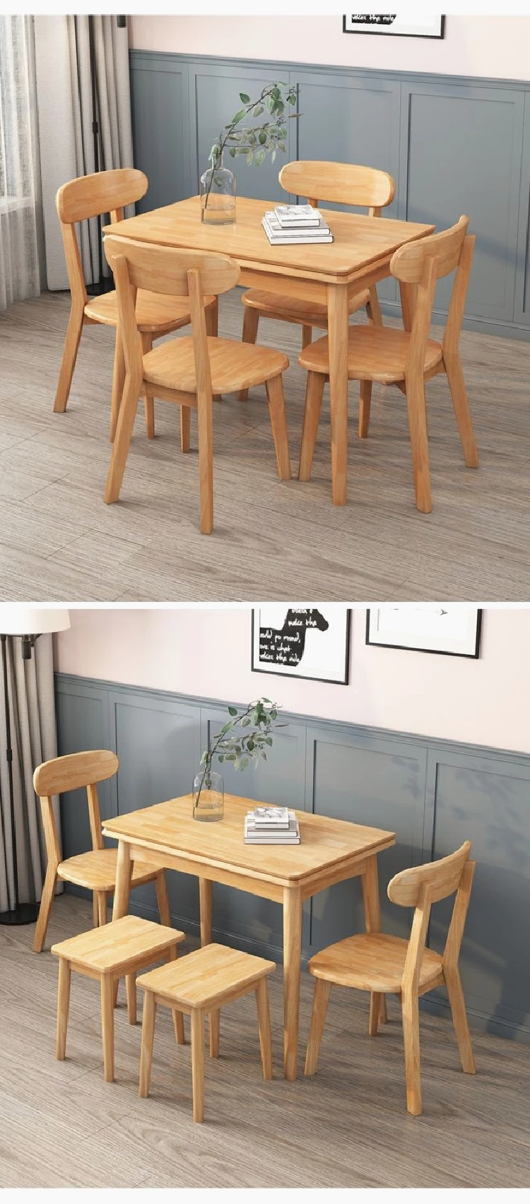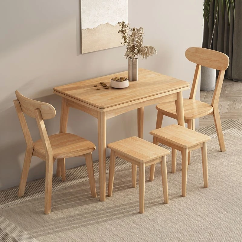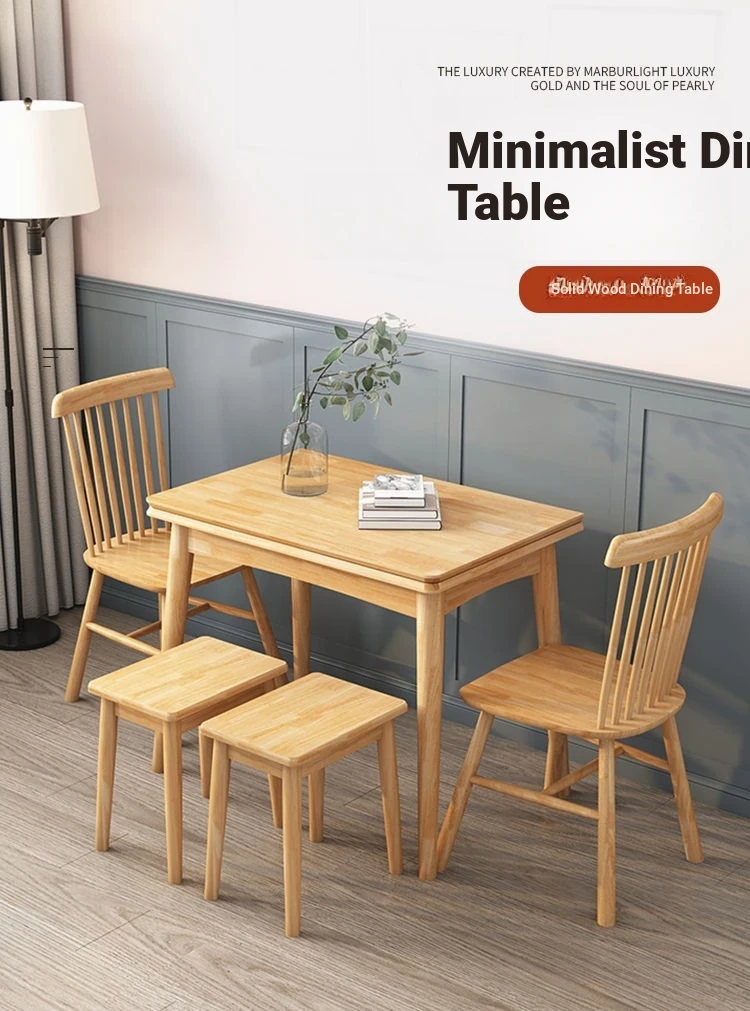 Modern Minimalist Foldable Dining Table Set for Small Spaces – Scandinavian Rectangular Solid Wood Extendable Table and Chairs Combo
