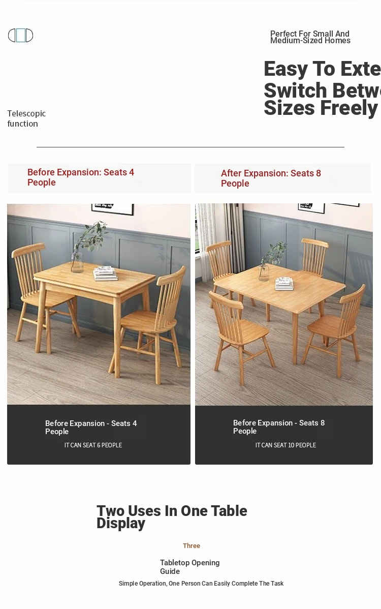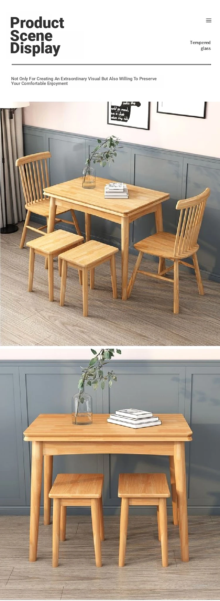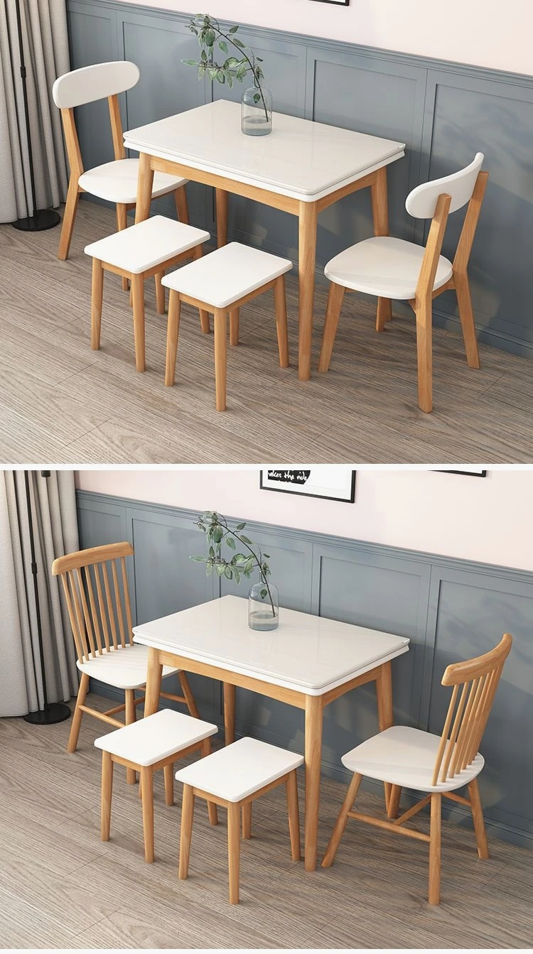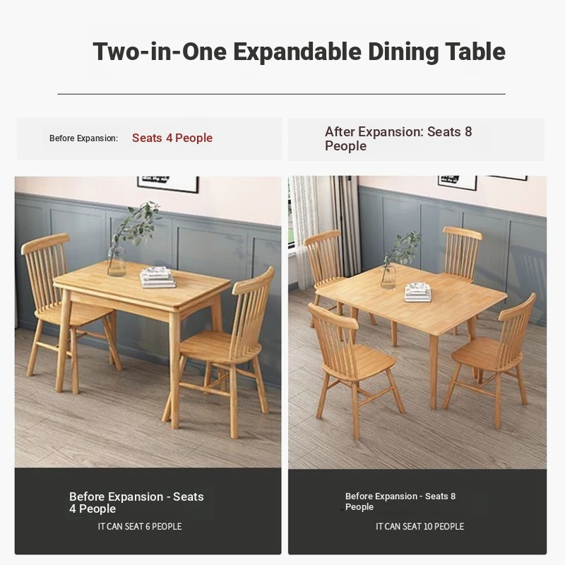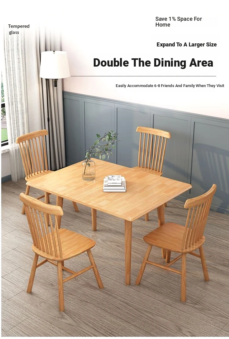 Modern Minimalist Foldable Dining Table Set for Small Spaces – Scandinavian Rectangular Solid Wood Extendable Table and Chairs Combo