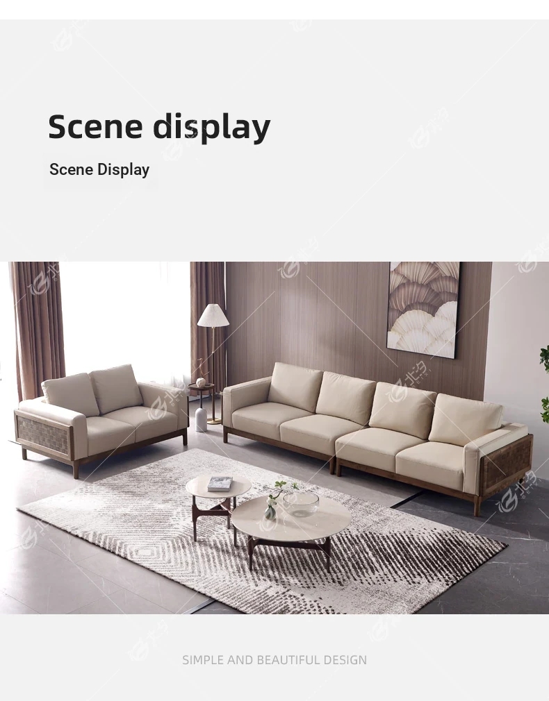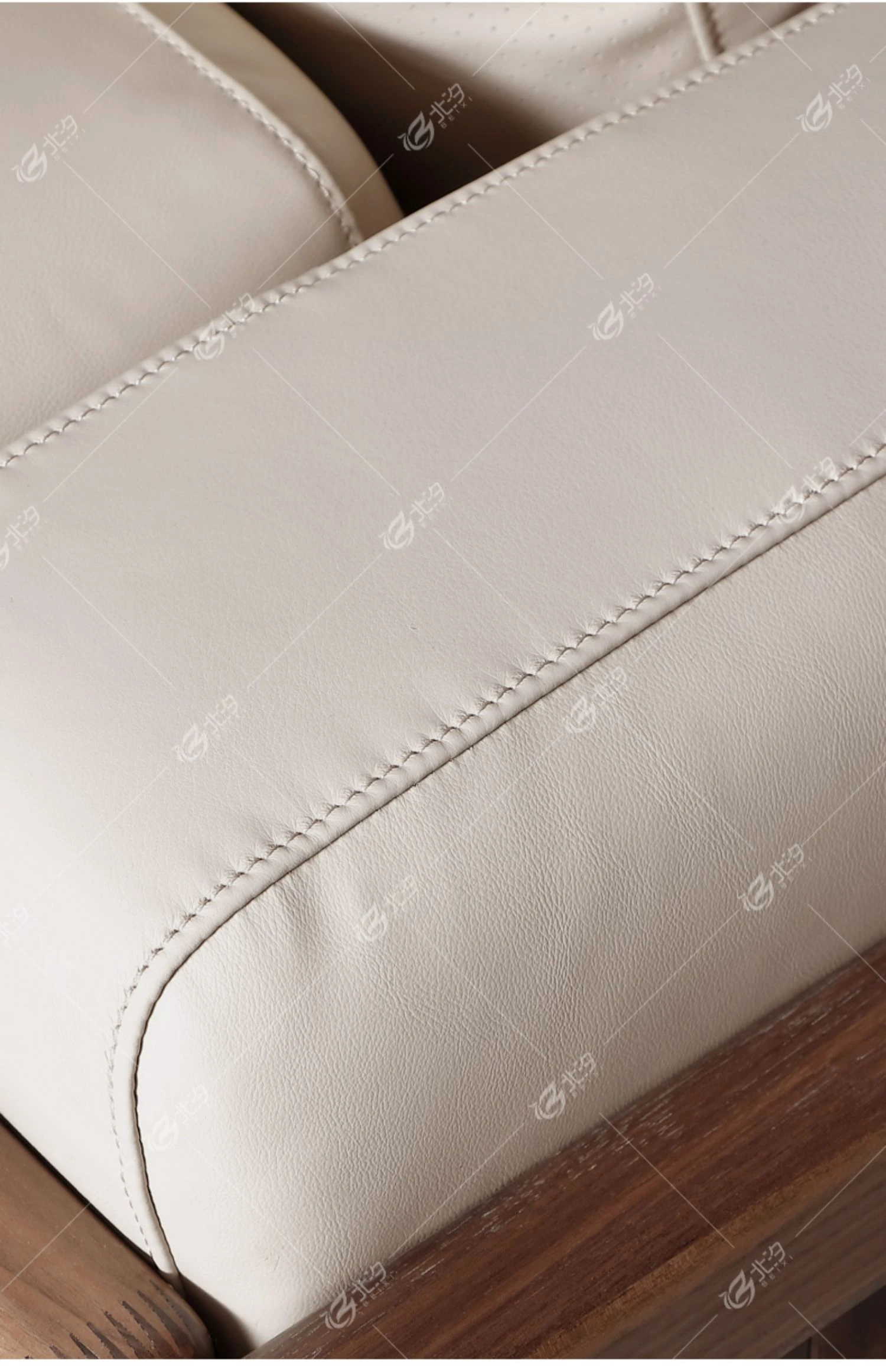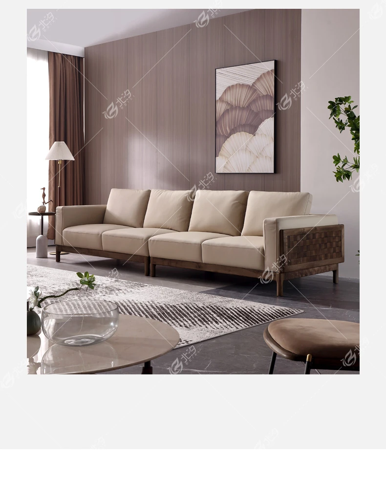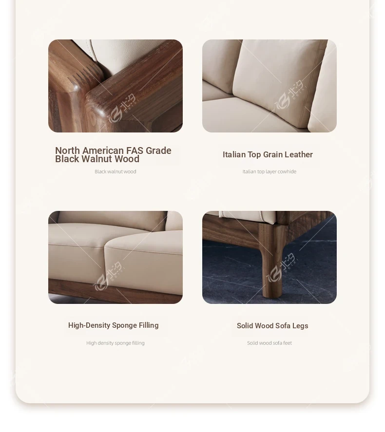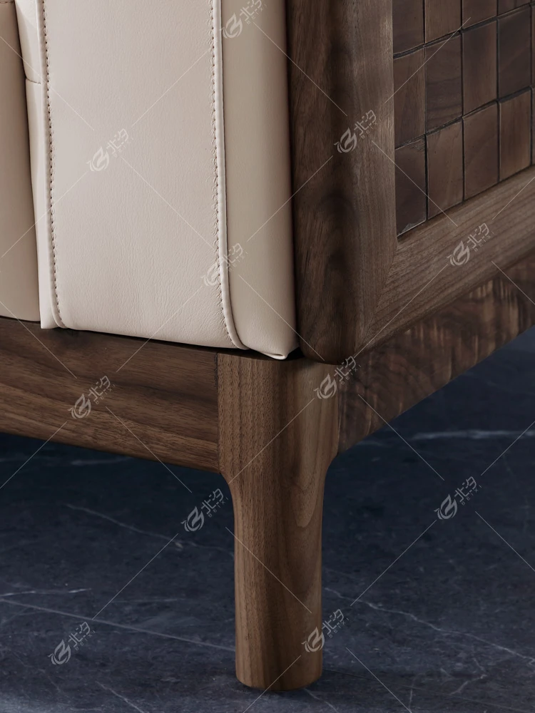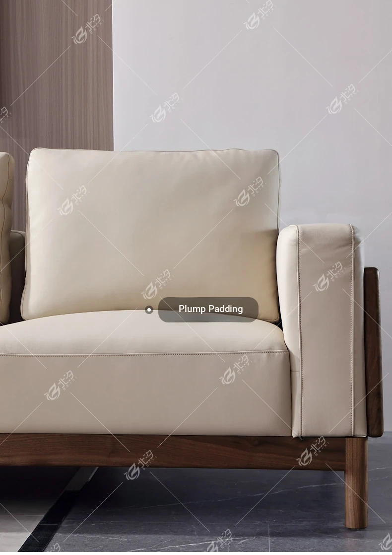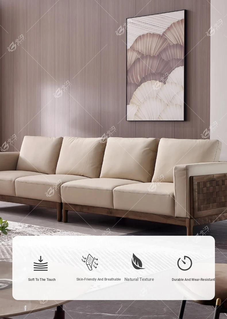 North American Black Walnut Sofa - Solid Wood Italian Minimalist Genuine Leather Couch with Top Grain Cowhide for Living Room, Seats 4