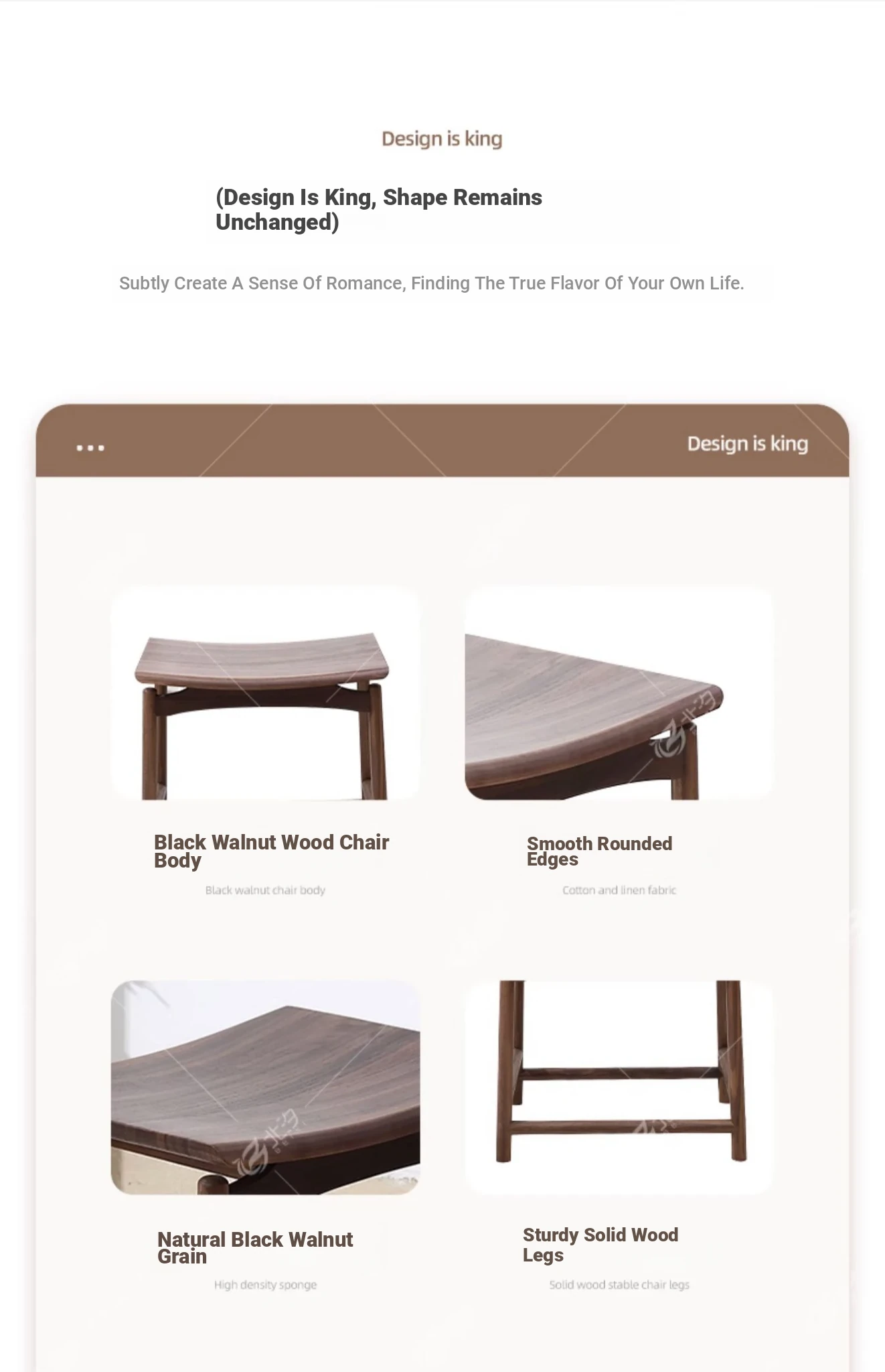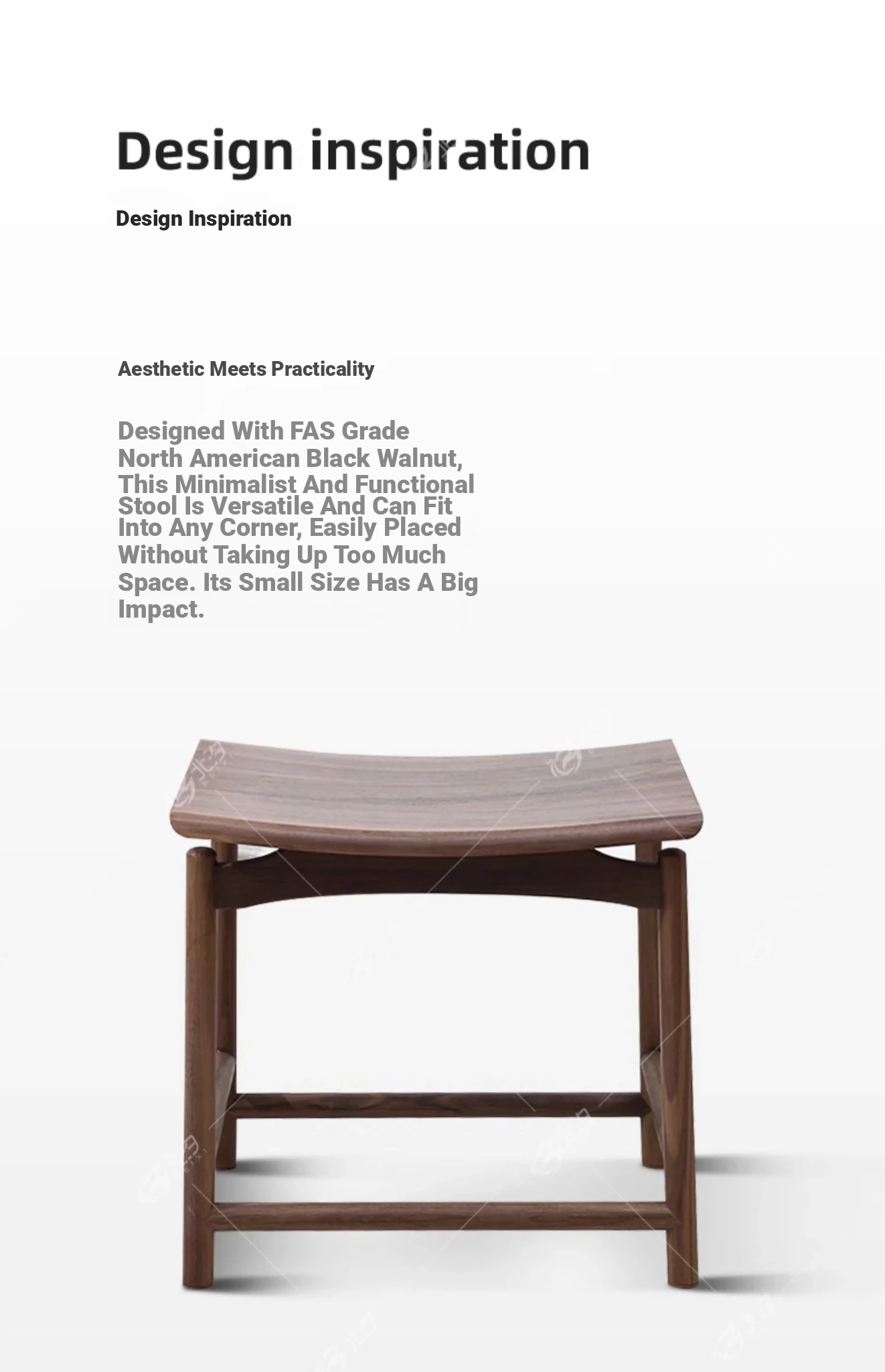 North Sea North American Black Walnut Solid Wood Stool – Elegant Makeup Stool, Versatile Gold Nugget Design, Perfect for Home Entryway and Shoe Changing Area