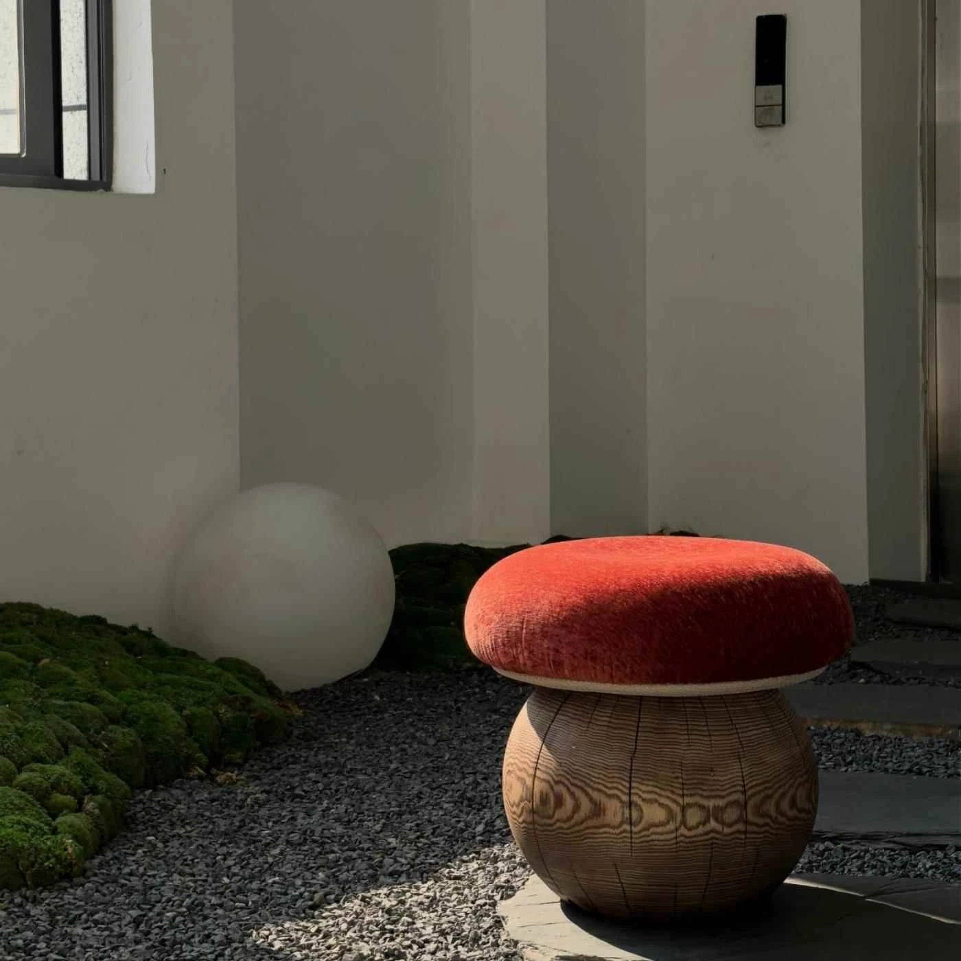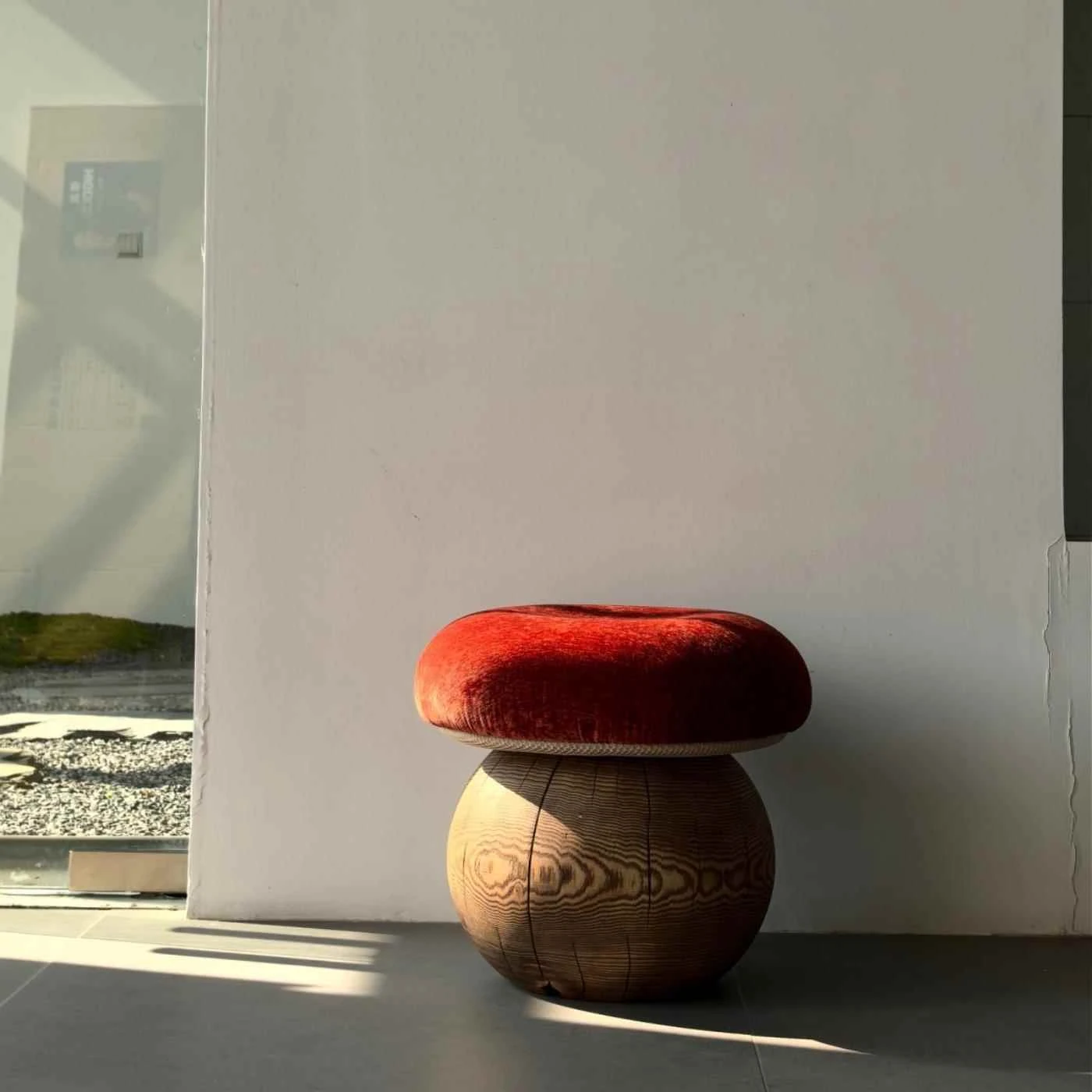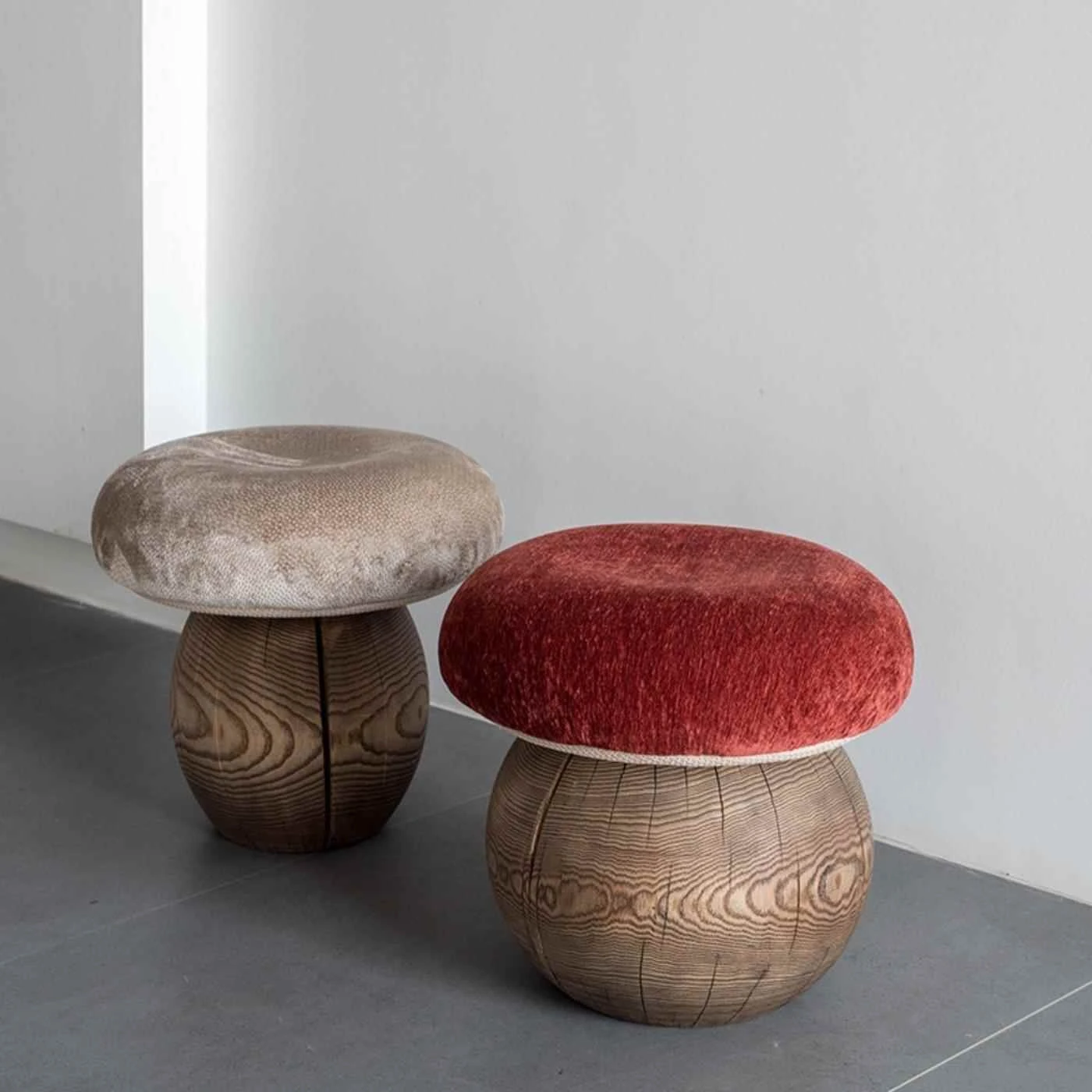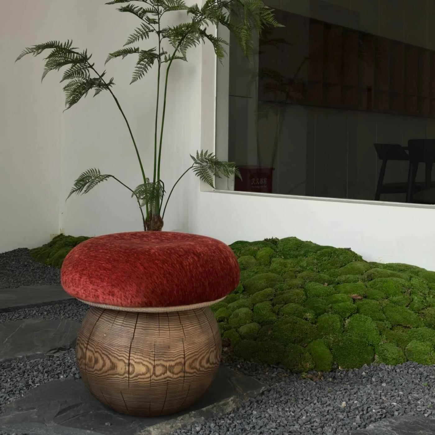 Wabi-Sabi Style Short Stool - Creative Mushroom Stool for Home, Living Room Sofa Side Table, Round Makeup Chair in Ash Wood - Perfect Addition to Your Décor!