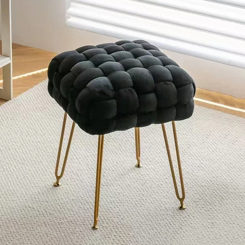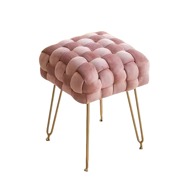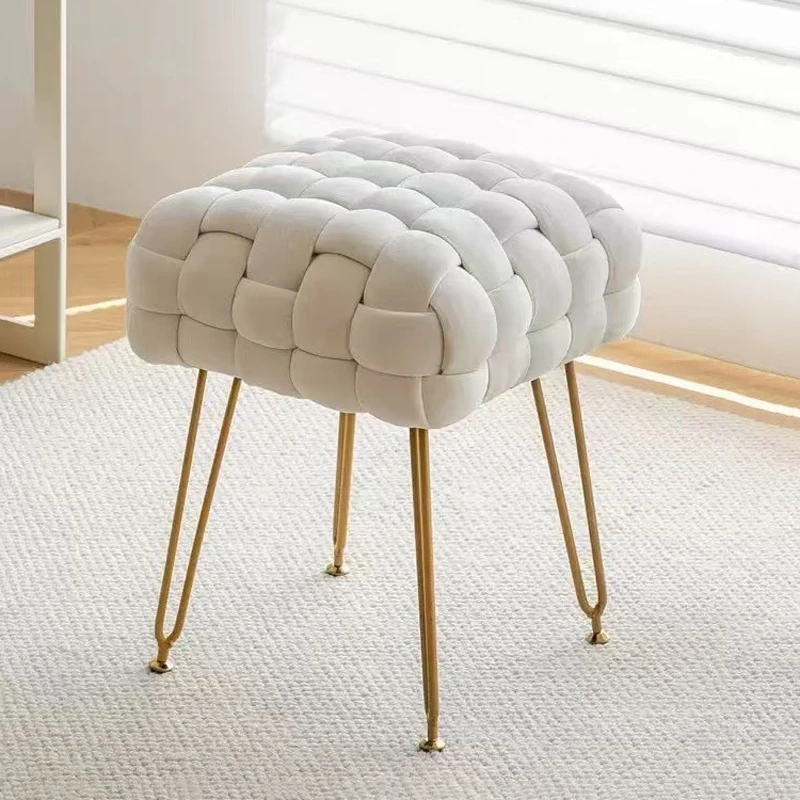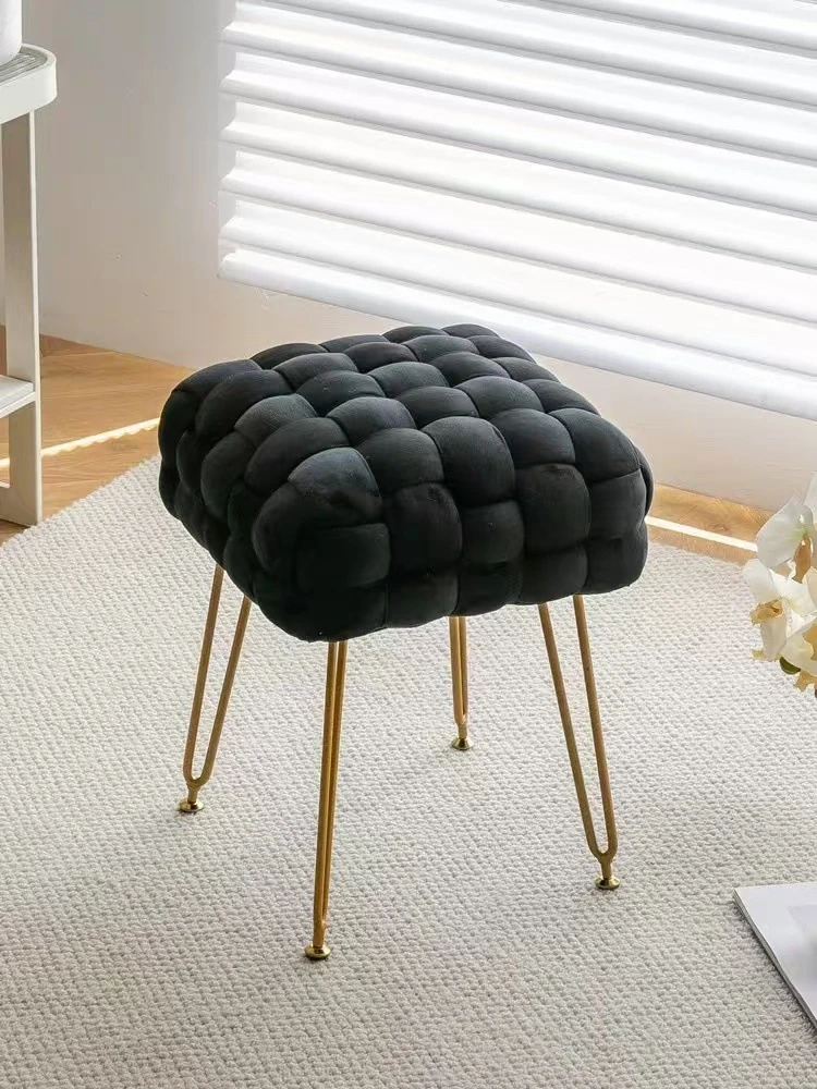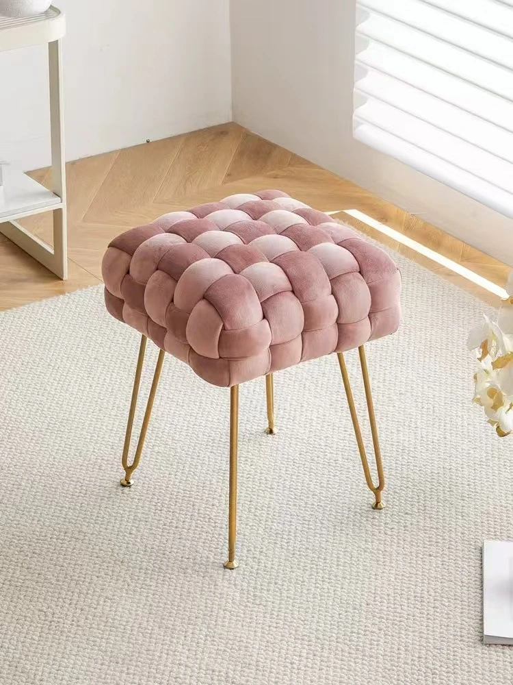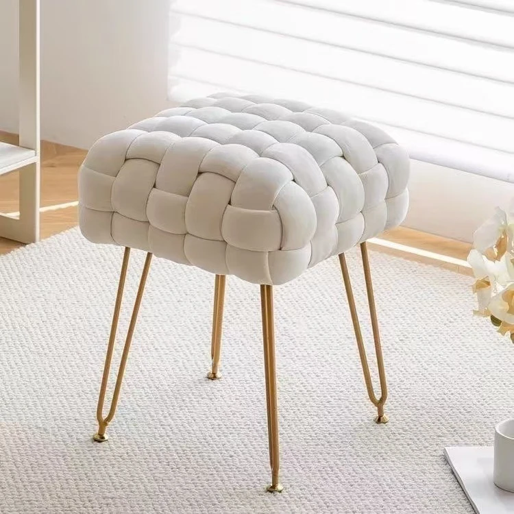 おしゃれな編み込みメイクスツール - 女子のための寝室やドレッサーに最適!高級感あふれるソフトパックデザインで、家での使い心地も抜群。玄関での靴替えにもぴったりなアイテムです。