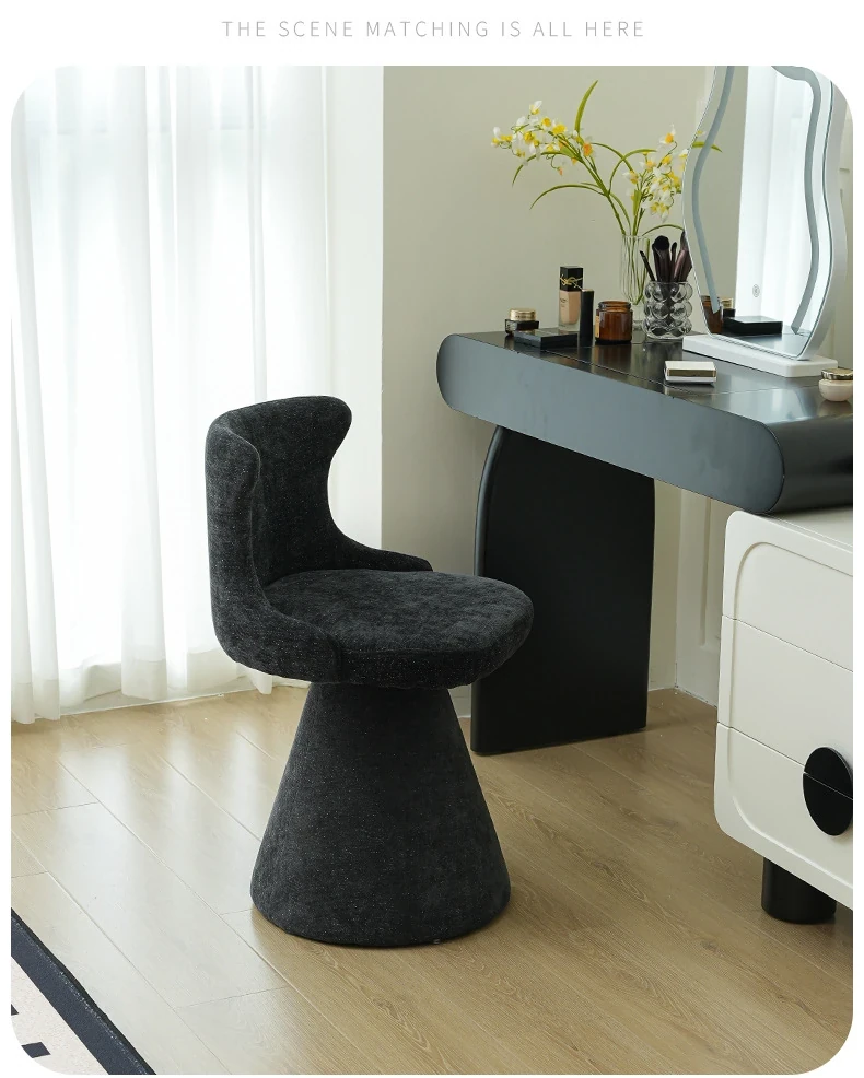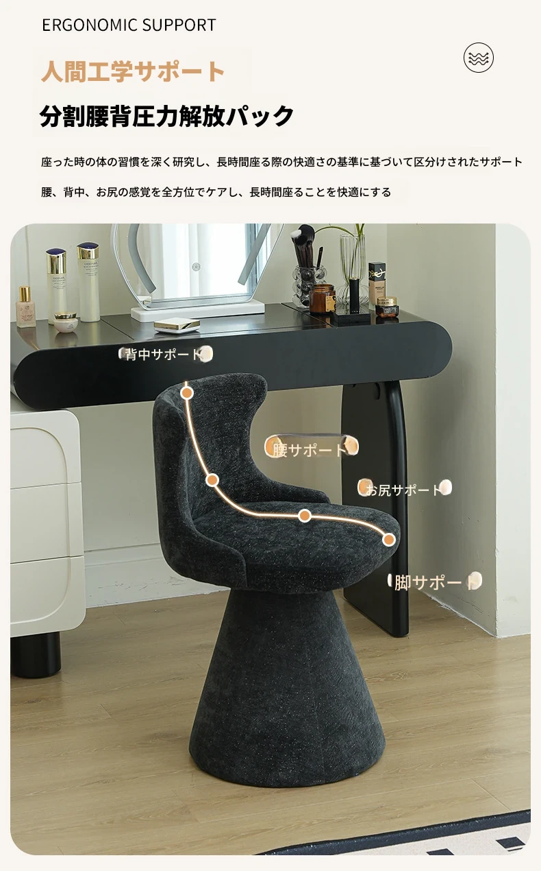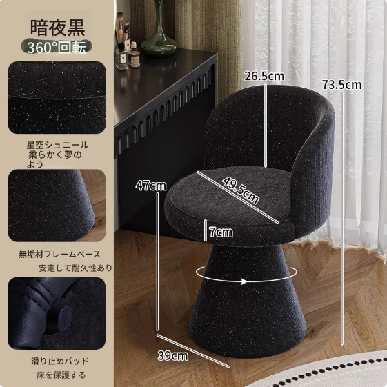 【U悦凳-ナイトブラック】シェニールフリース+360°回転ベース
