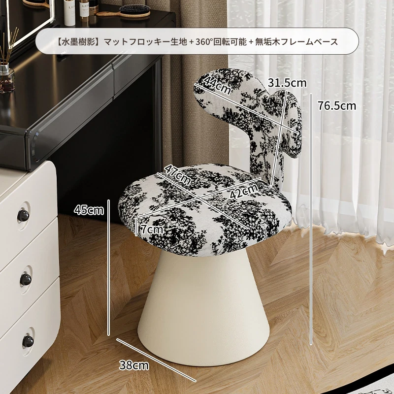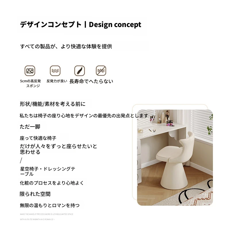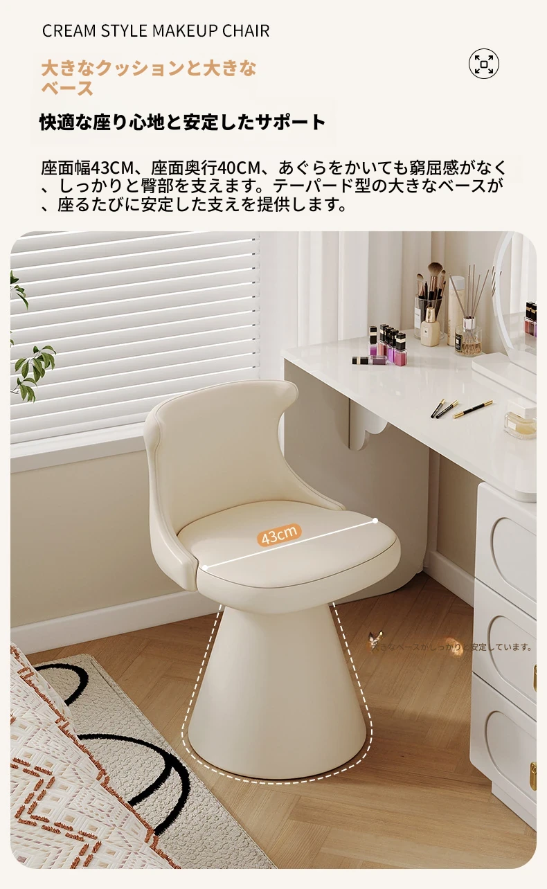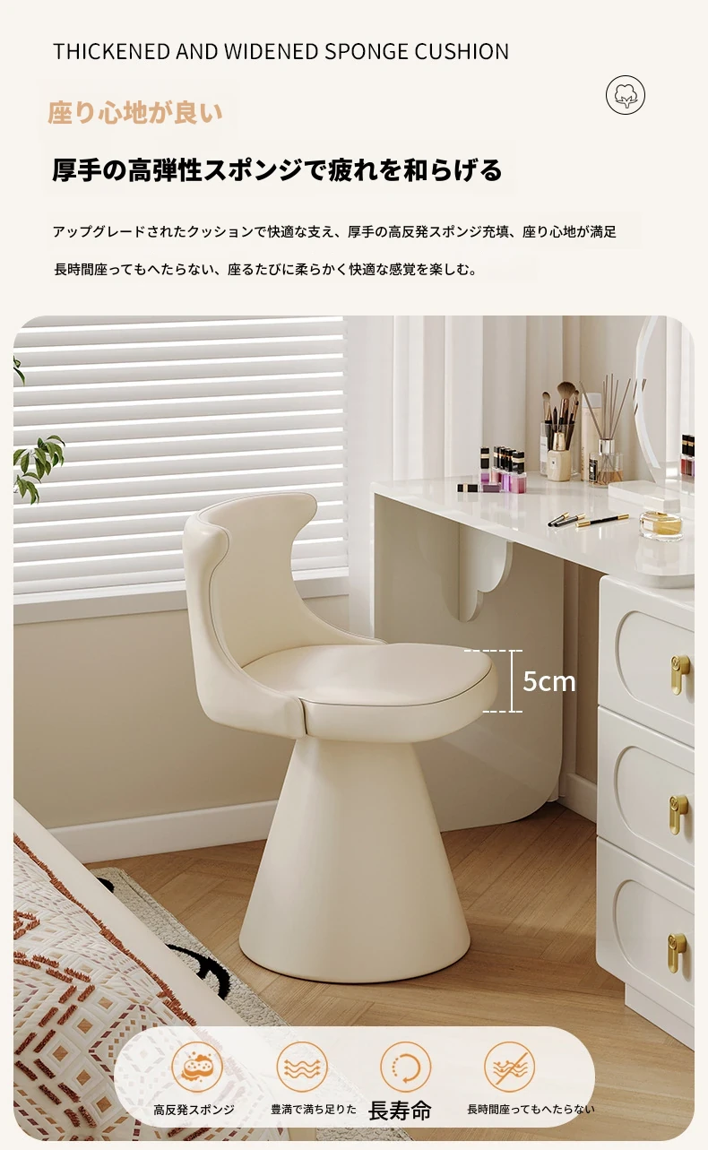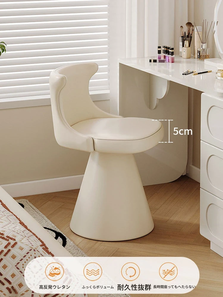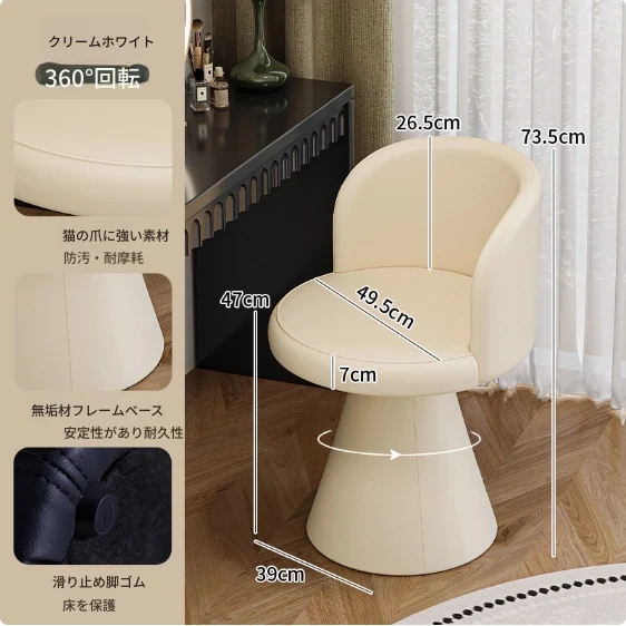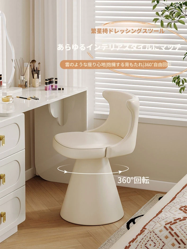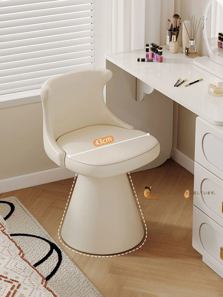 クリーム風化粧台、女性のための寝室用小型化粧椅子。回転式背もたれ付き、コンパクトで使いやすく、美容やネイルにも最適なアイテム!おしゃれな空間を演出します。