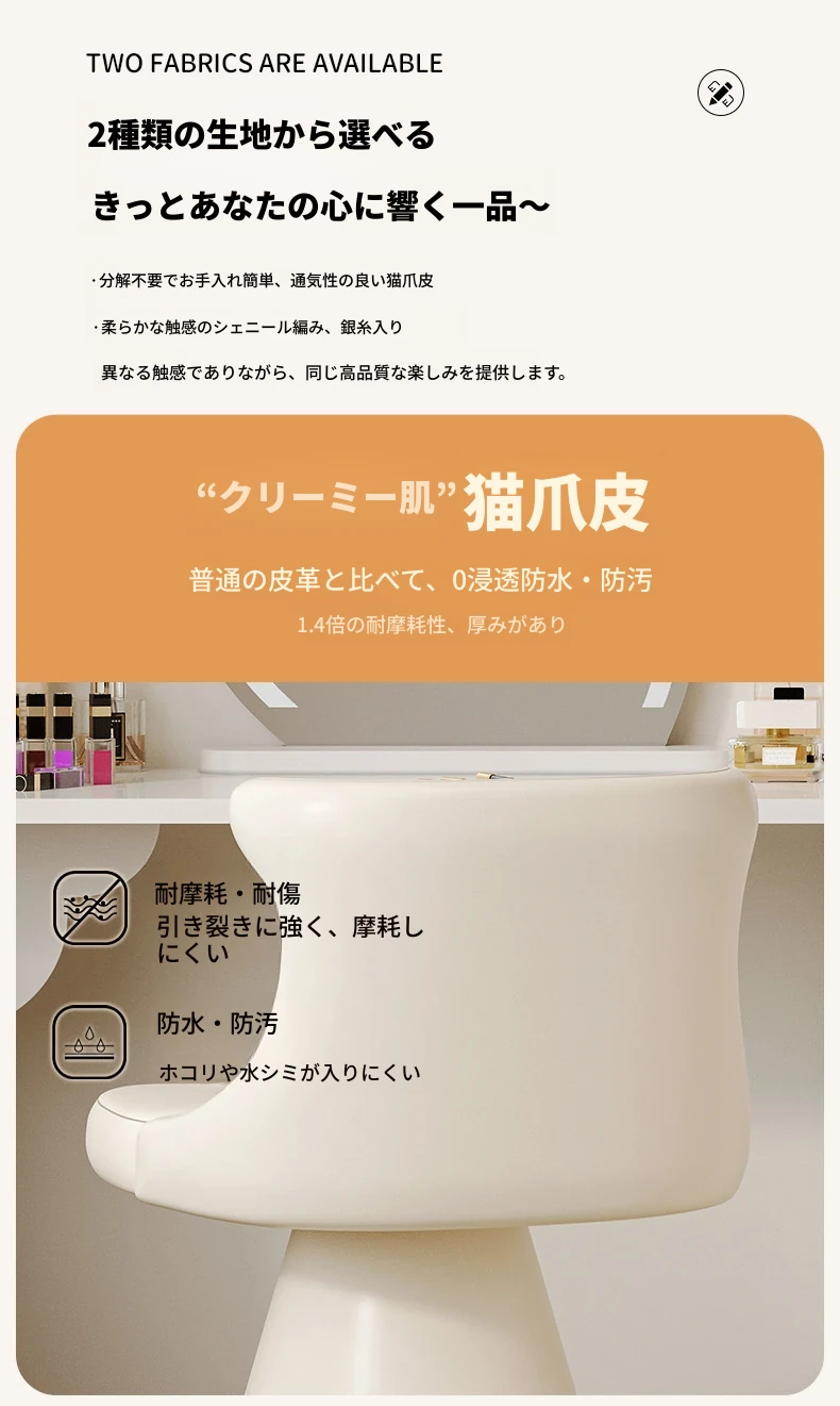 【U悦凳-クリームホワイト】キャットスクラッチ素材+360°回転ベース