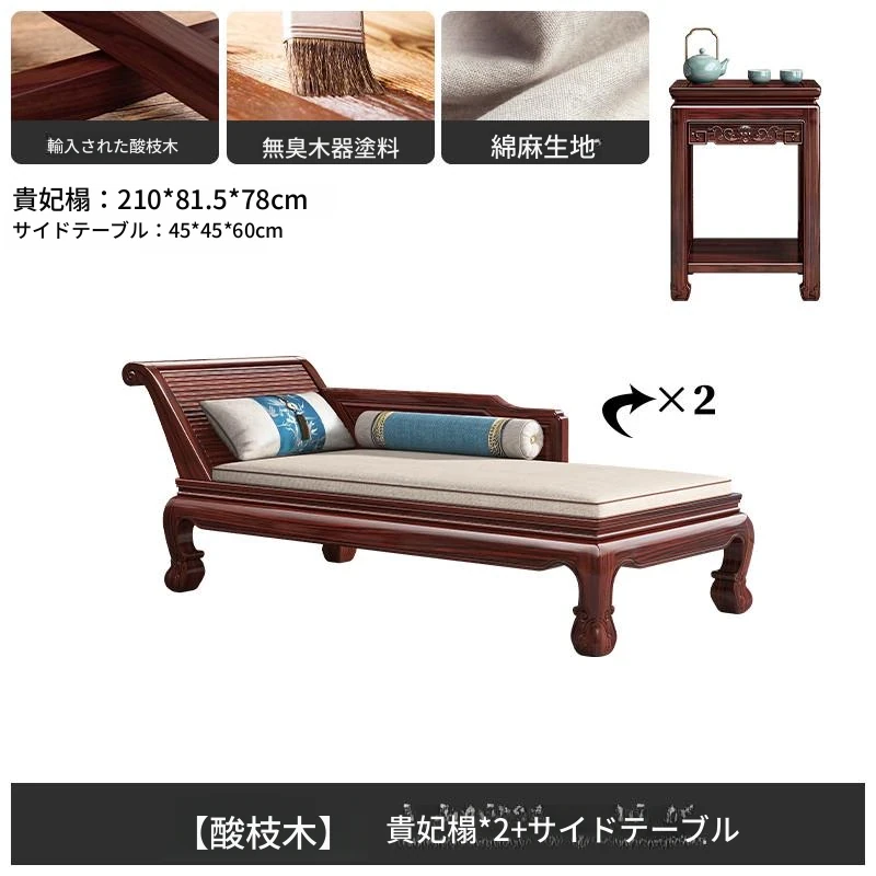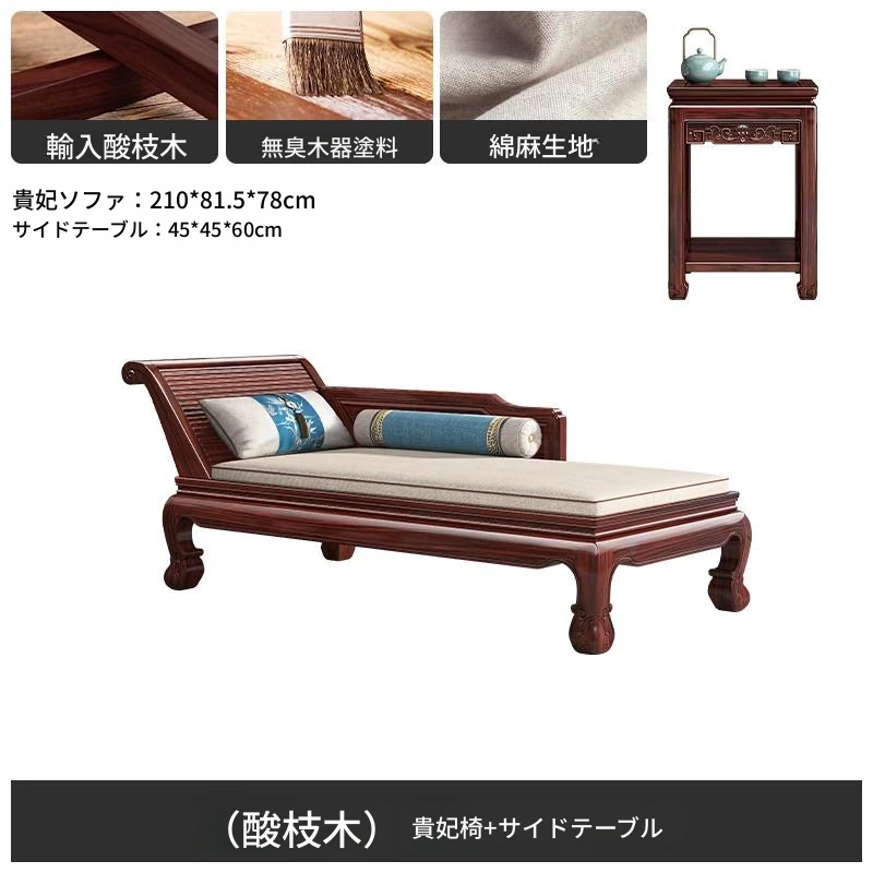 新中式の無垢材使用、優雅な貴妃椅子。酸枝木製で、リビングや寝室にぴったりなレトロなデザイン。くつろぎの時間を提供する美人榻、寝椅子としても最適です。