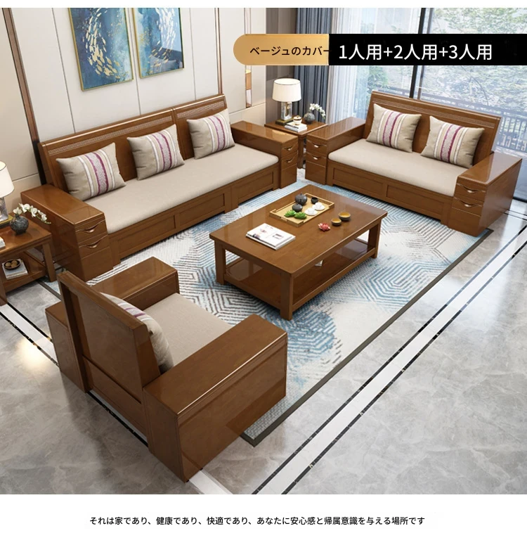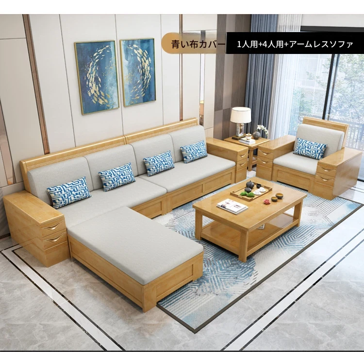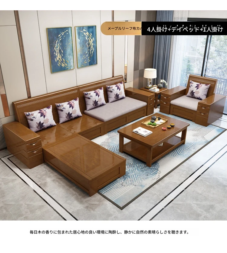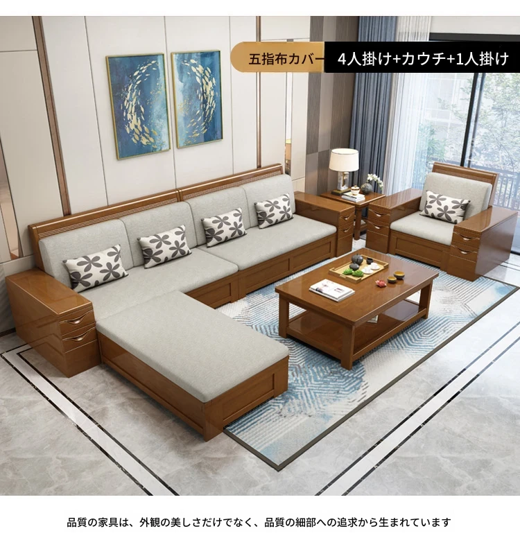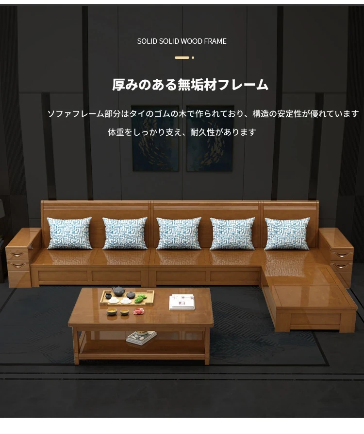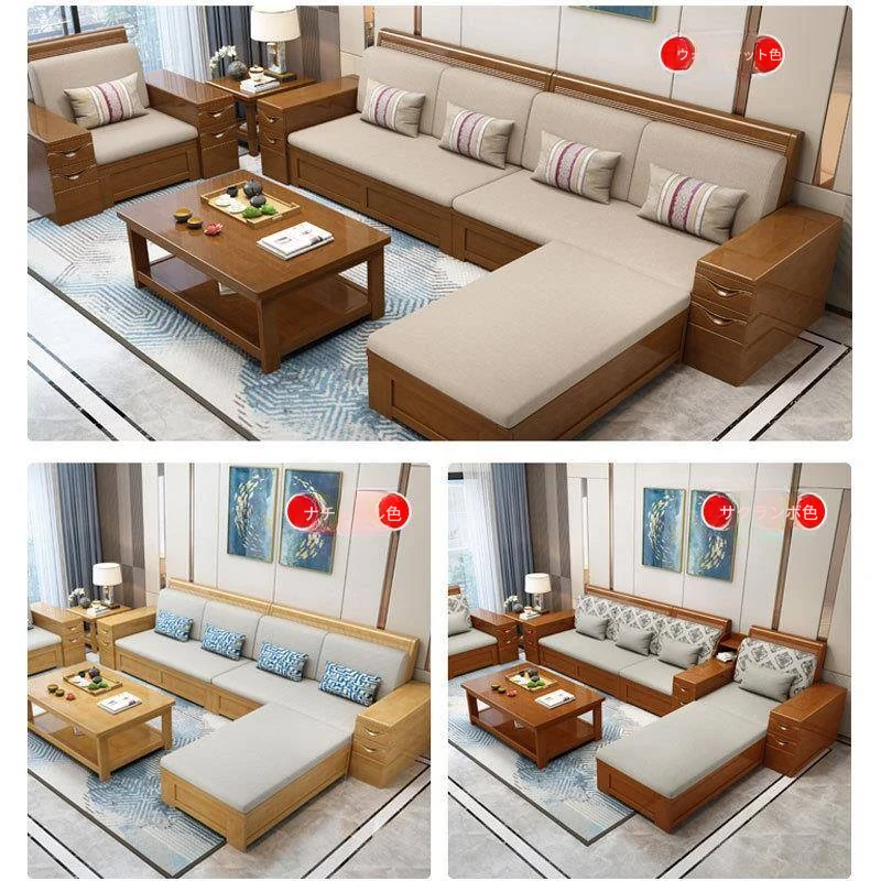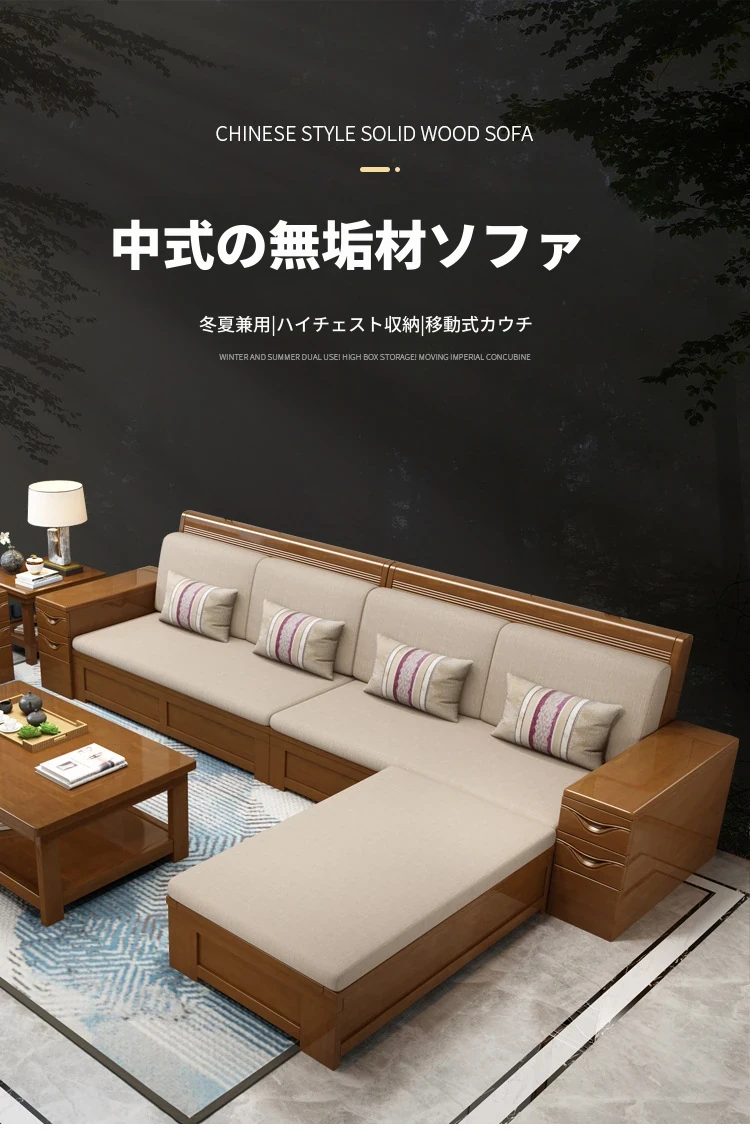 モダン中式デザインのラバーロ木製Hk915#+8ソファセット!冬も夏も快適に使えるリビング家具、スタイリッシュで機能的な新しいインテリアを手に入れよう!