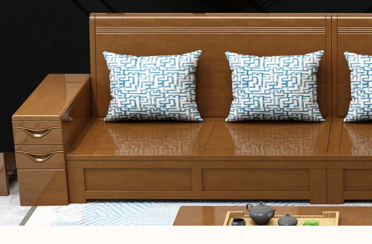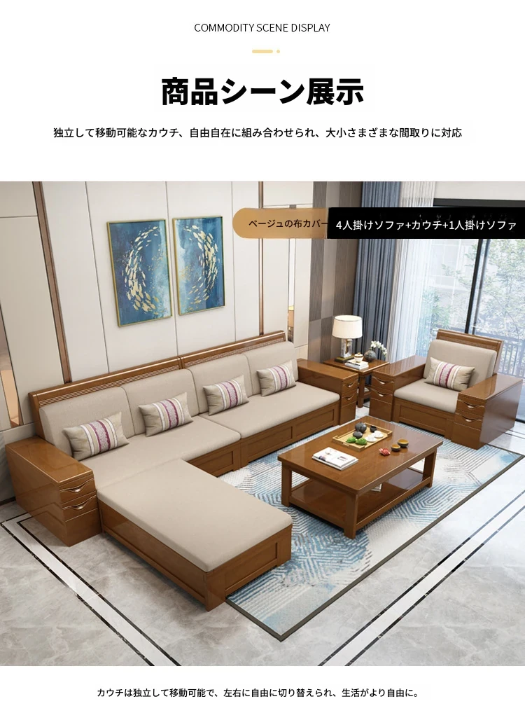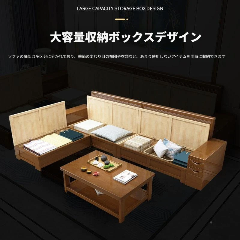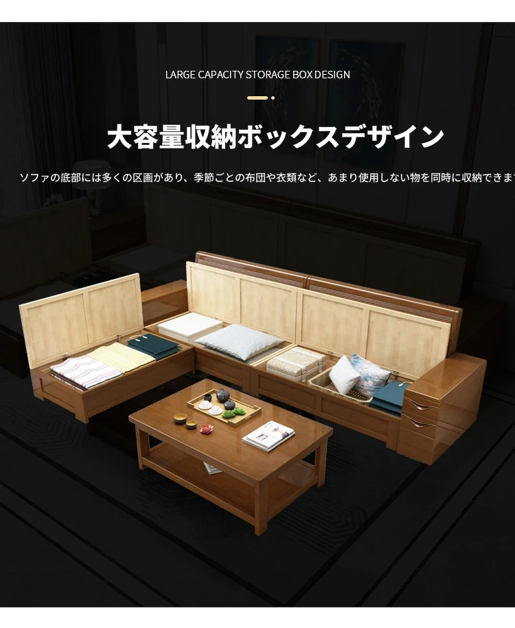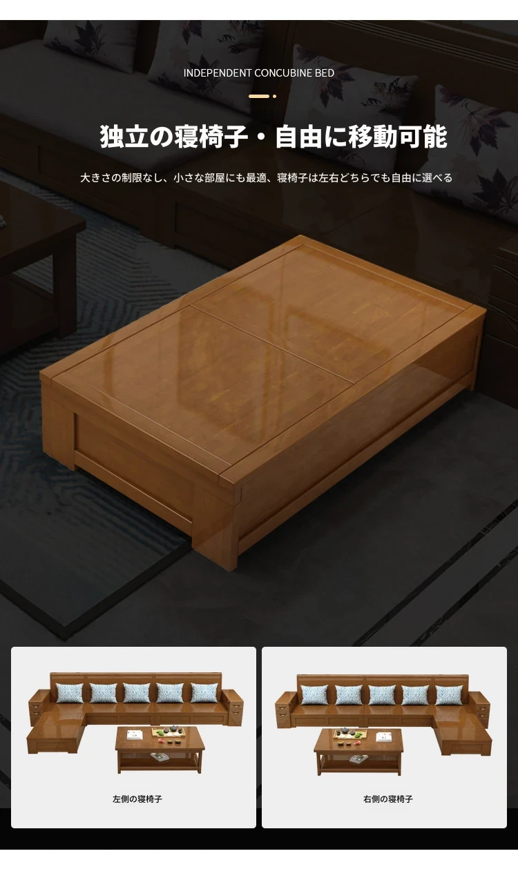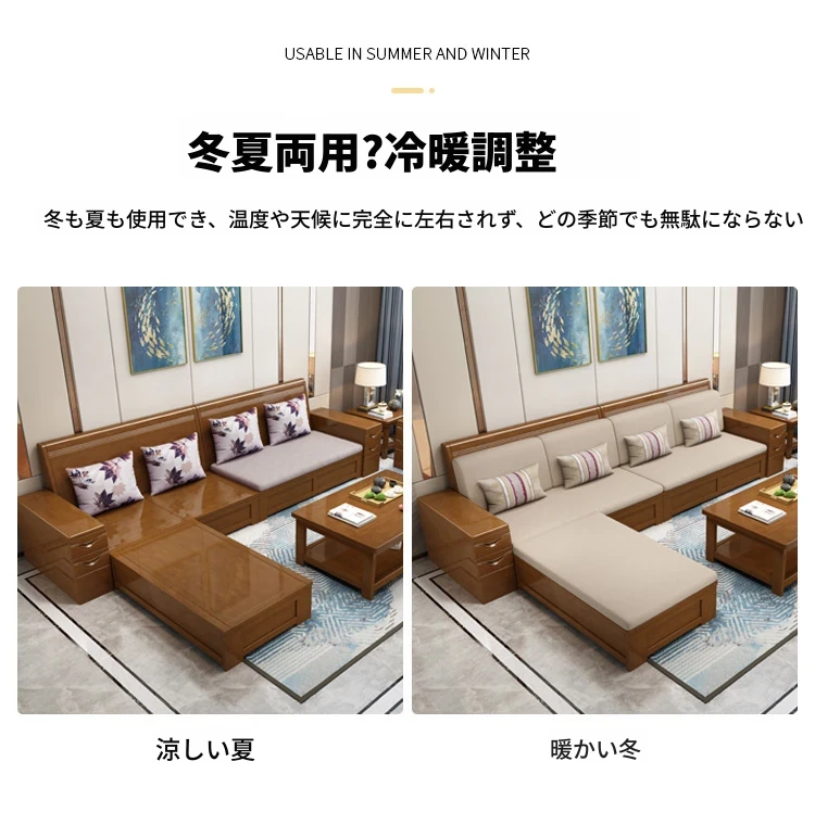 モダン中式デザインのラバーロ木製Hk915#+8ソファセット!冬も夏も快適に使えるリビング家具、スタイリッシュで機能的な新しいインテリアを手に入れよう!