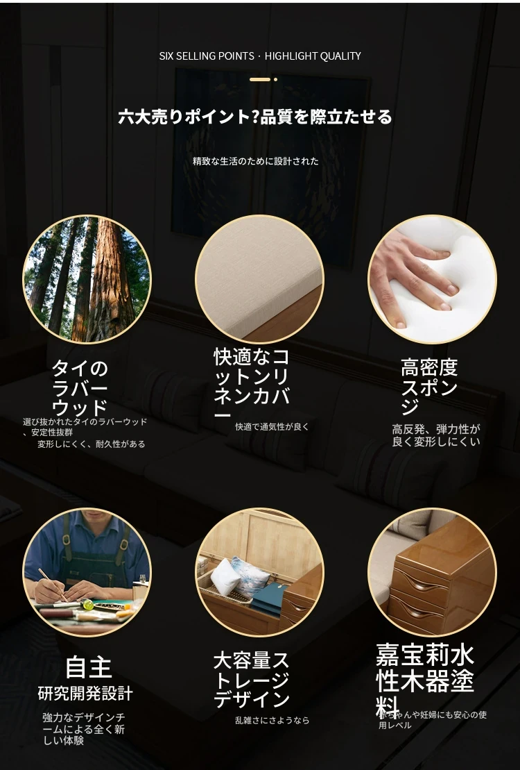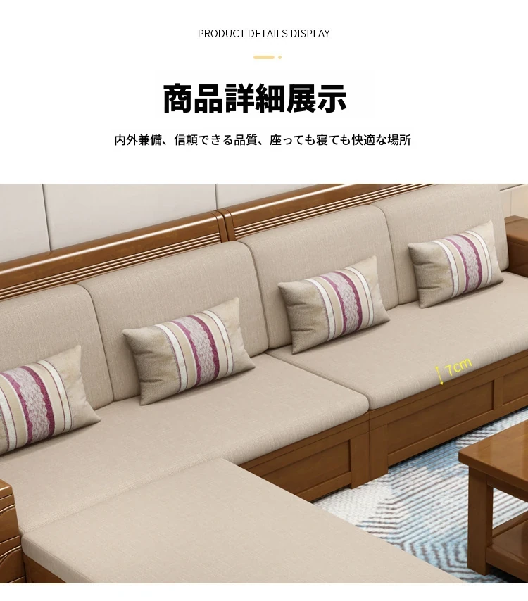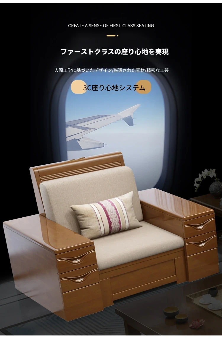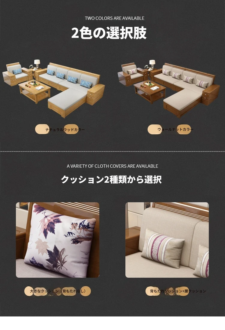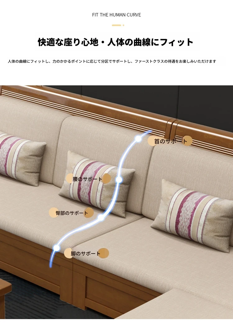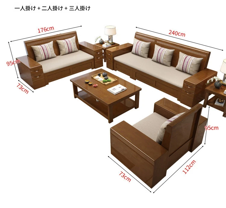モダン中式デザインのラバーロ木製Hk915#+8ソファセット!冬も夏も快適に使えるリビング家具、スタイリッシュで機能的な新しいインテリアを手に入れよう!