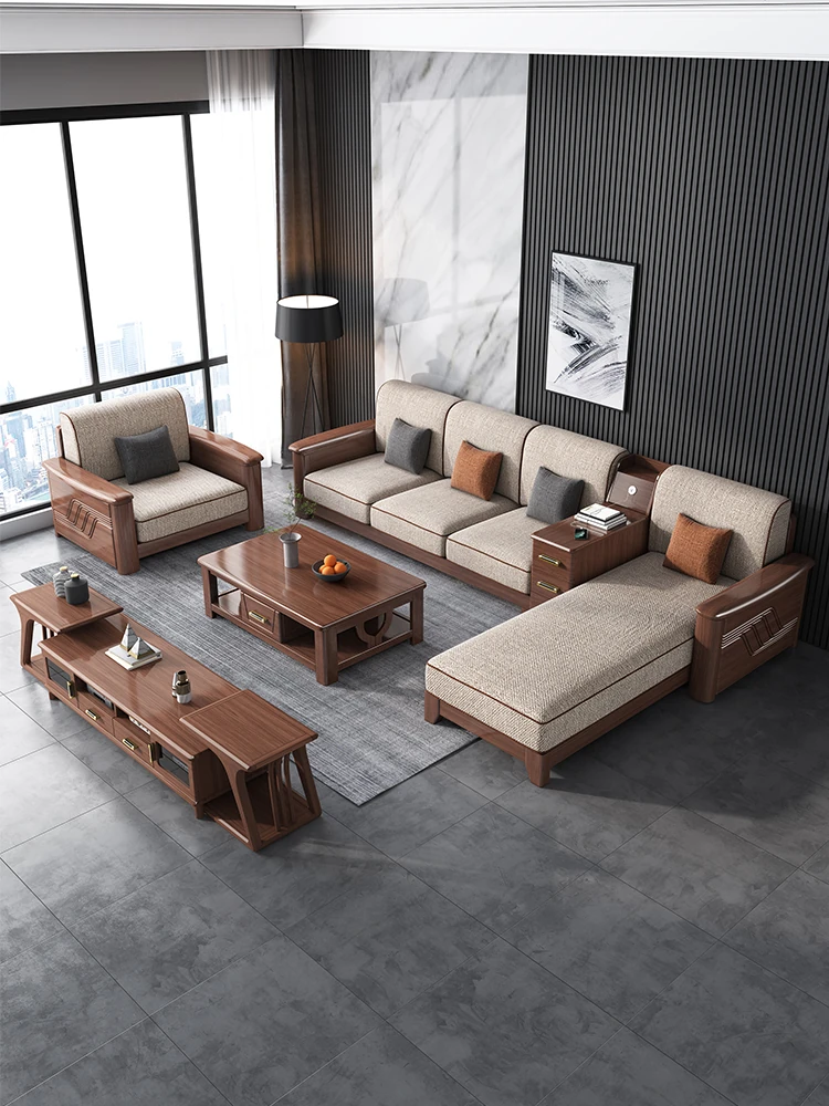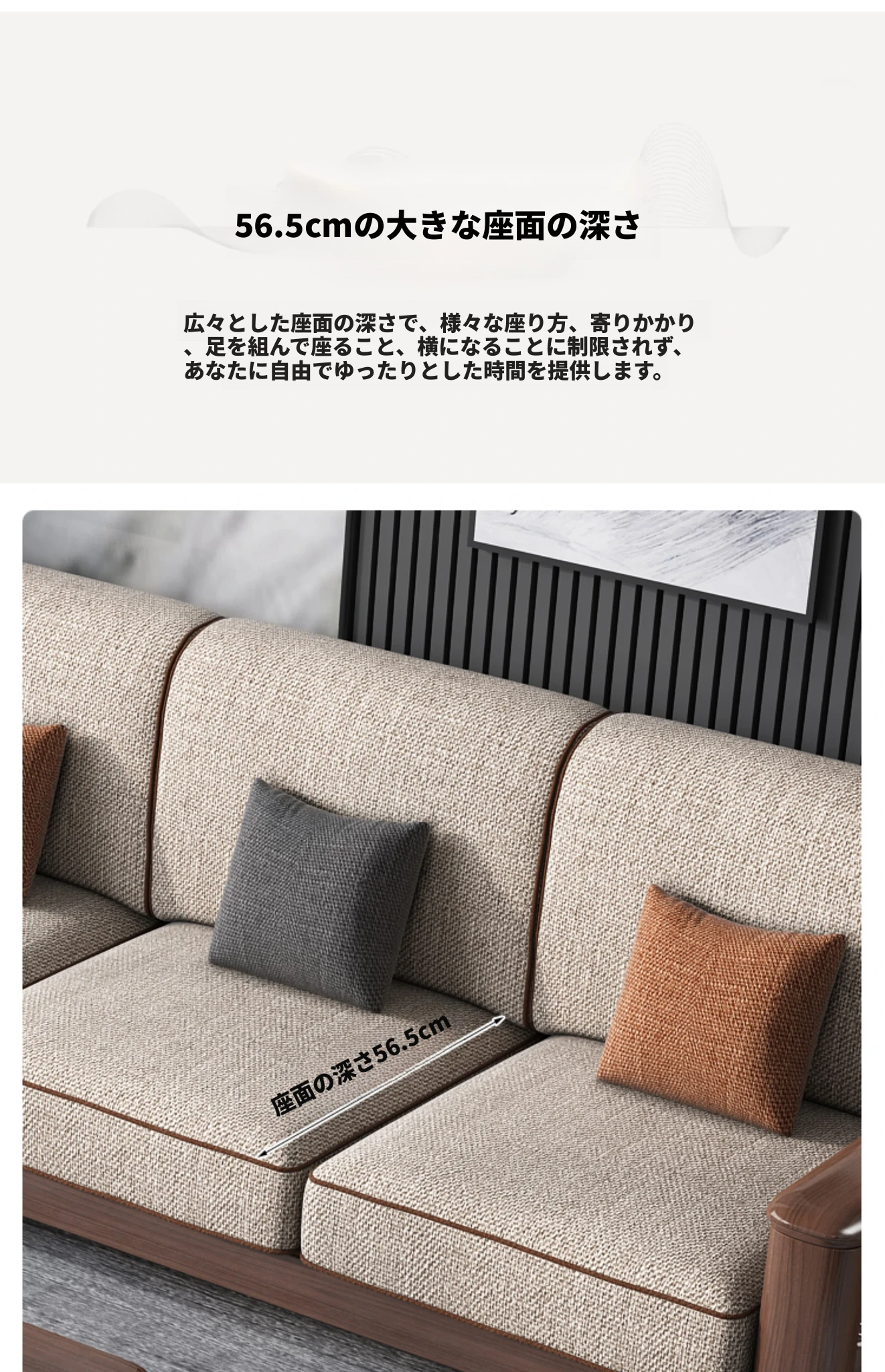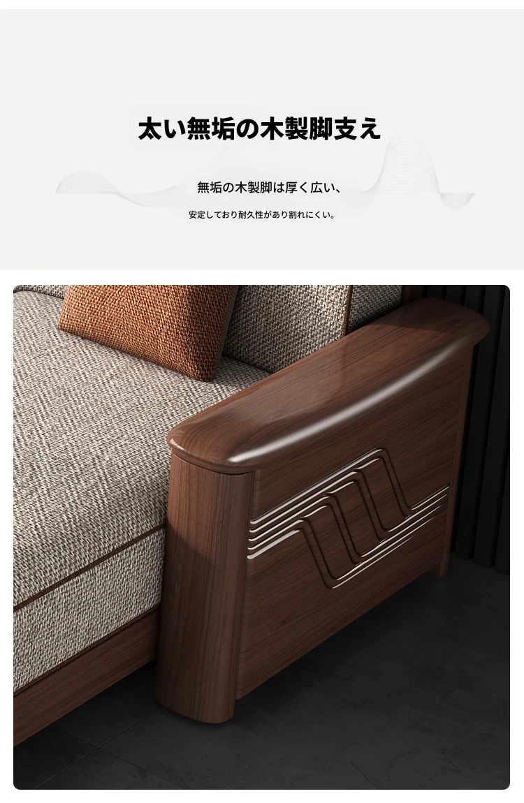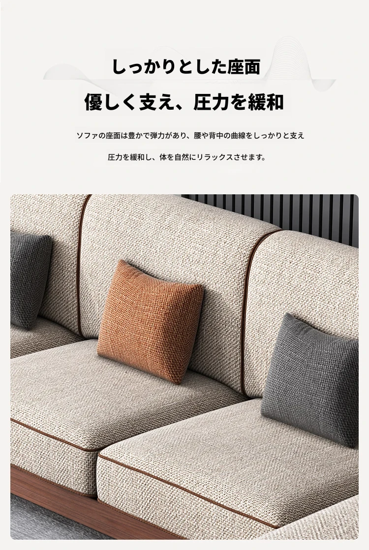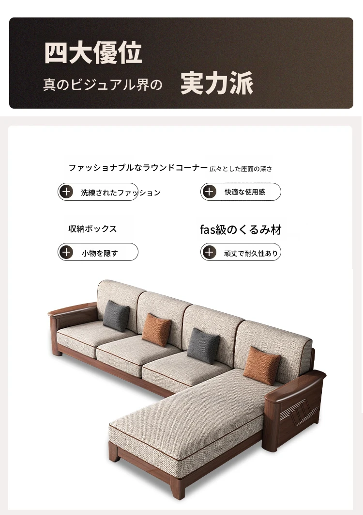 新中式ウォールナット無垢材リビングソファ 大型・小型向け シンプルな組み合わせ L字型デイベッドソファで、居心地の良い空間を演出!