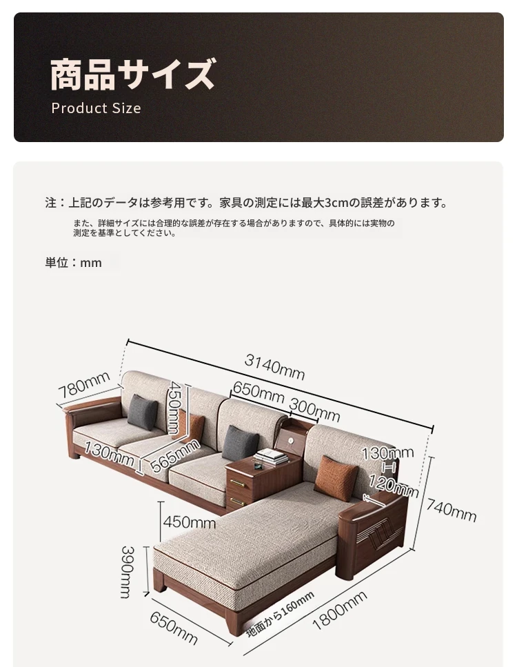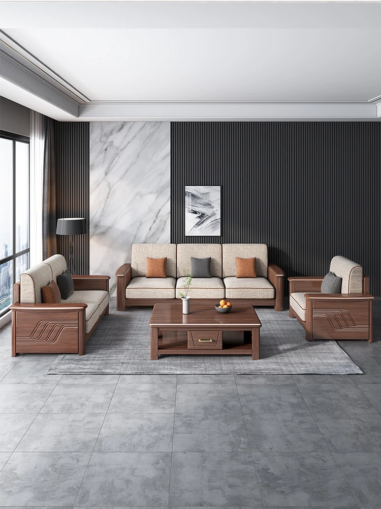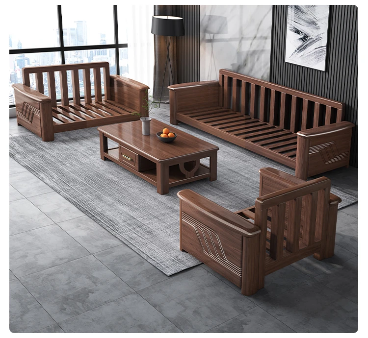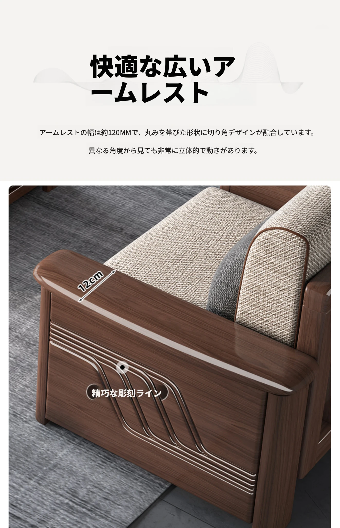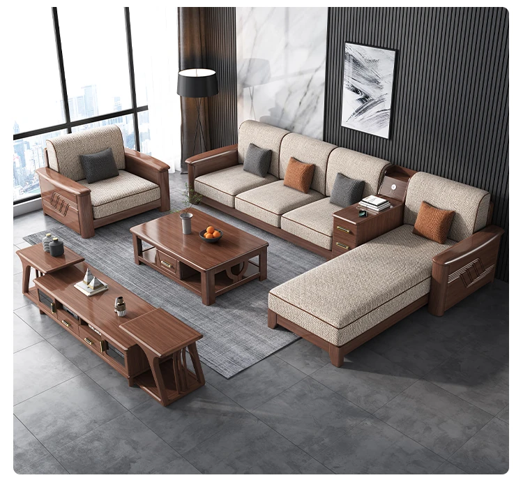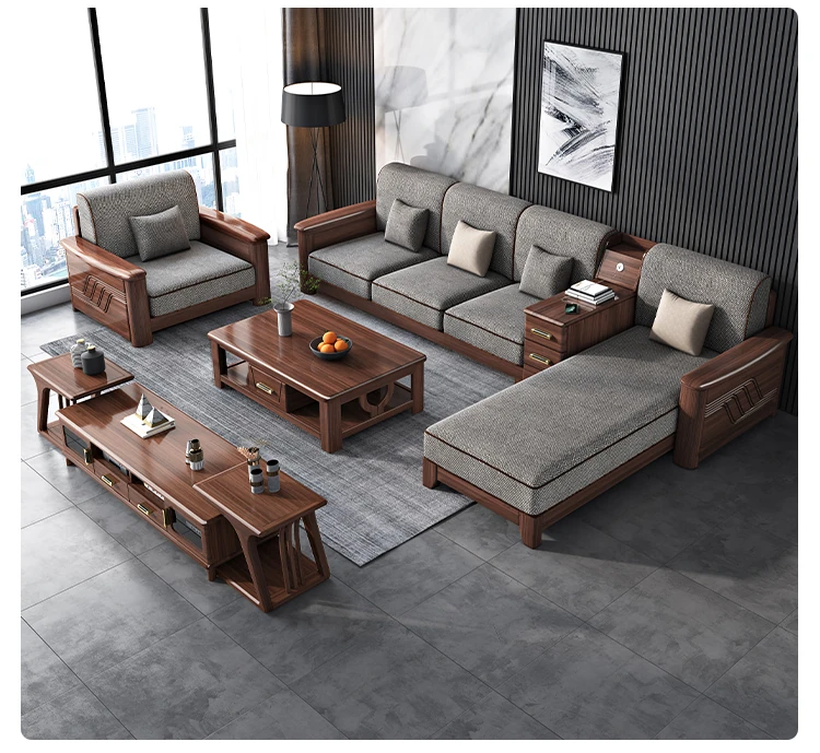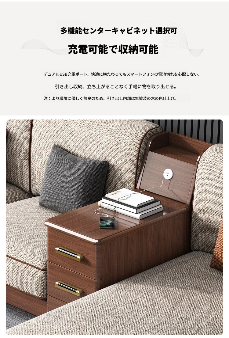新中式ウォールナット無垢材リビングソファ 大型・小型向け シンプルな組み合わせ L字型デイベッドソファで、居心地の良い空間を演出!