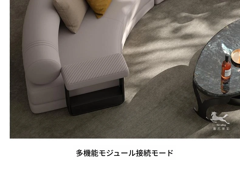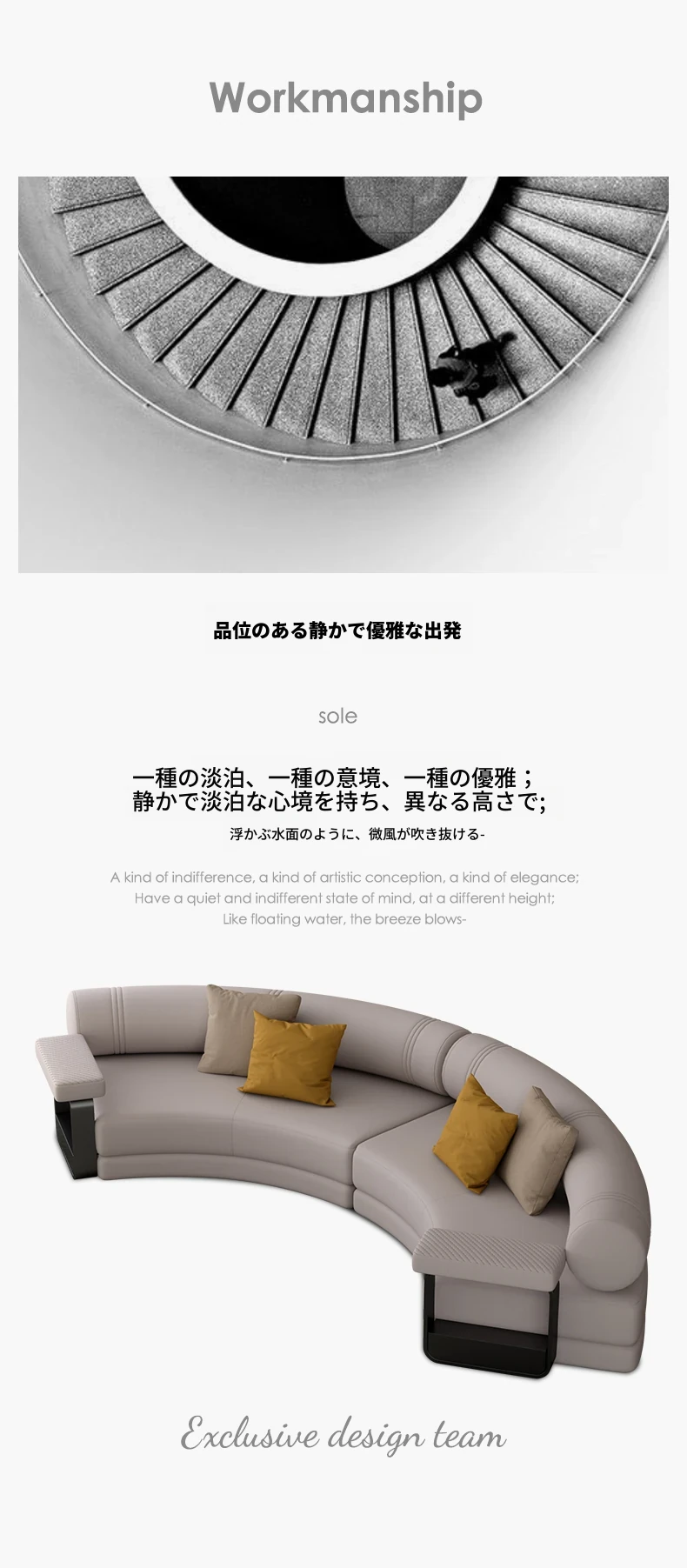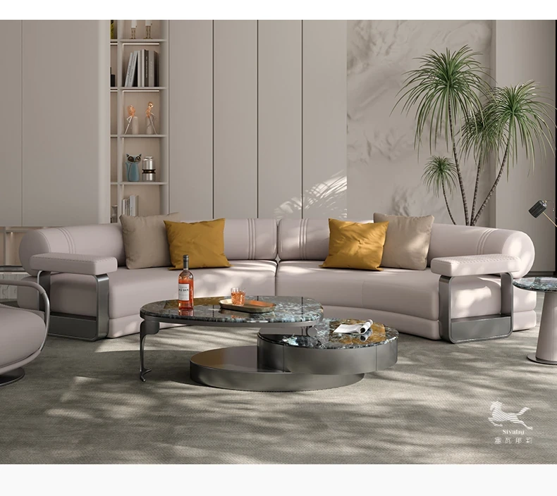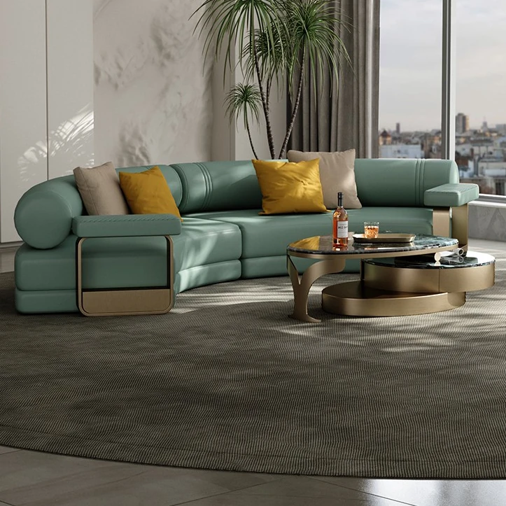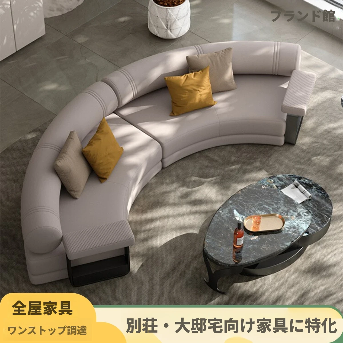 イタリアンモダンラグジュアリー本革リビングソファー - 半立ちスタイルの広々とした豪邸向けアーチ型デザイン、新作ソファS1で優雅な空間を演出!