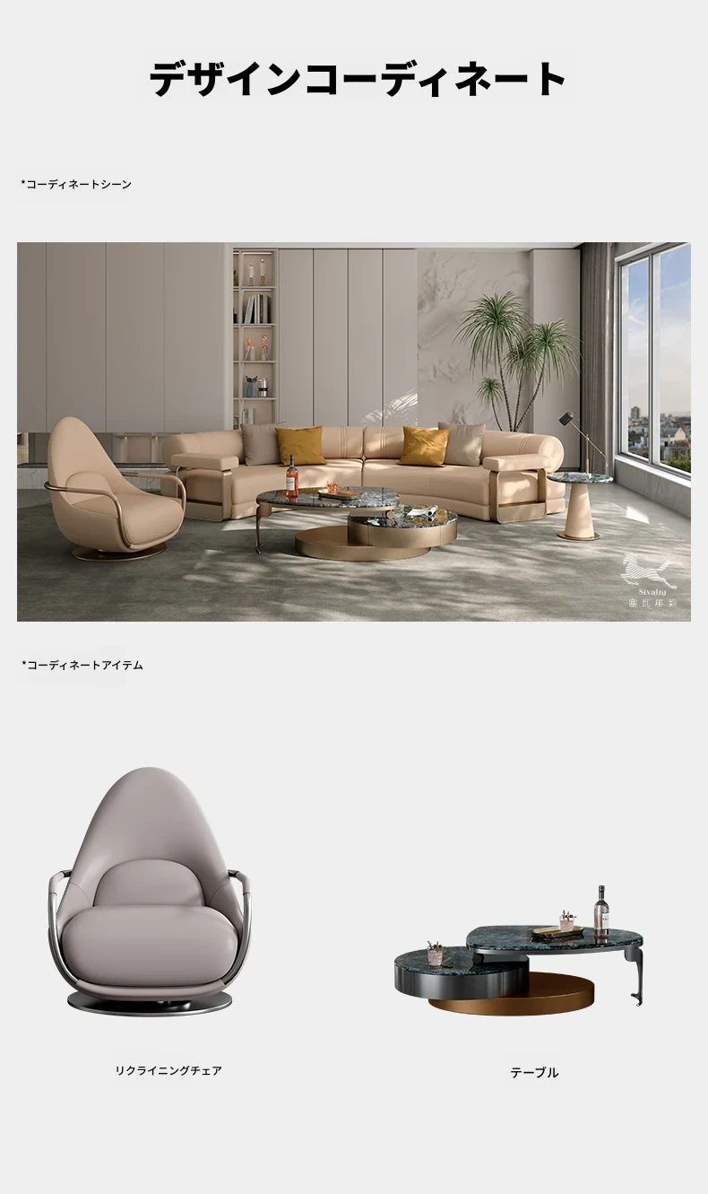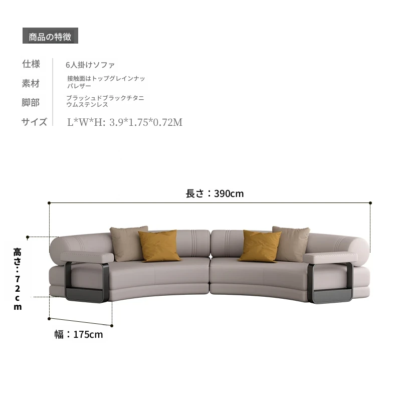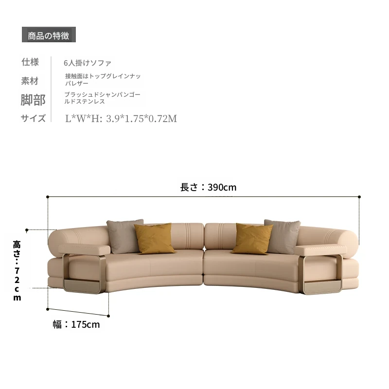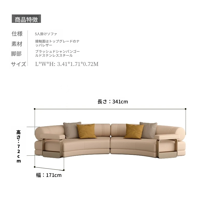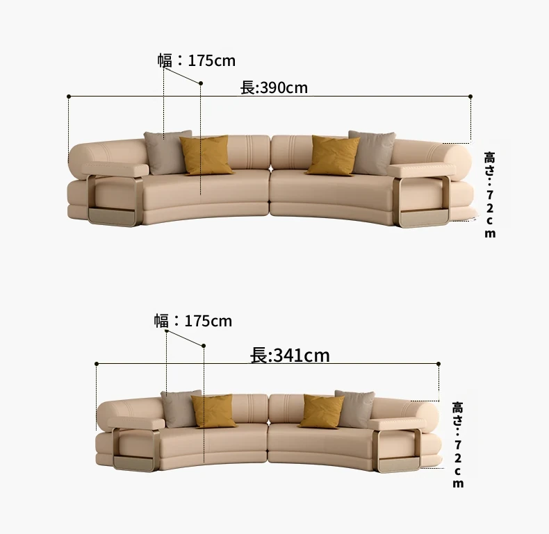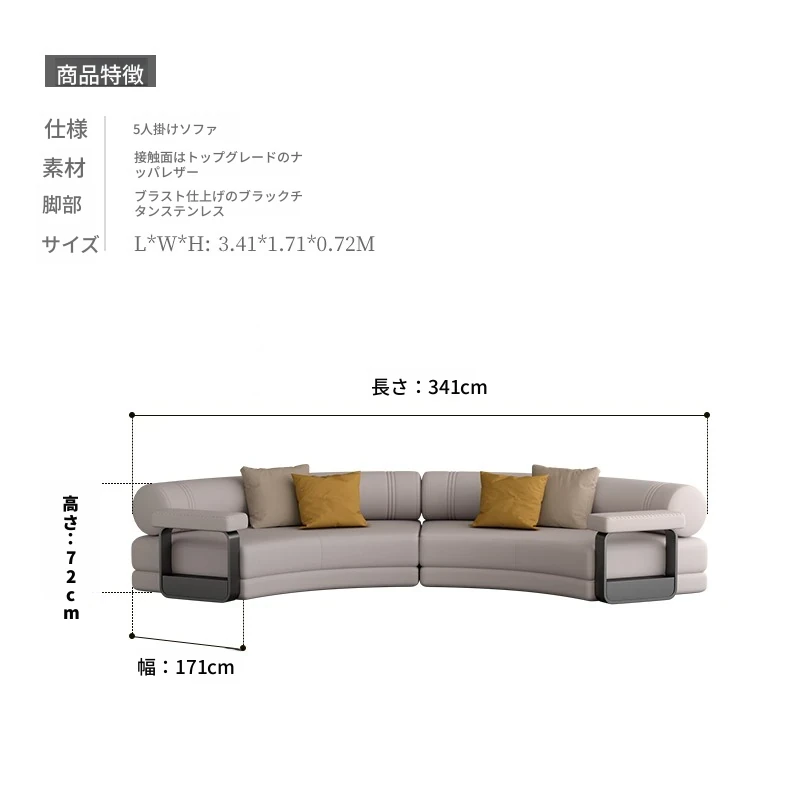 イタリアンモダンラグジュアリー本革リビングソファー - 半立ちスタイルの広々とした豪邸向けアーチ型デザイン、新作ソファS1で優雅な空間を演出!