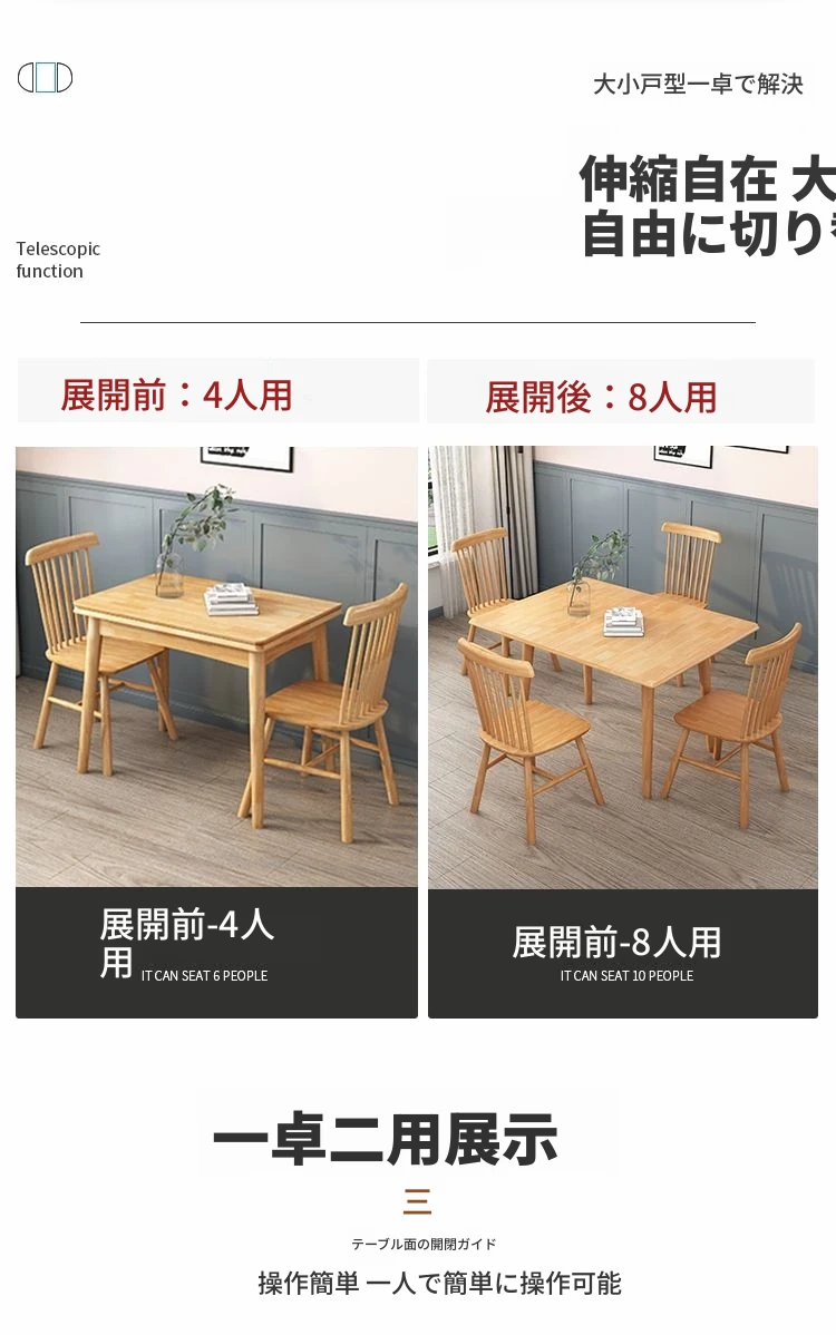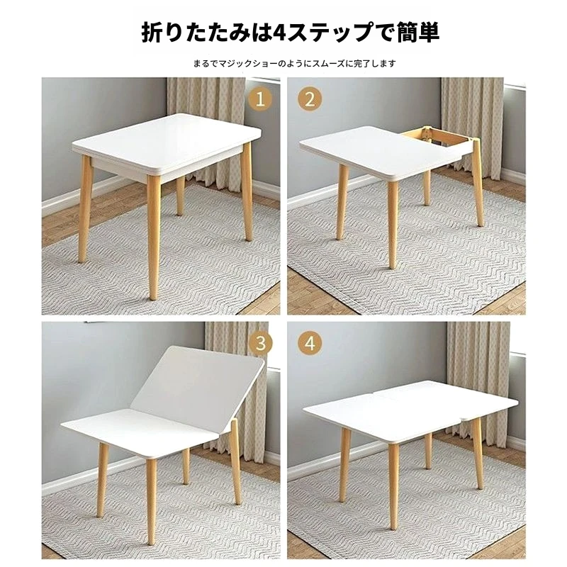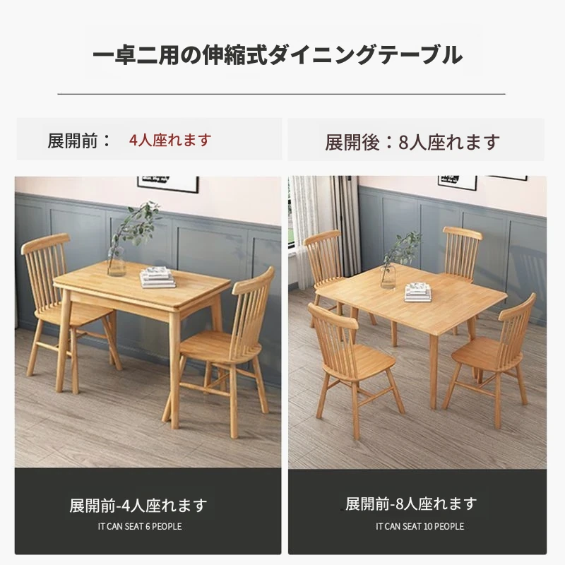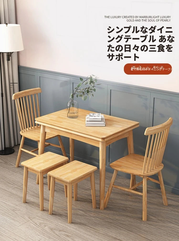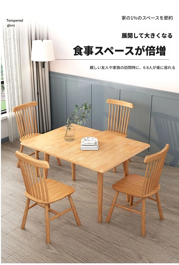 折りたたみ式ダイニングテーブル 小型住宅向け モダンシンプル 伸縮可能な長方形 北欧スタイル 天然木製 ダイニングチェアセット コンパクトで機能的なテーブル