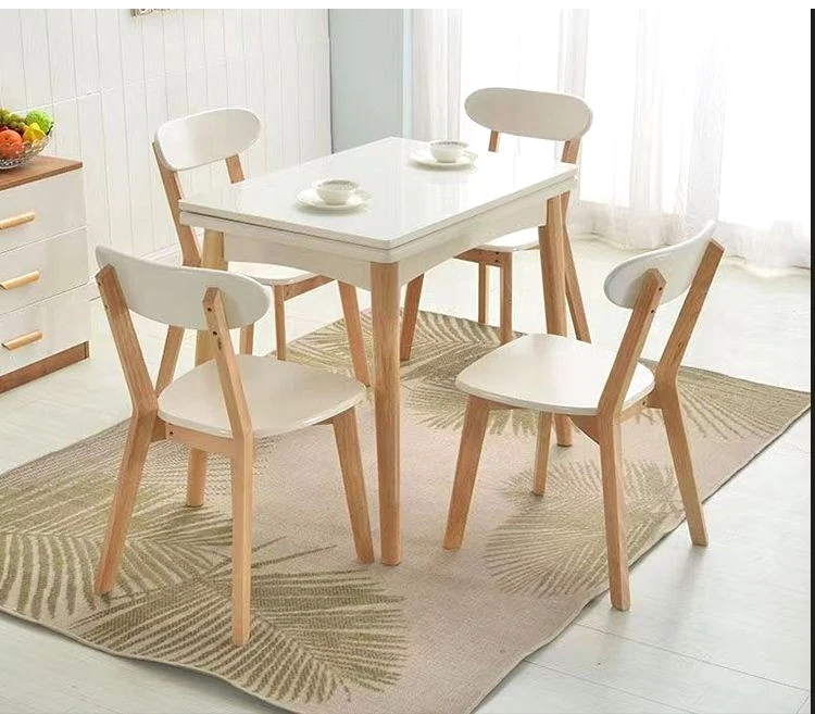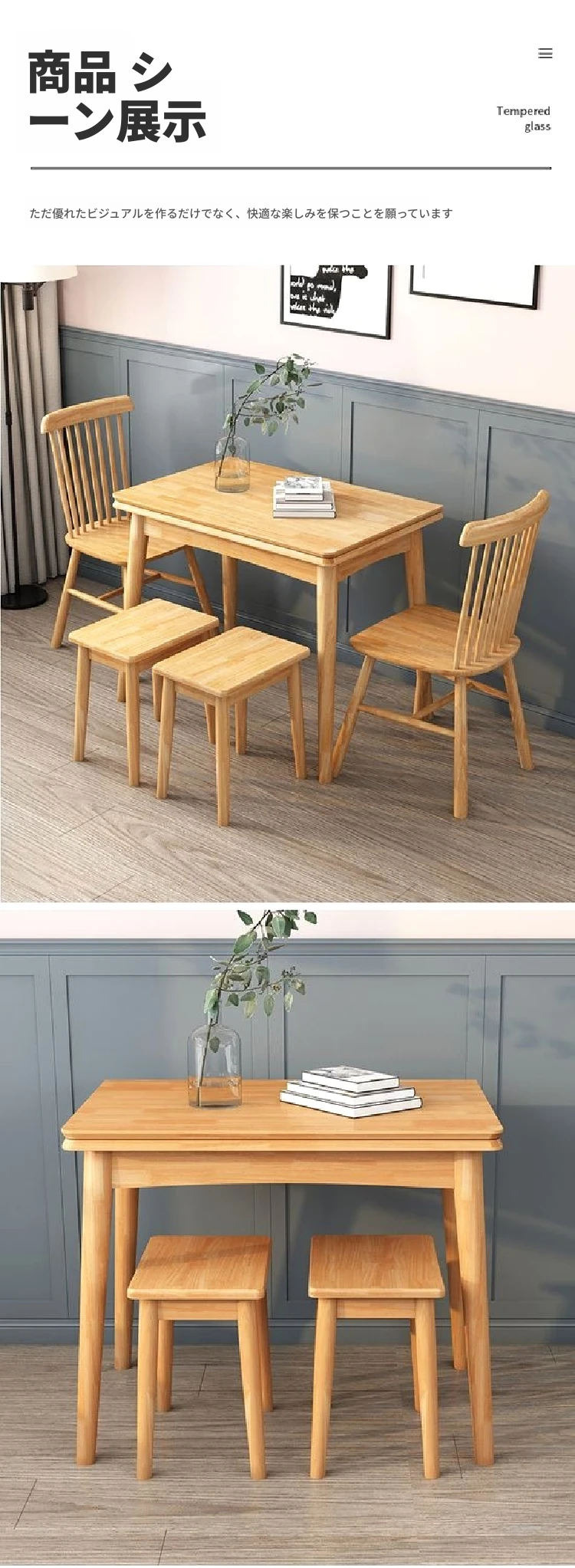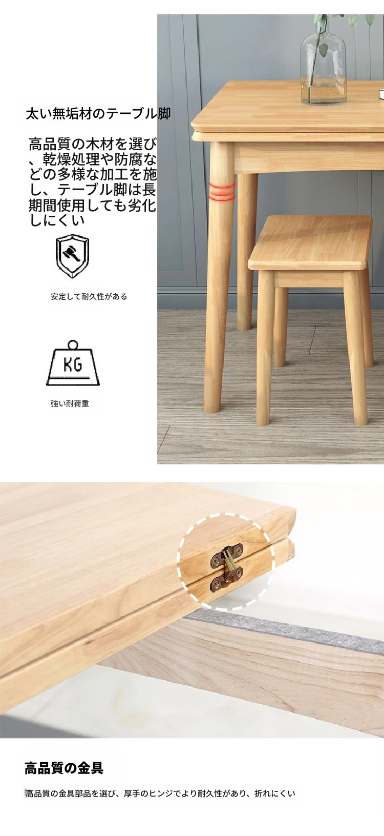 折りたたみ式ダイニングテーブル 小型住宅向け モダンシンプル 伸縮可能な長方形 北欧スタイル 天然木製 ダイニングチェアセット コンパクトで機能的なテーブル