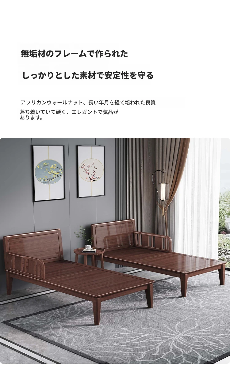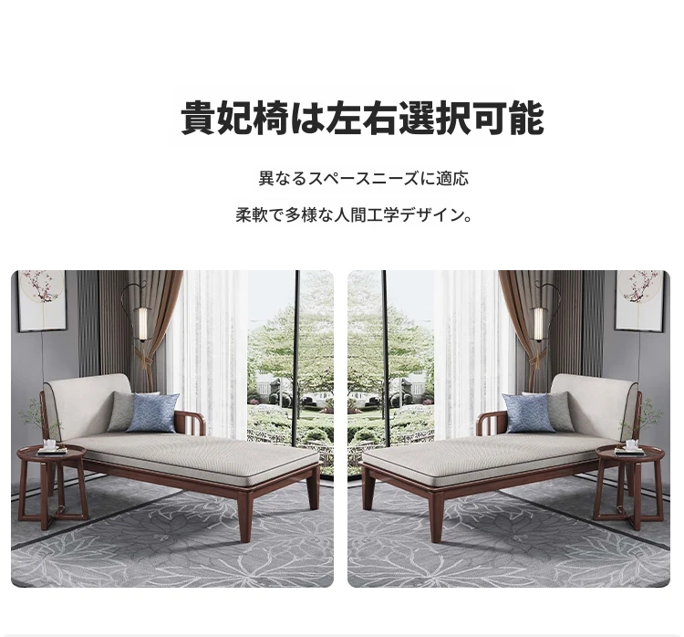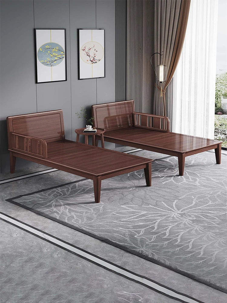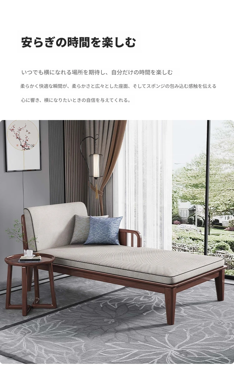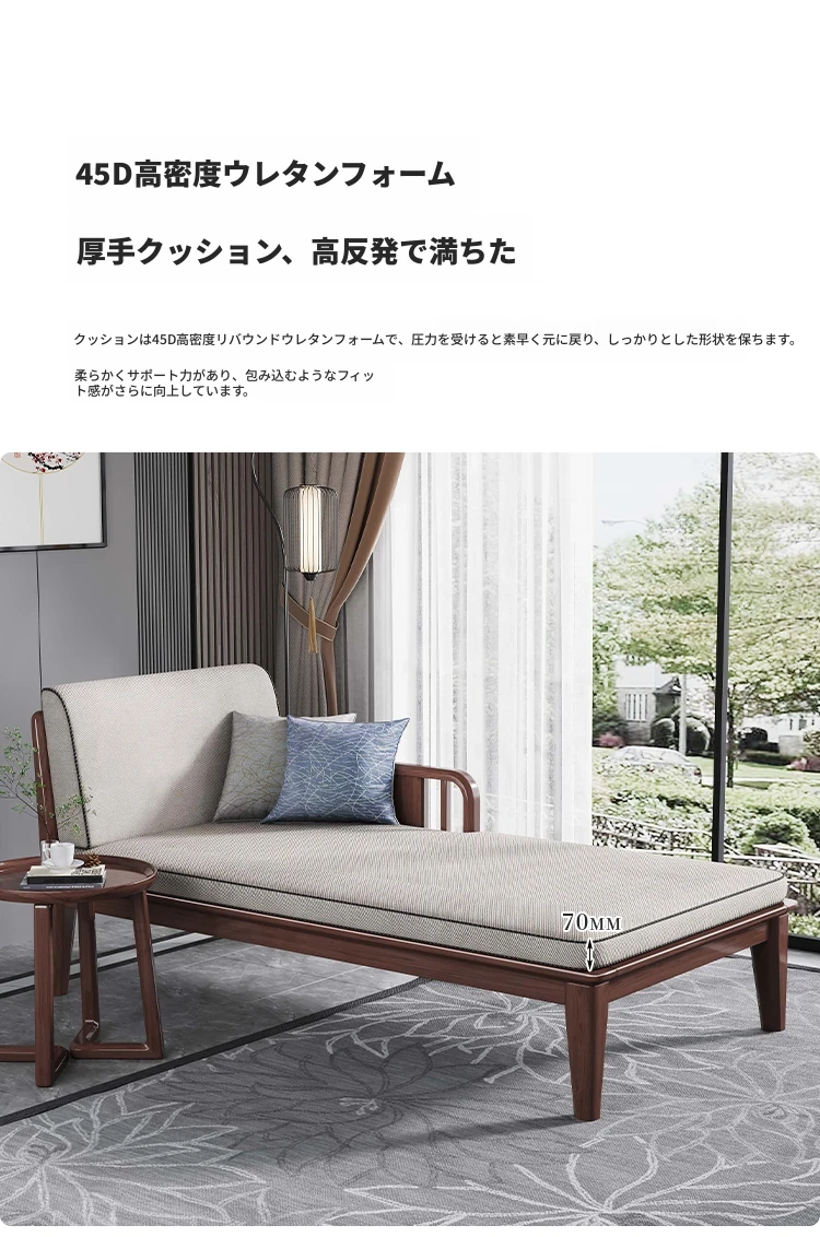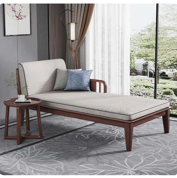 新中式デザインのウォールナット無垢材製の貴妃椅子。リビングやバルコニーにぴったりの一人用ソファ。快適なリラックスタイムを提供する美しいデザインの寝椅子です。あなたの空間を格上げするアイテム!