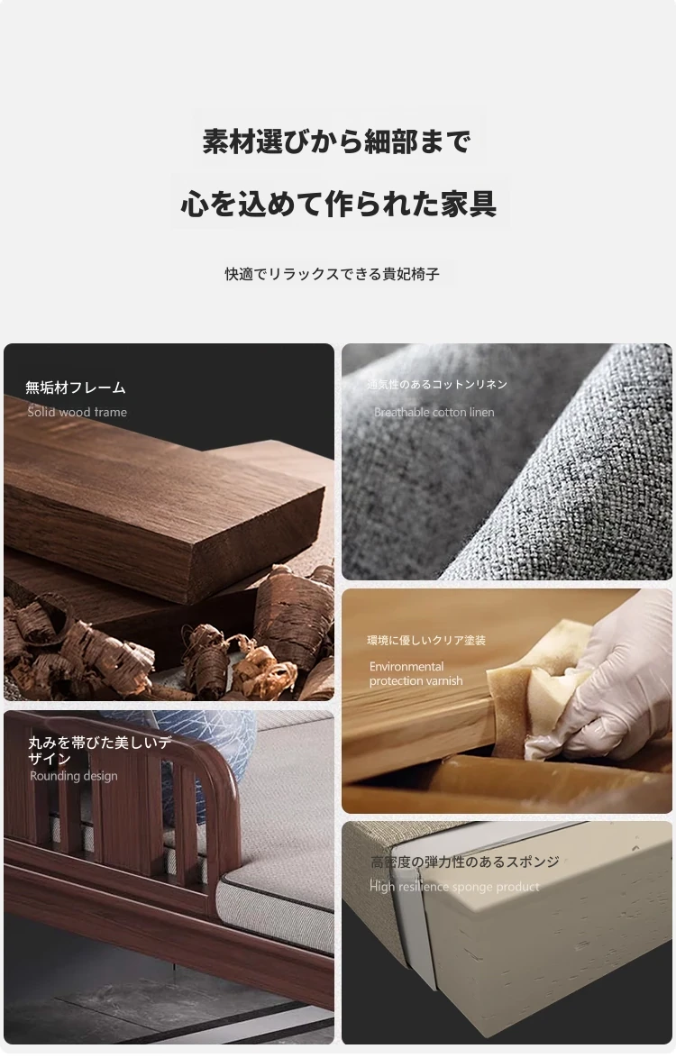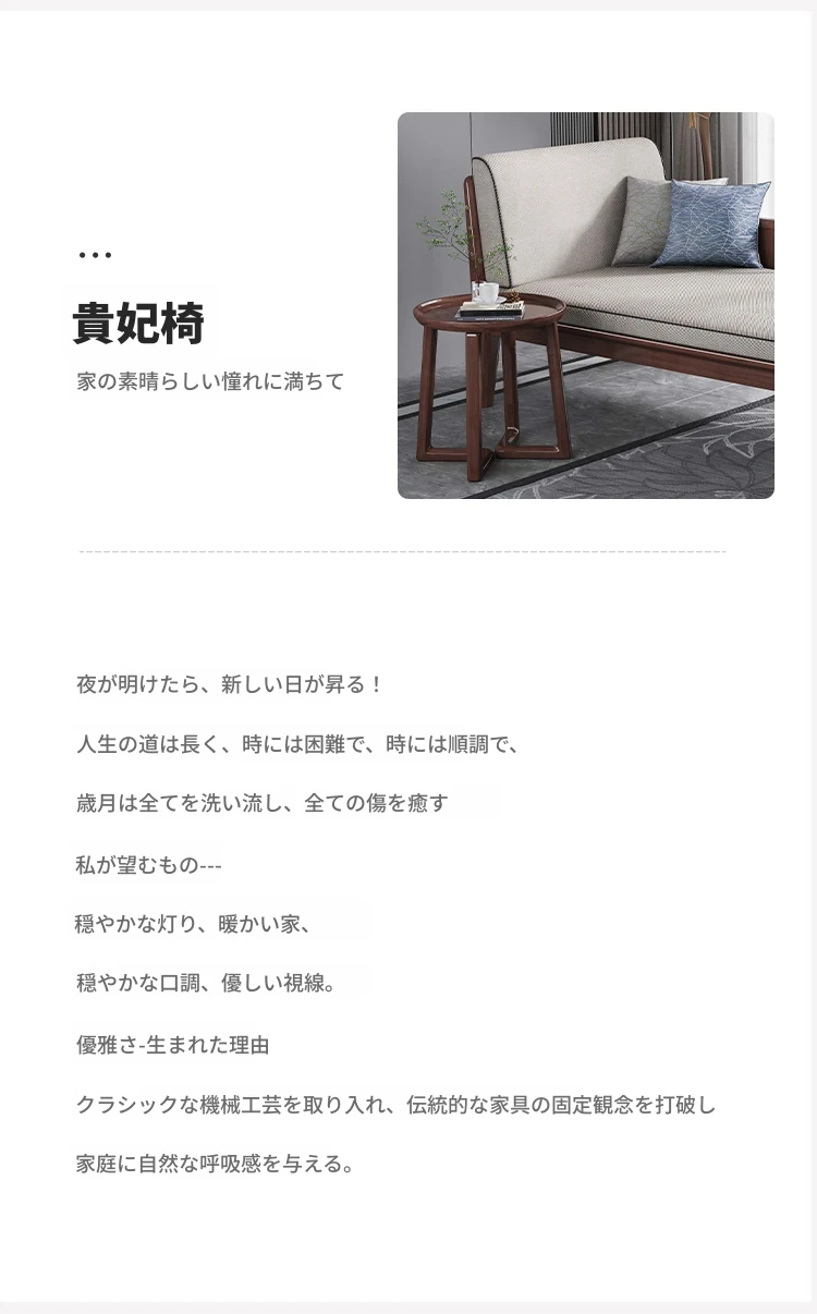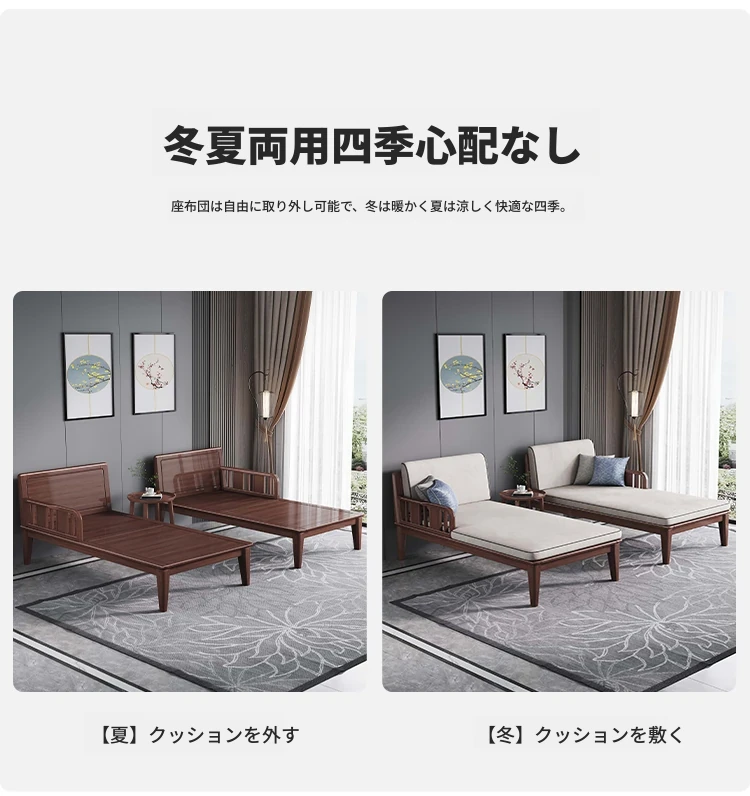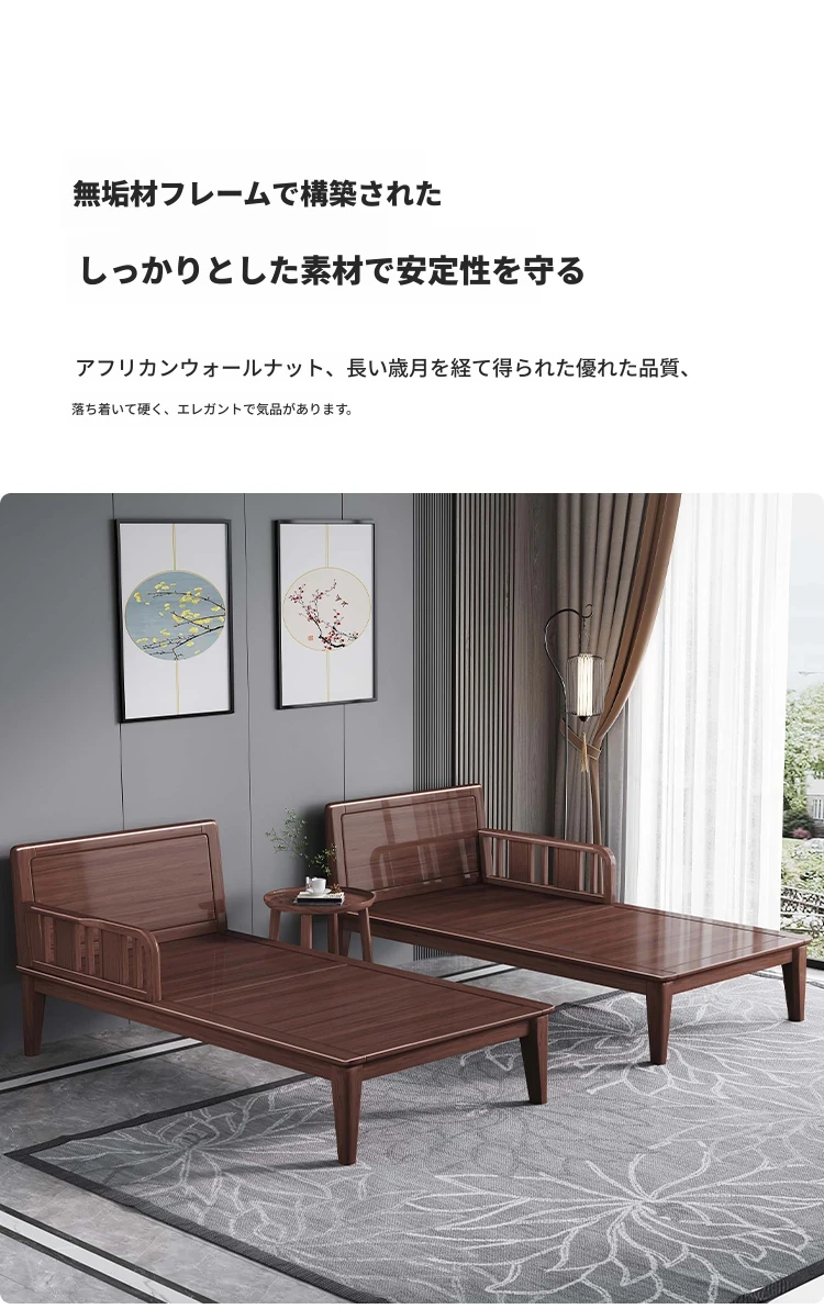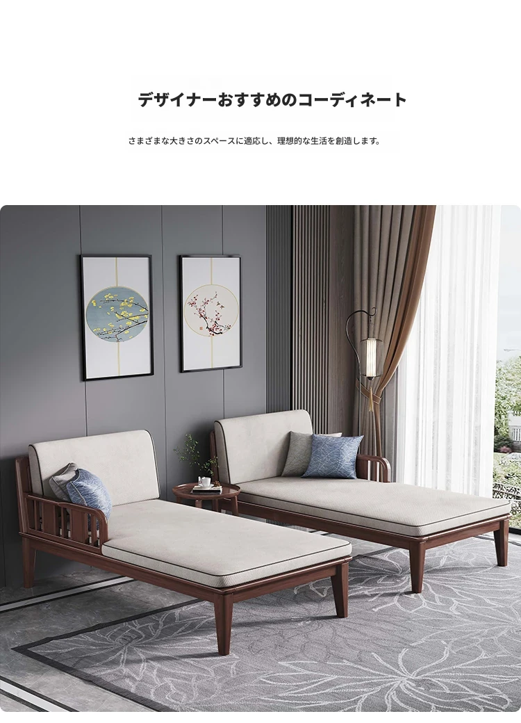 新中式デザインのウォールナット無垢材製の貴妃椅子。リビングやバルコニーにぴったりの一人用ソファ。快適なリラックスタイムを提供する美しいデザインの寝椅子です。あなたの空間を格上げするアイテム!