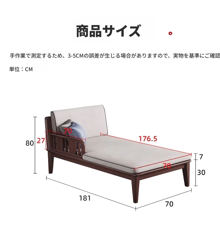貴妃椅(スポンジ座包)アームレストは左右非対称