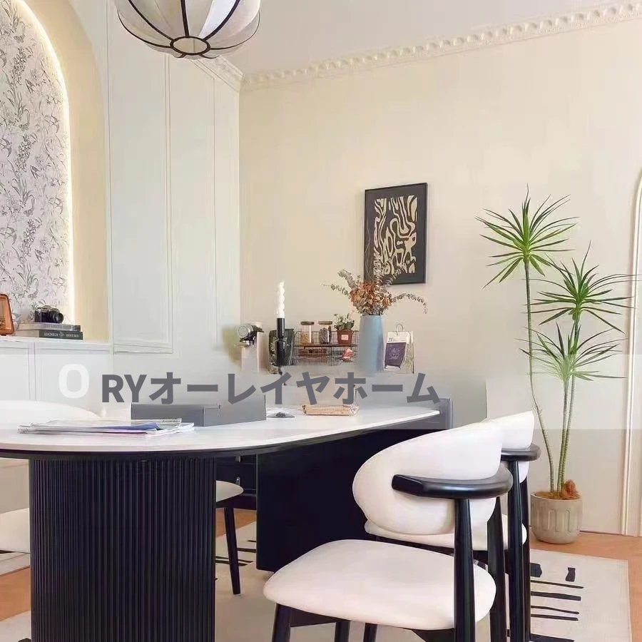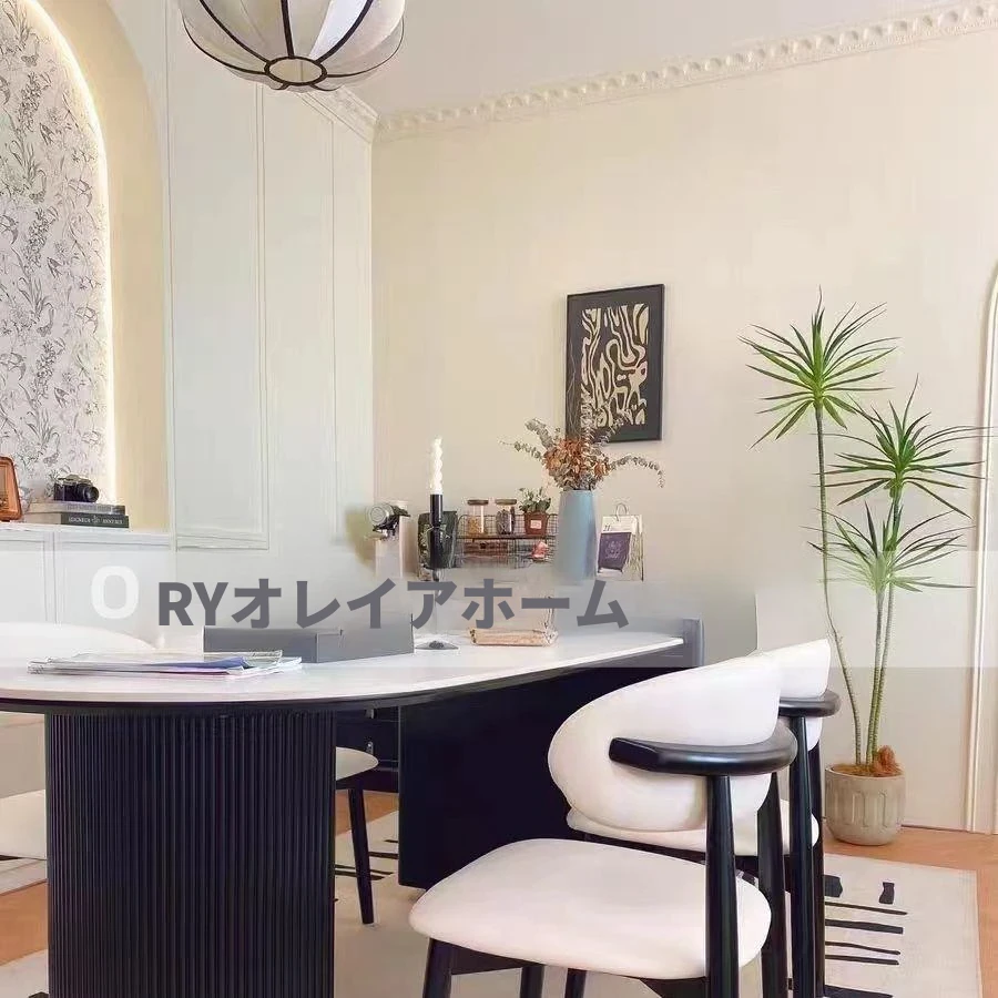 北欧スタイルのアイランドテーブルと岩板のダイニングセット!モダンでシンプルなデザイン、半円形でスペースを有効活用。小さなお部屋にも最適な軽やかなラグジュアリー感を演出。あなたの食卓を美しく彩ります!