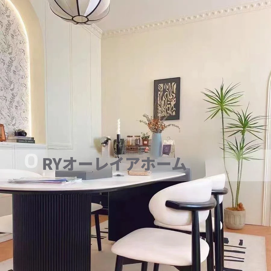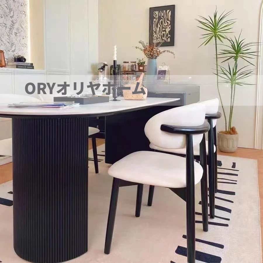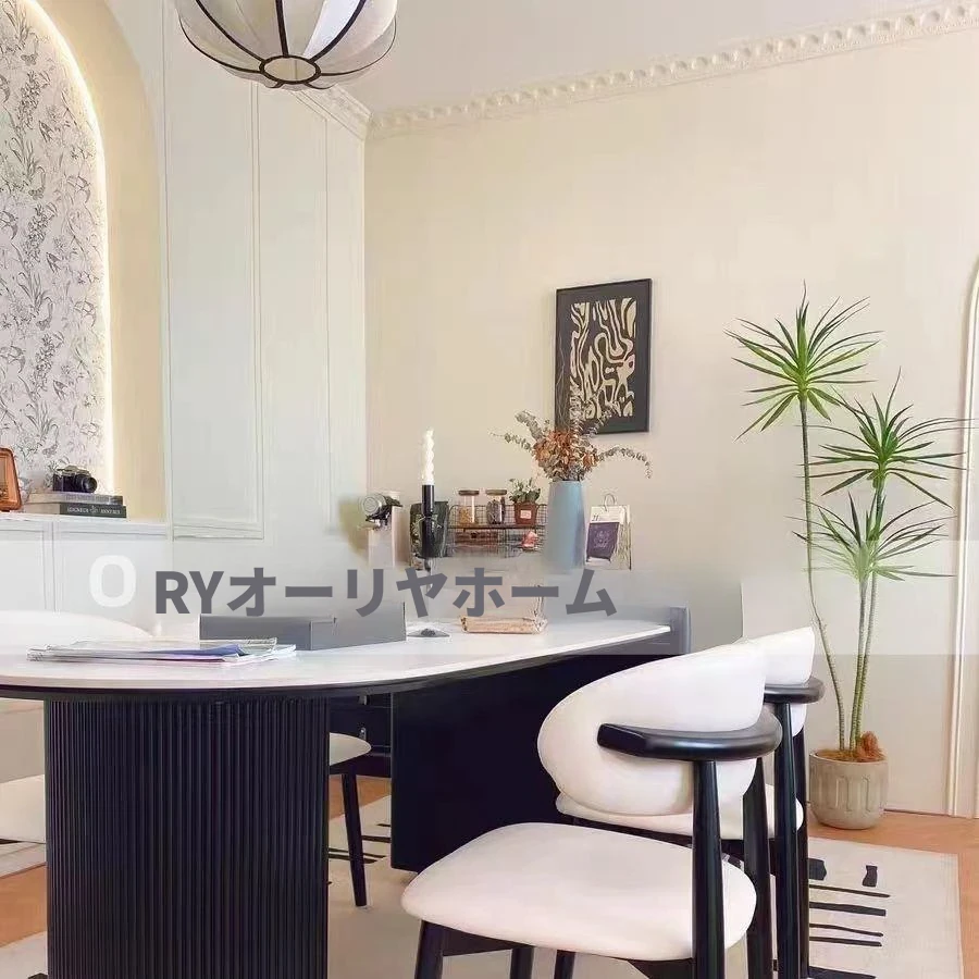 北欧風のハーフ円形アイランドテーブルセット|現代的でシンプルなデザイン、ミニマリスト向けの軽奢スタイル|家族や友人との食事にぴったりなコンパクトなダイニングテーブルとチェアの組み合わせ!