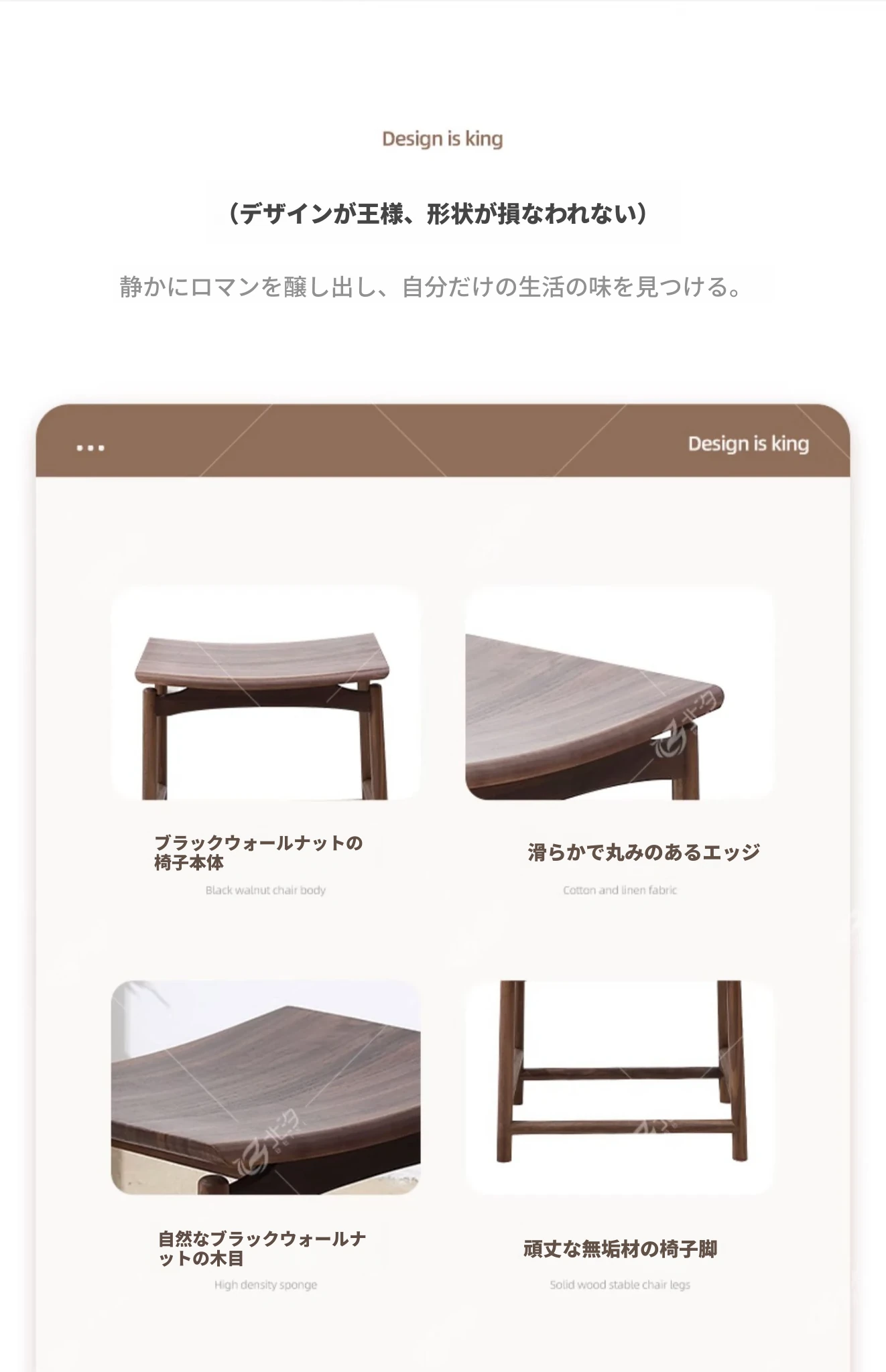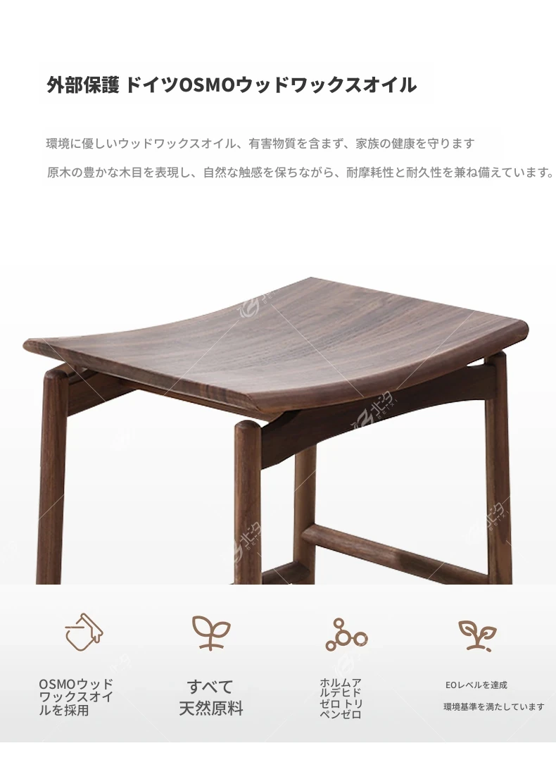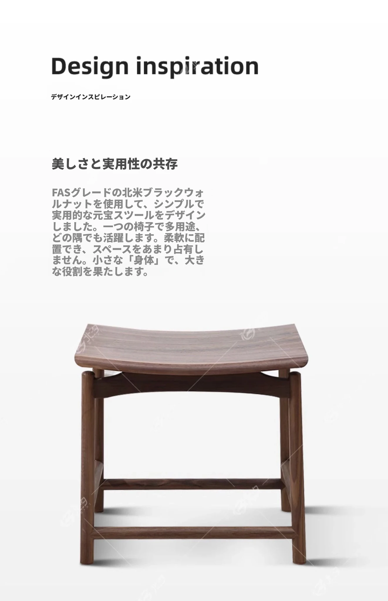 北汐 北米産ブラックウォールナット 無垢材の化粧台ベンチ - シンプルでエレガントなデザイン、家の玄関での靴の脱ぎ履きにも最適!高品質な木材使用、耐久性抜群のマルチユースベンチ。